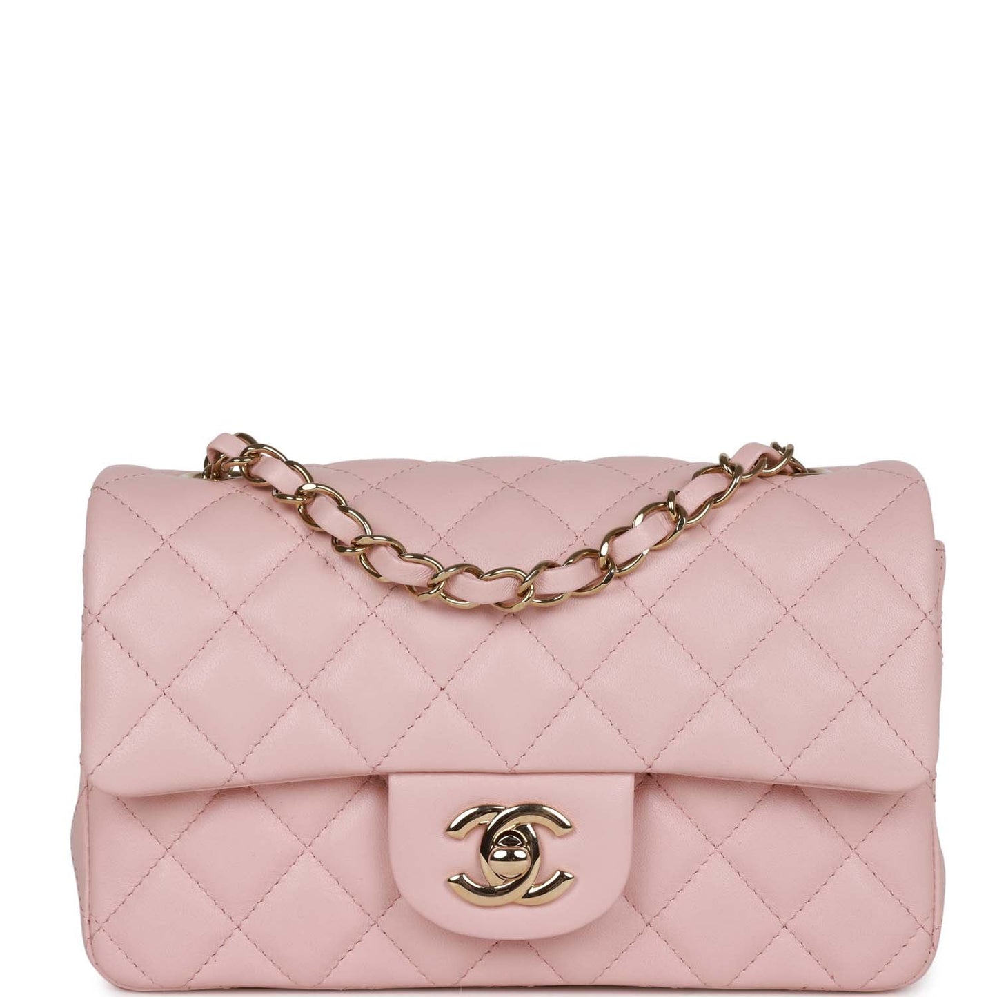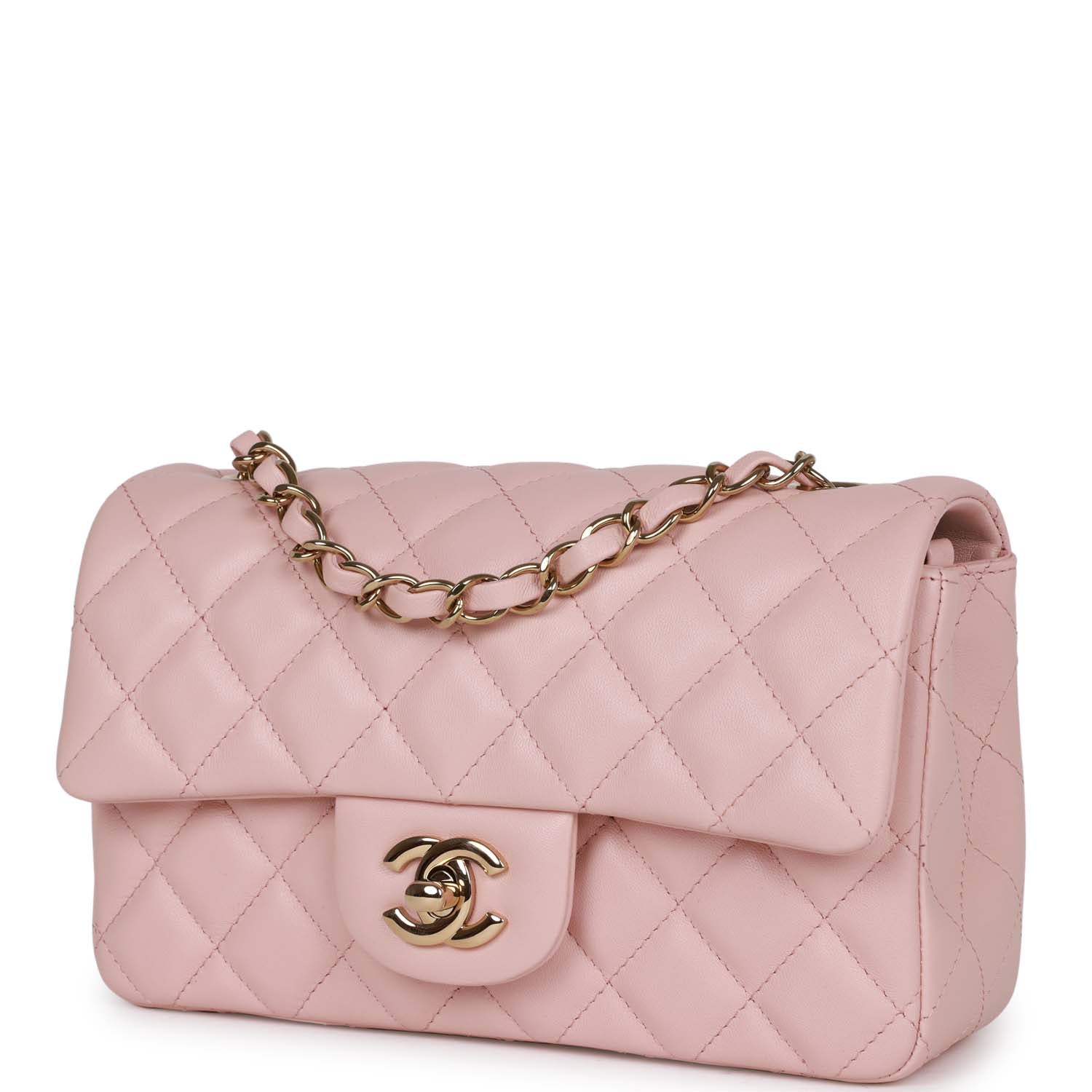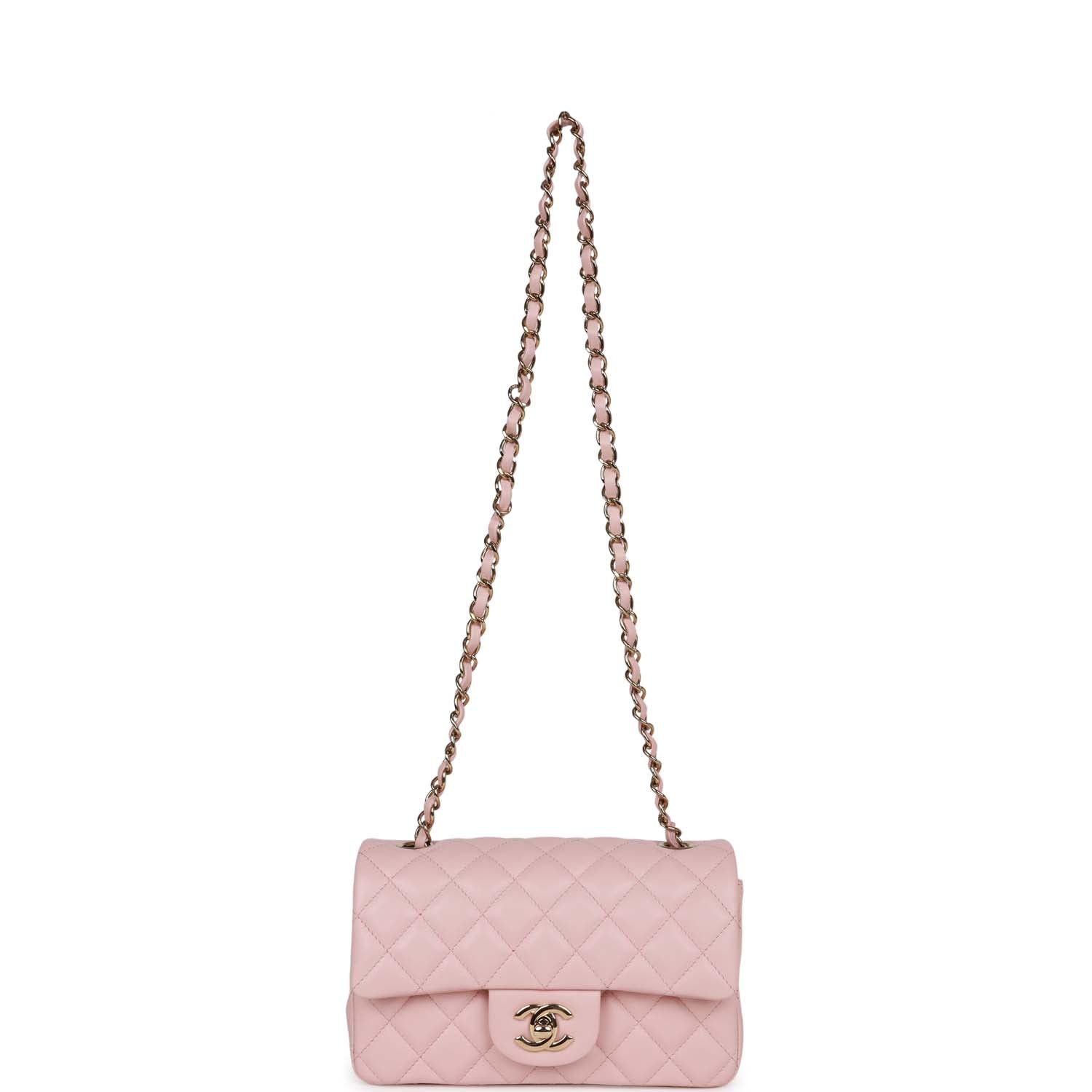 Chanel Mini Rectangular Flap Bag Pink Lambskin Light Gold Hardware