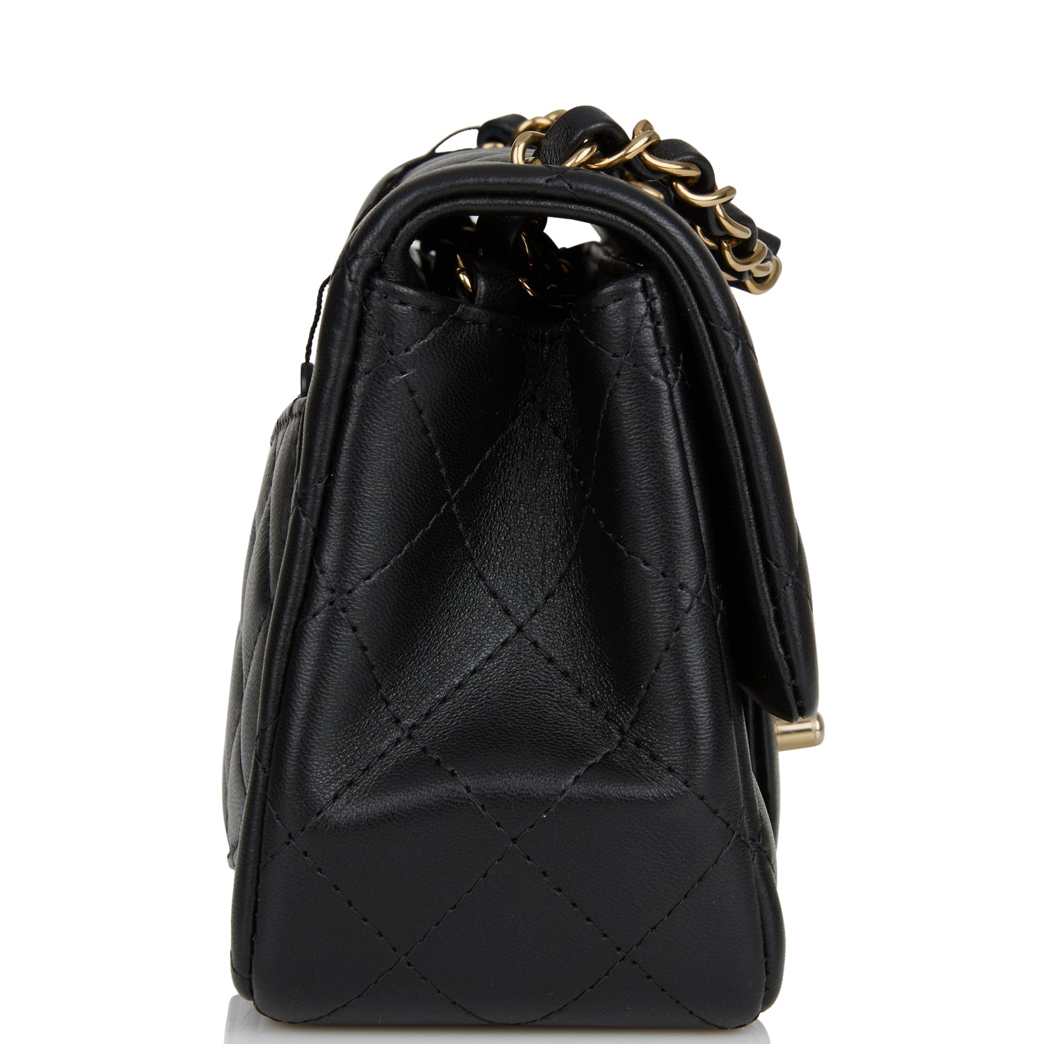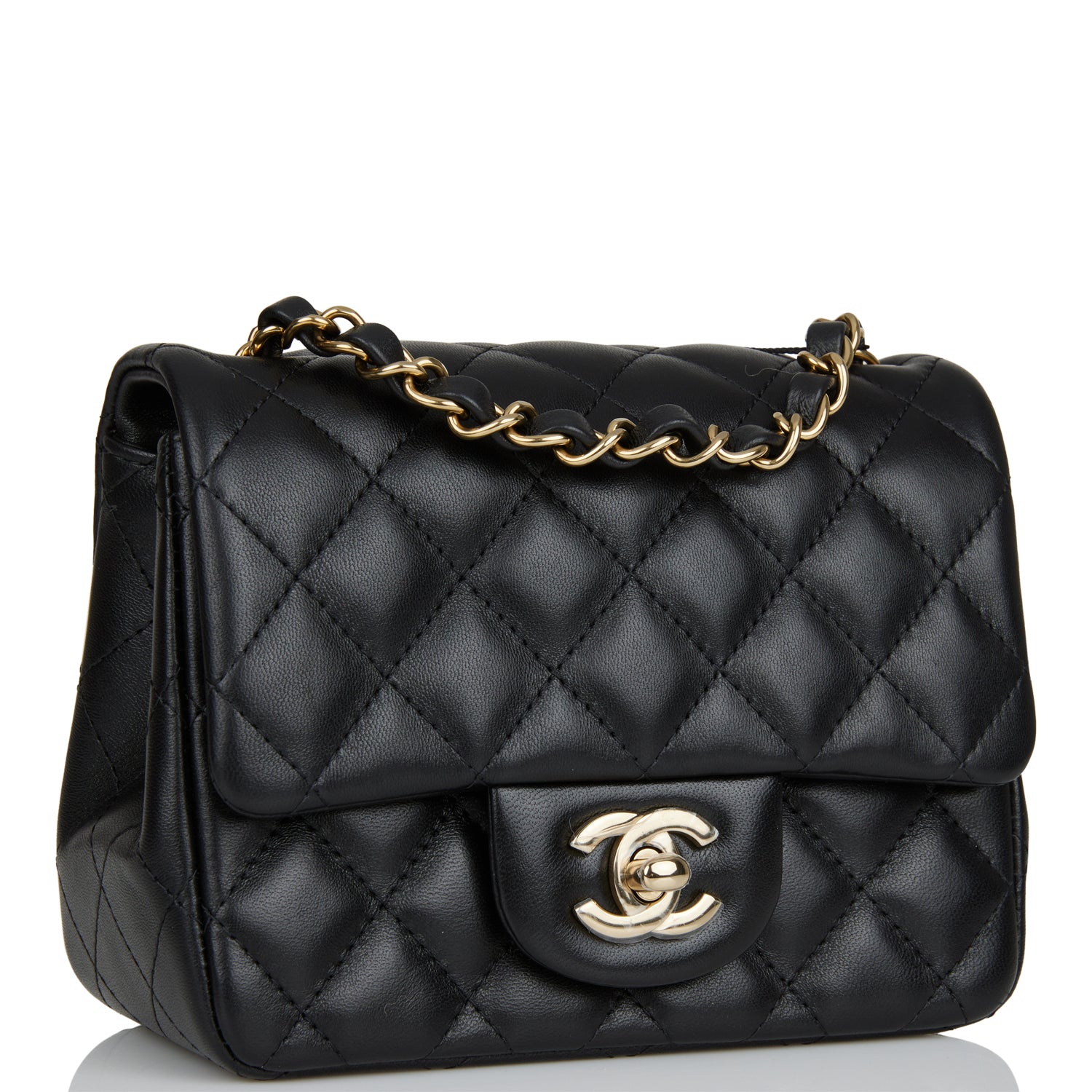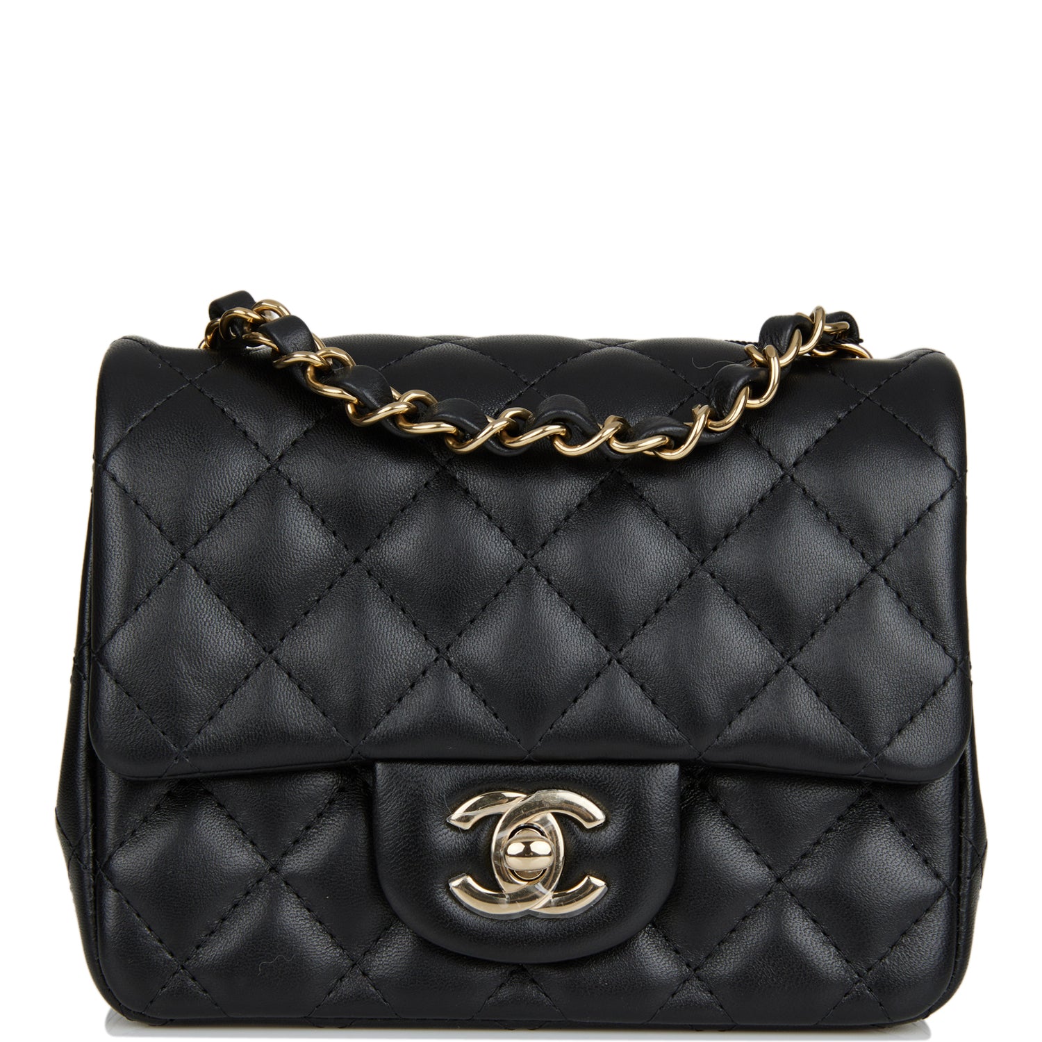 Chanel Mini Square Flap Bag Black Lambskin Light Gold Hardware