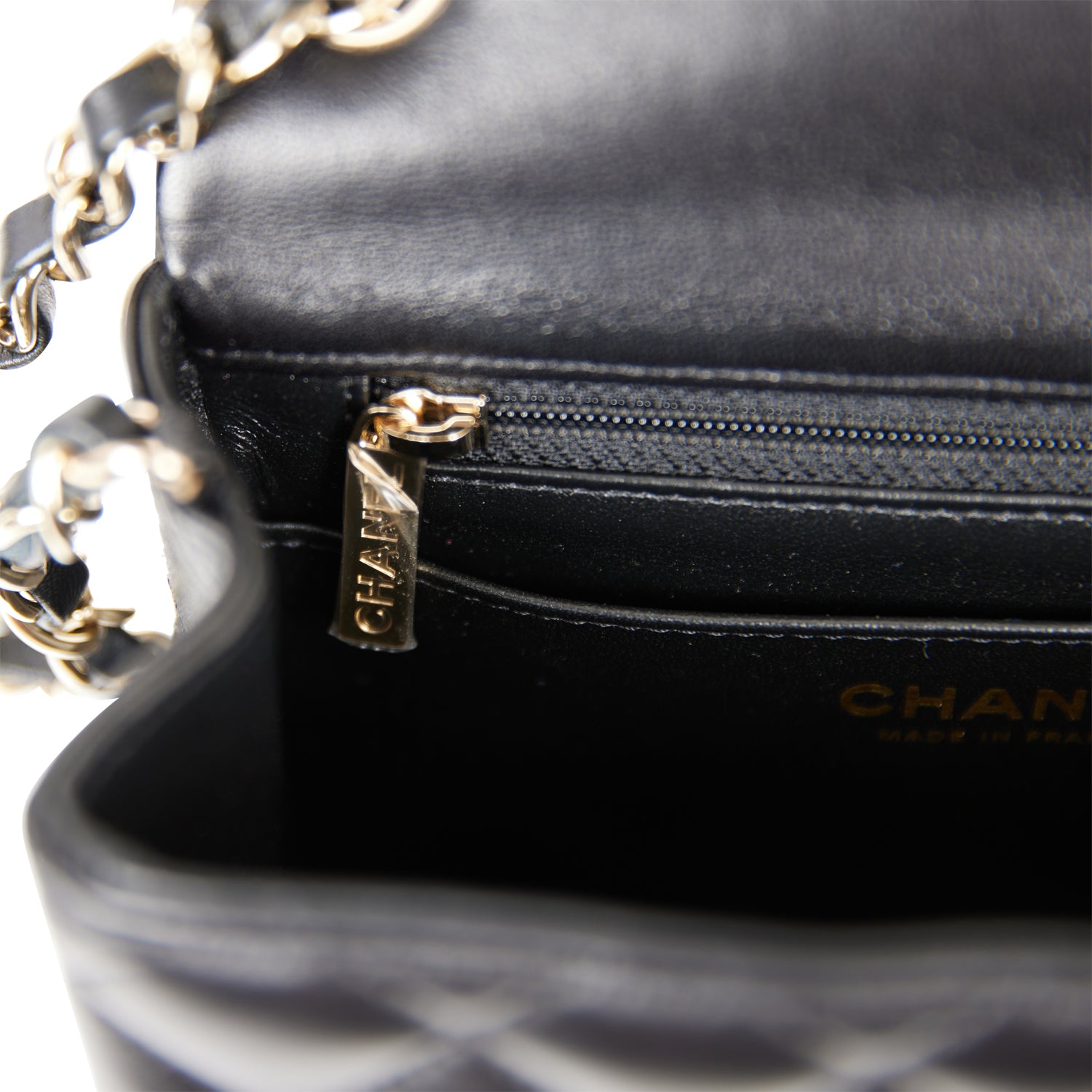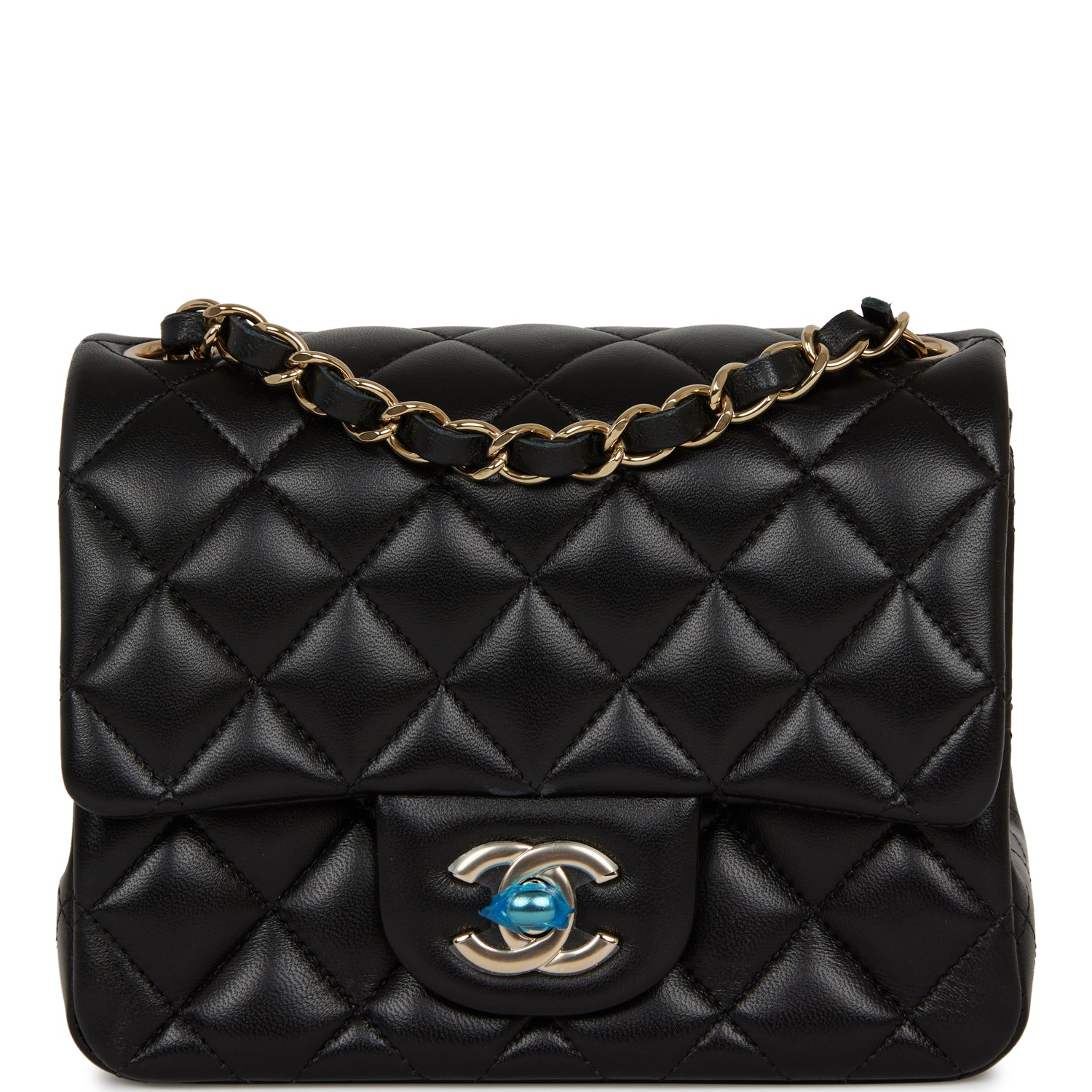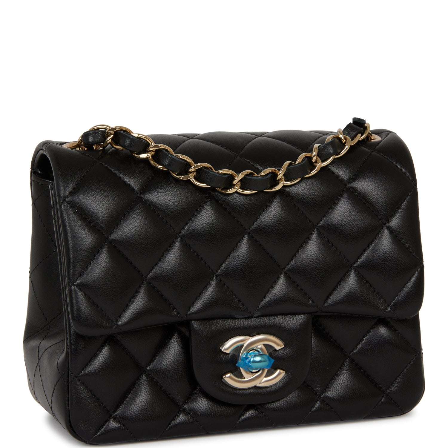 Chanel Mini Square Flap Bag Black Lambskin Light Gold Hardware