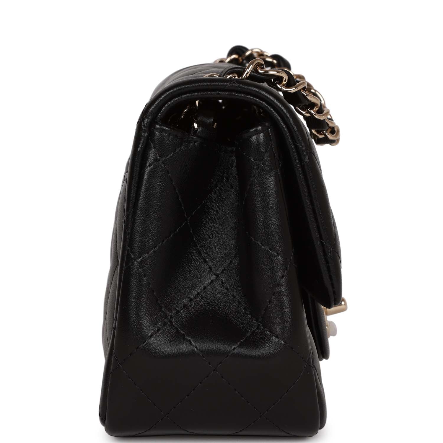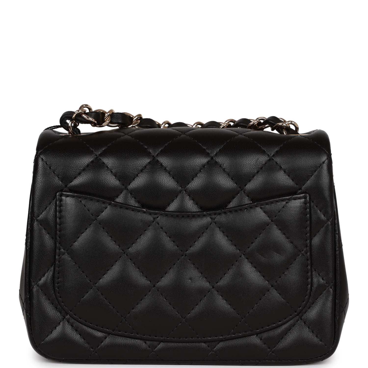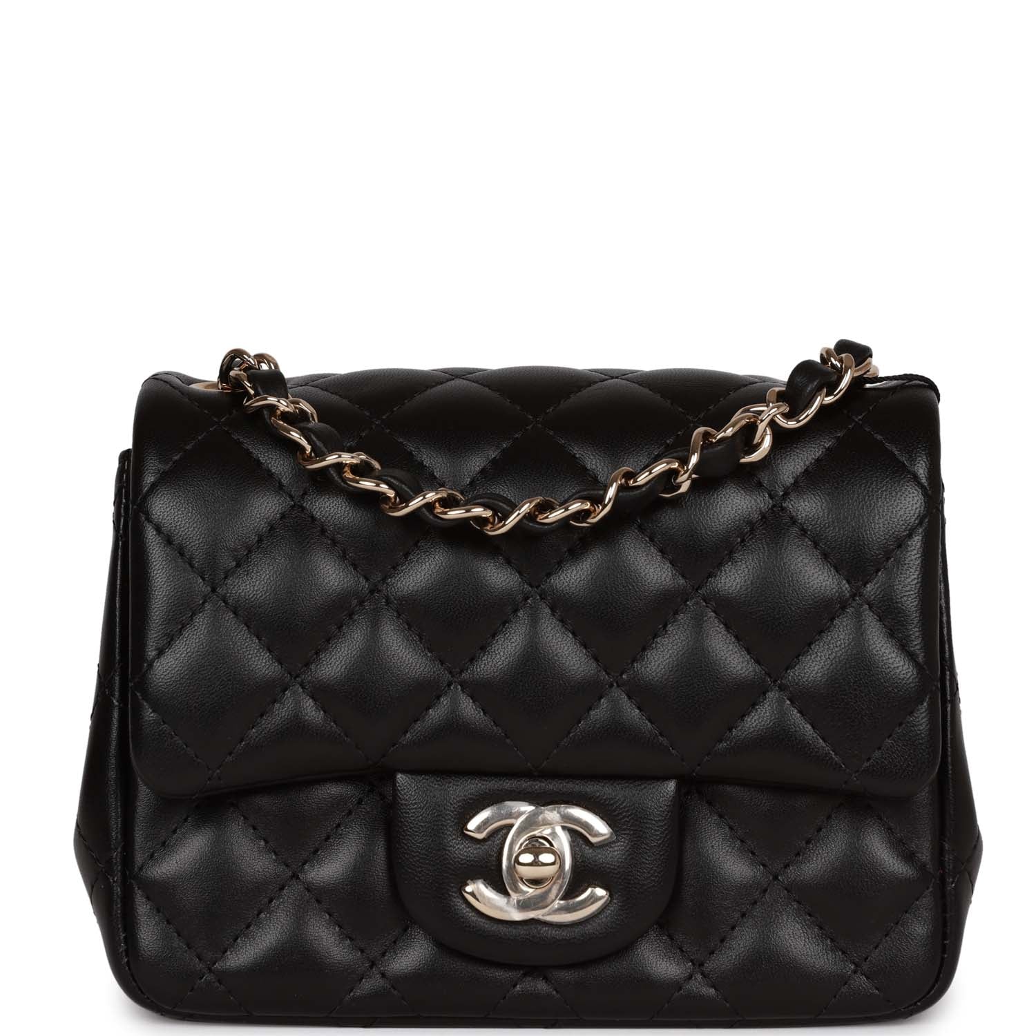 Chanel Mini Square Flap Bag Black Lambskin Light Gold Hardware