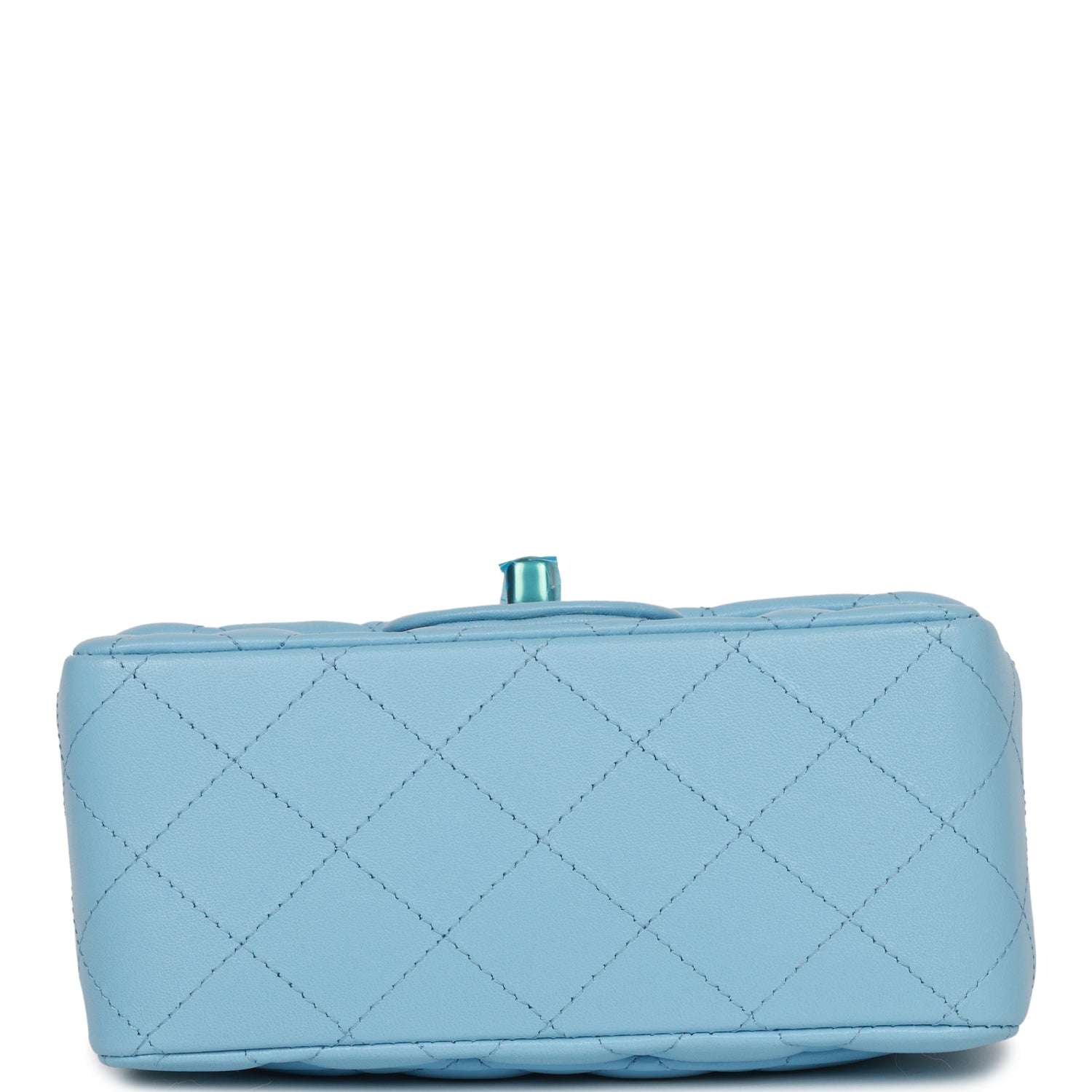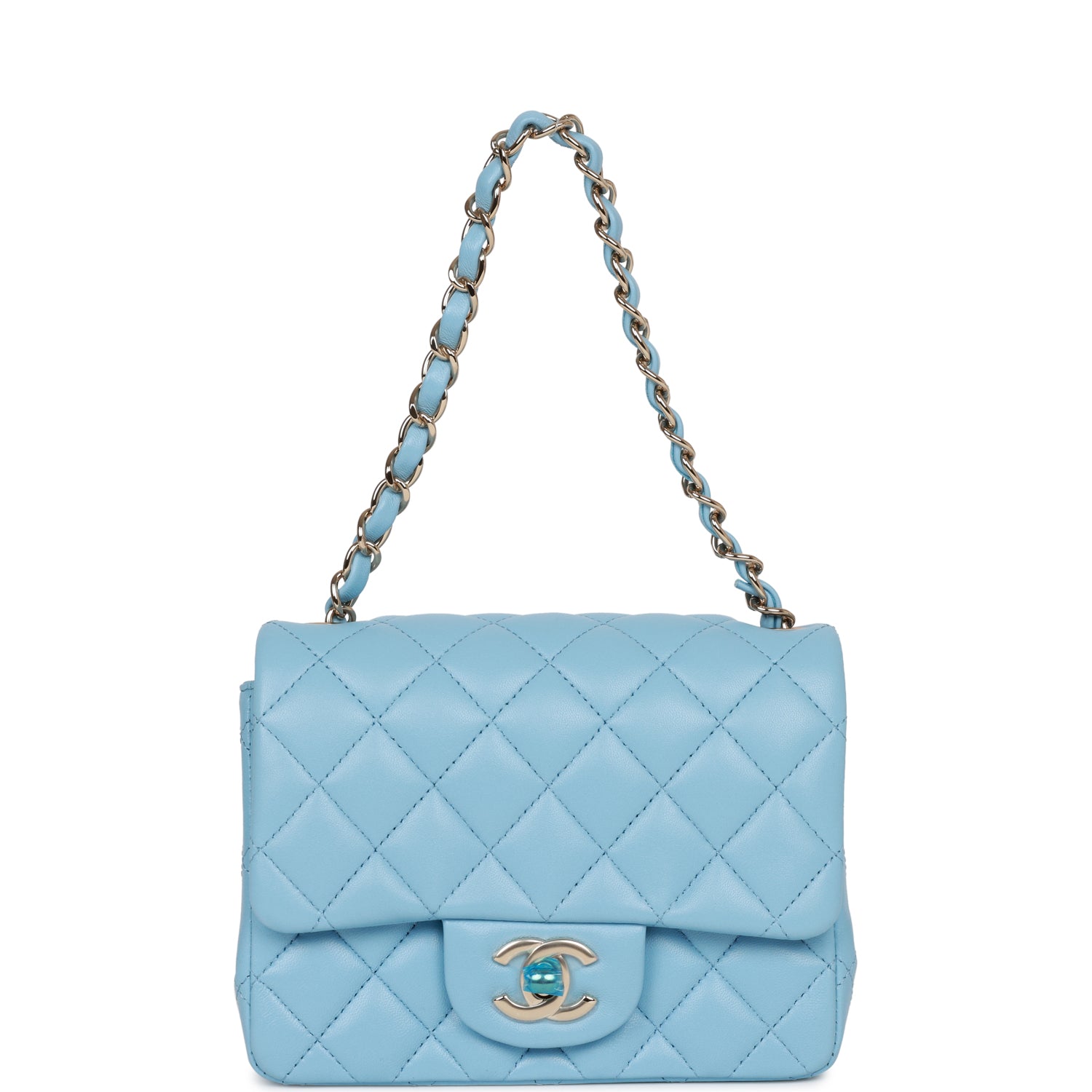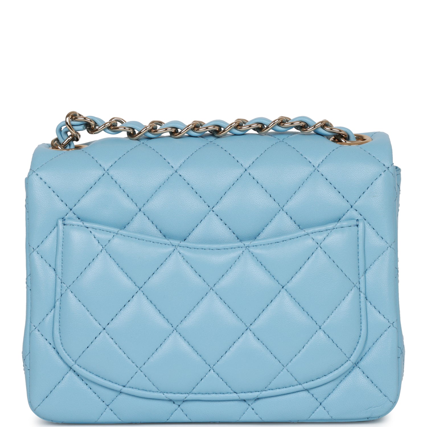Chanel Mini Square Flap Bag Blue Lambskin Light Gold Hardware