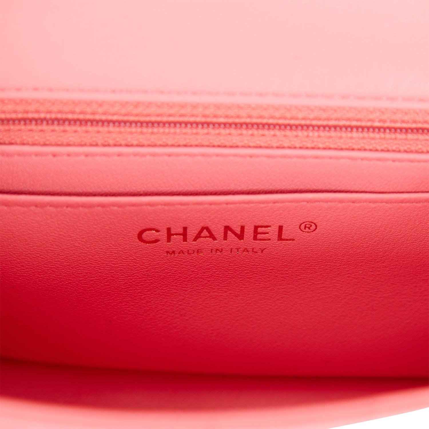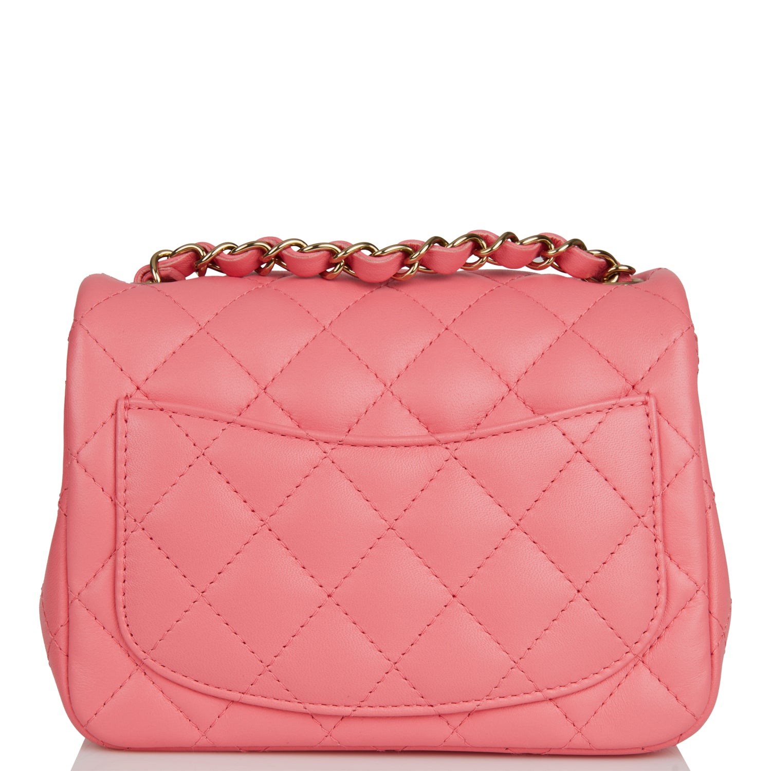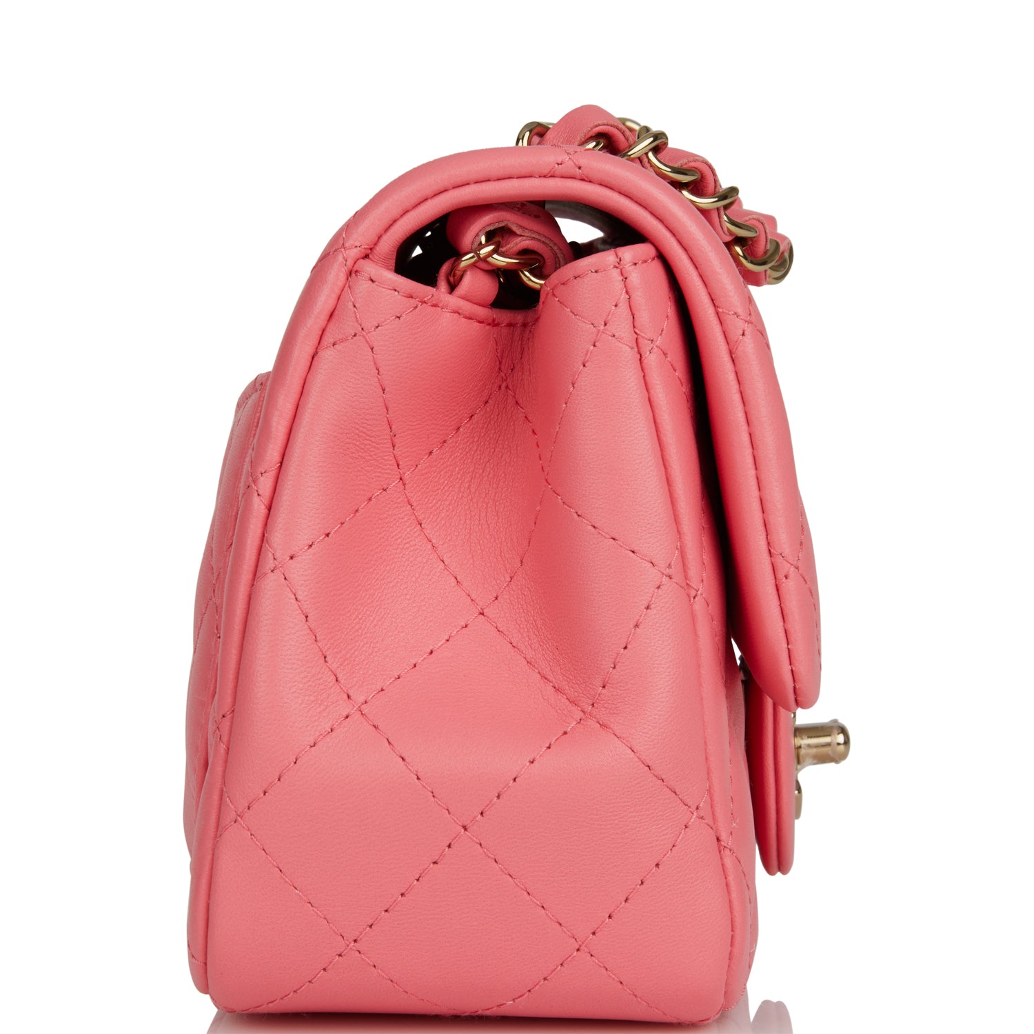 Chanel Mini Square Flap Bag Pink Lambskin Light Gold Hardware