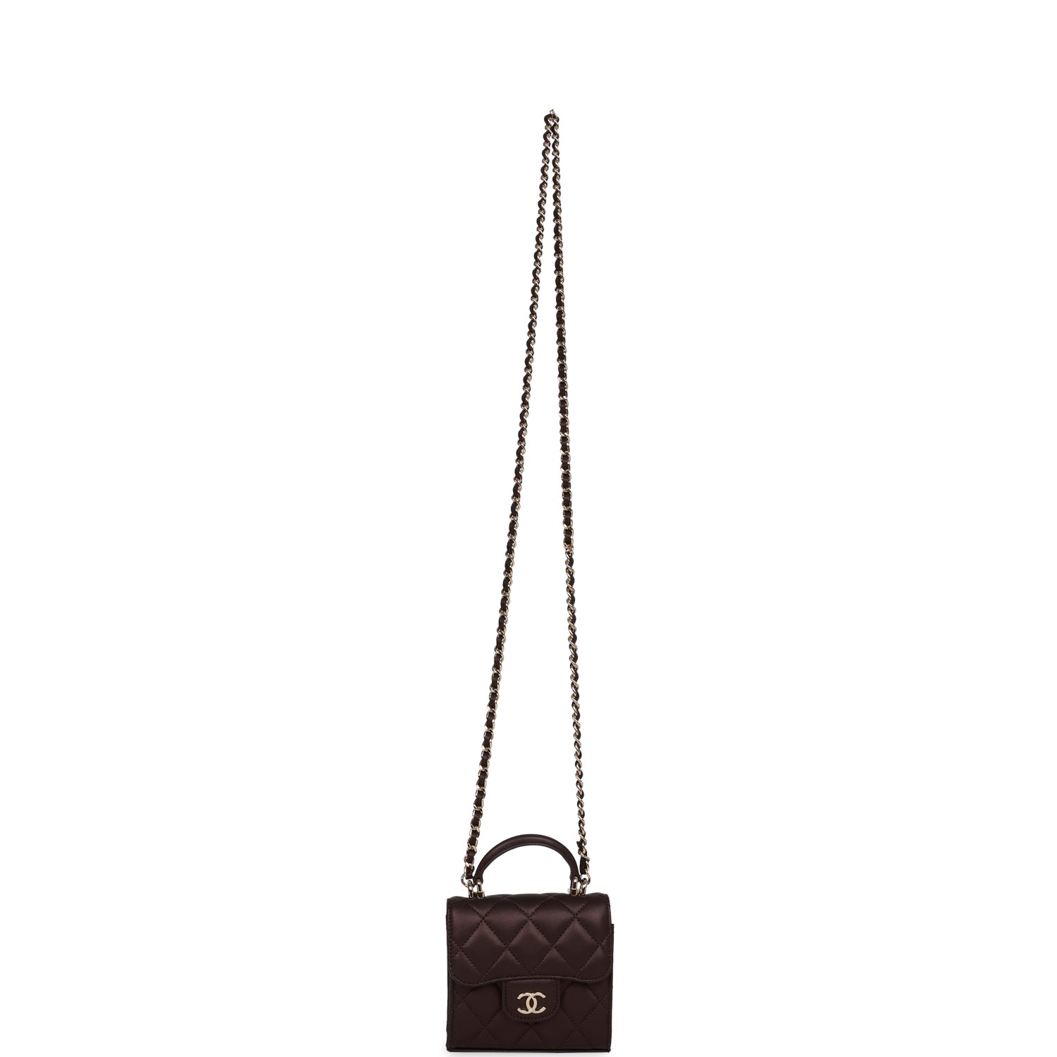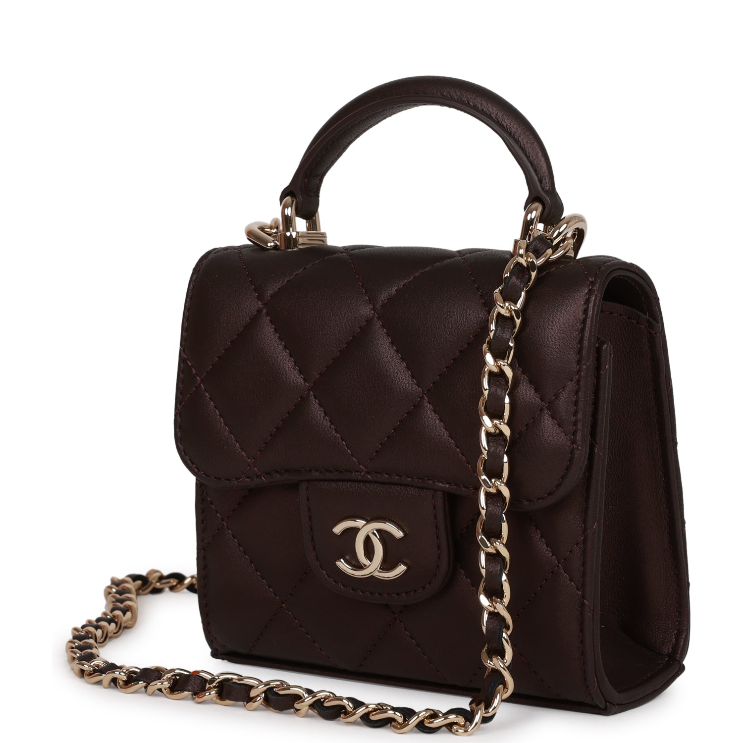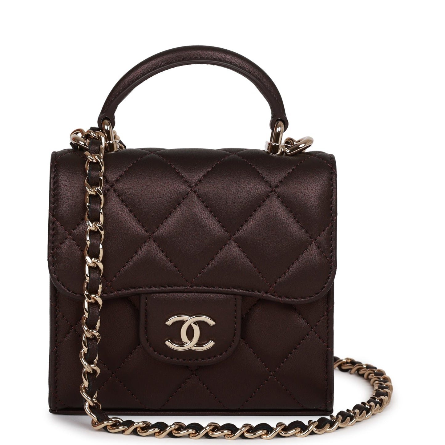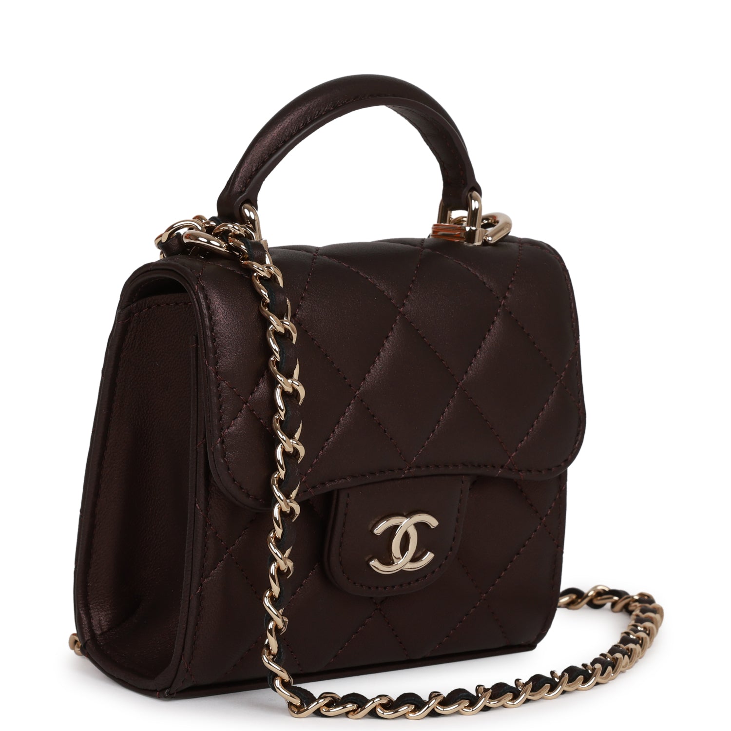 Chanel Mini Top Handle Clutch With Chain Burgundy Iridescent Lambskin Light Gold Hardware