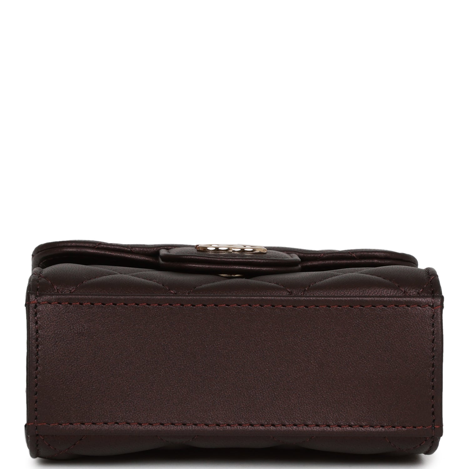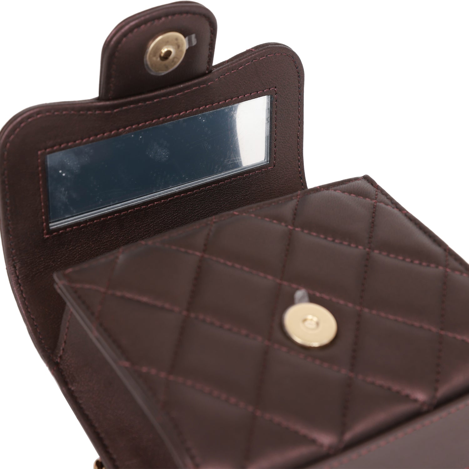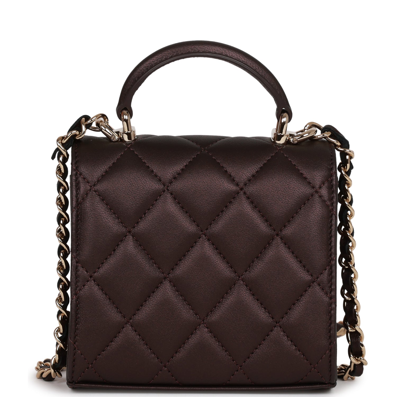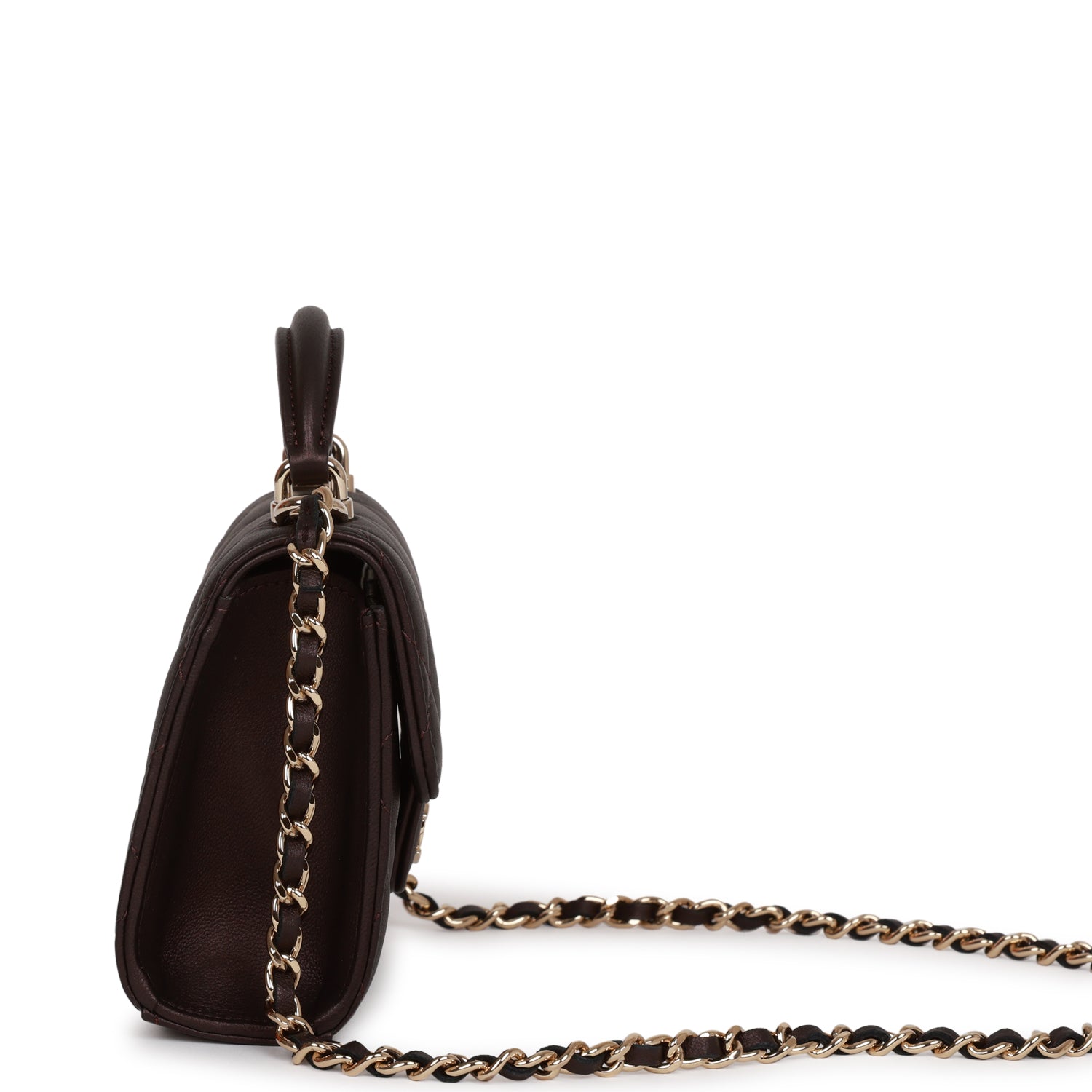 Chanel Mini Top Handle Clutch With Chain Burgundy Iridescent Lambskin Light Gold Hardware