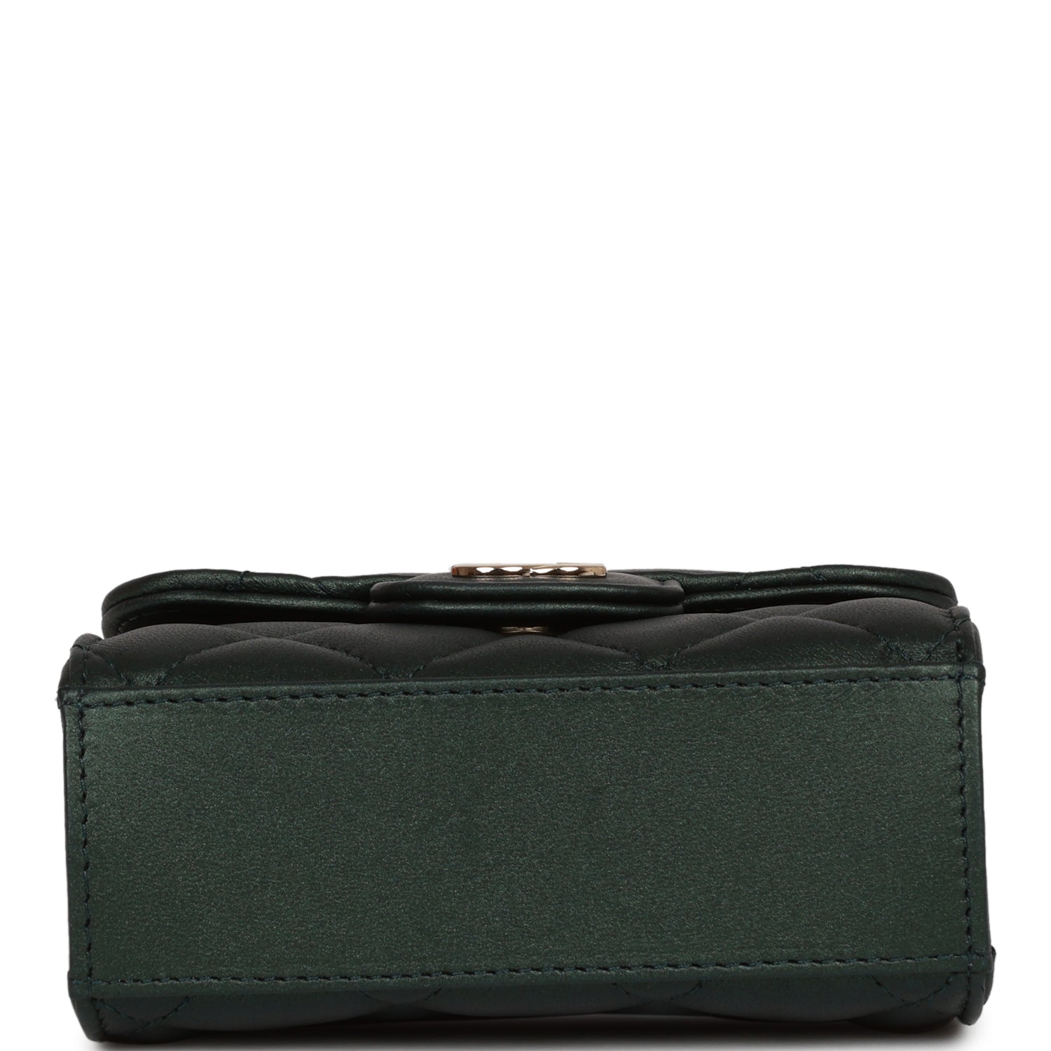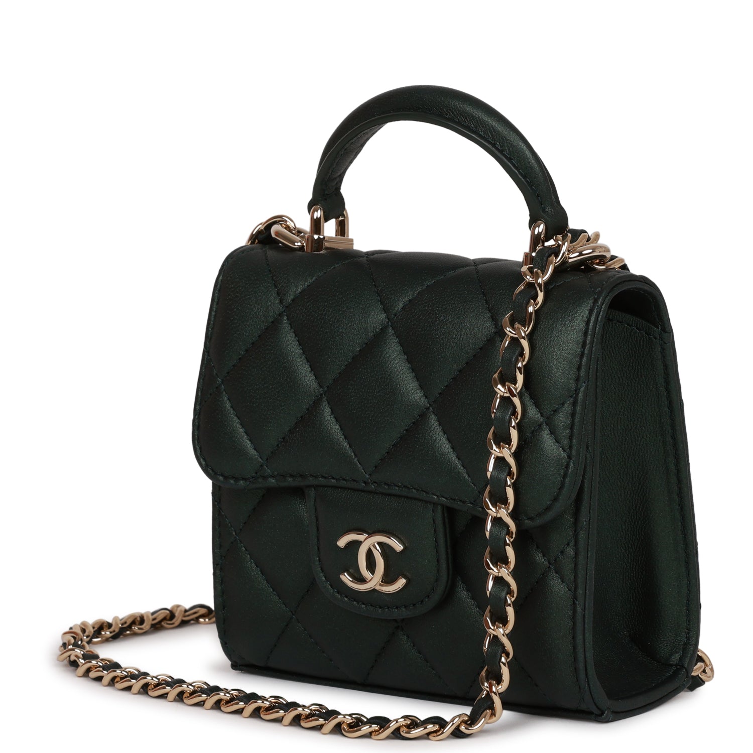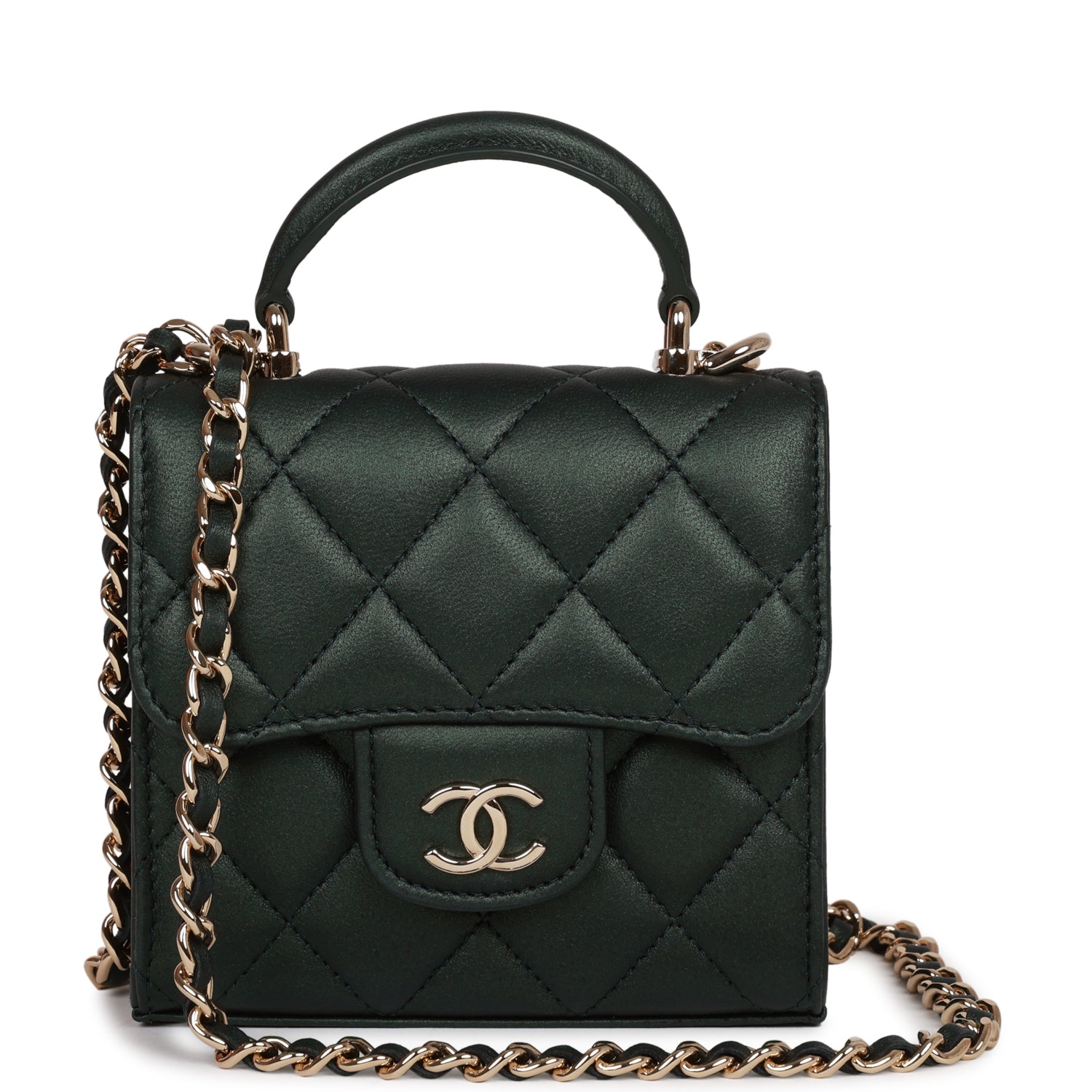 Chanel Mini Top Handle Clutch With Chain Dark Green Iridescent Lambskin Light Gold Hardware