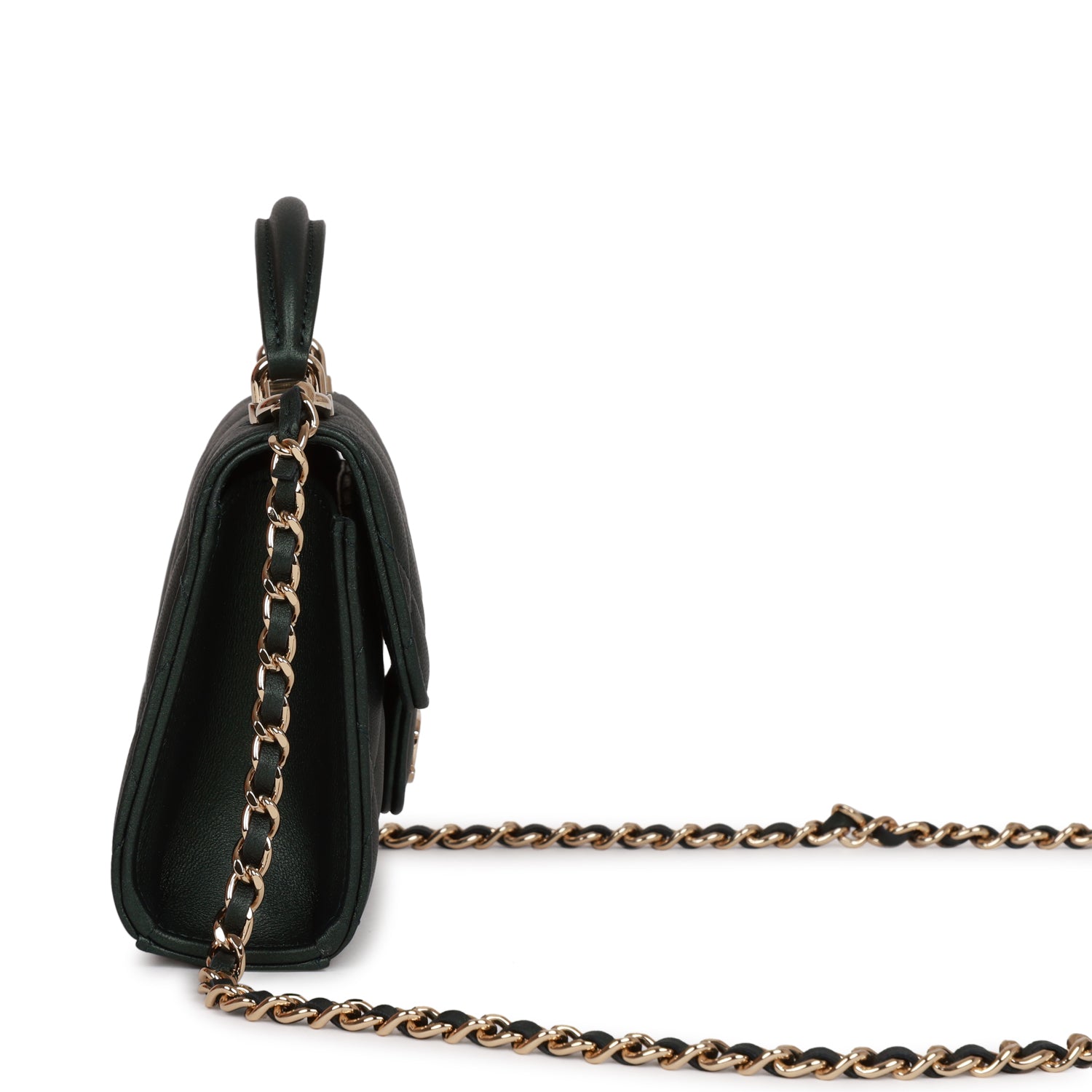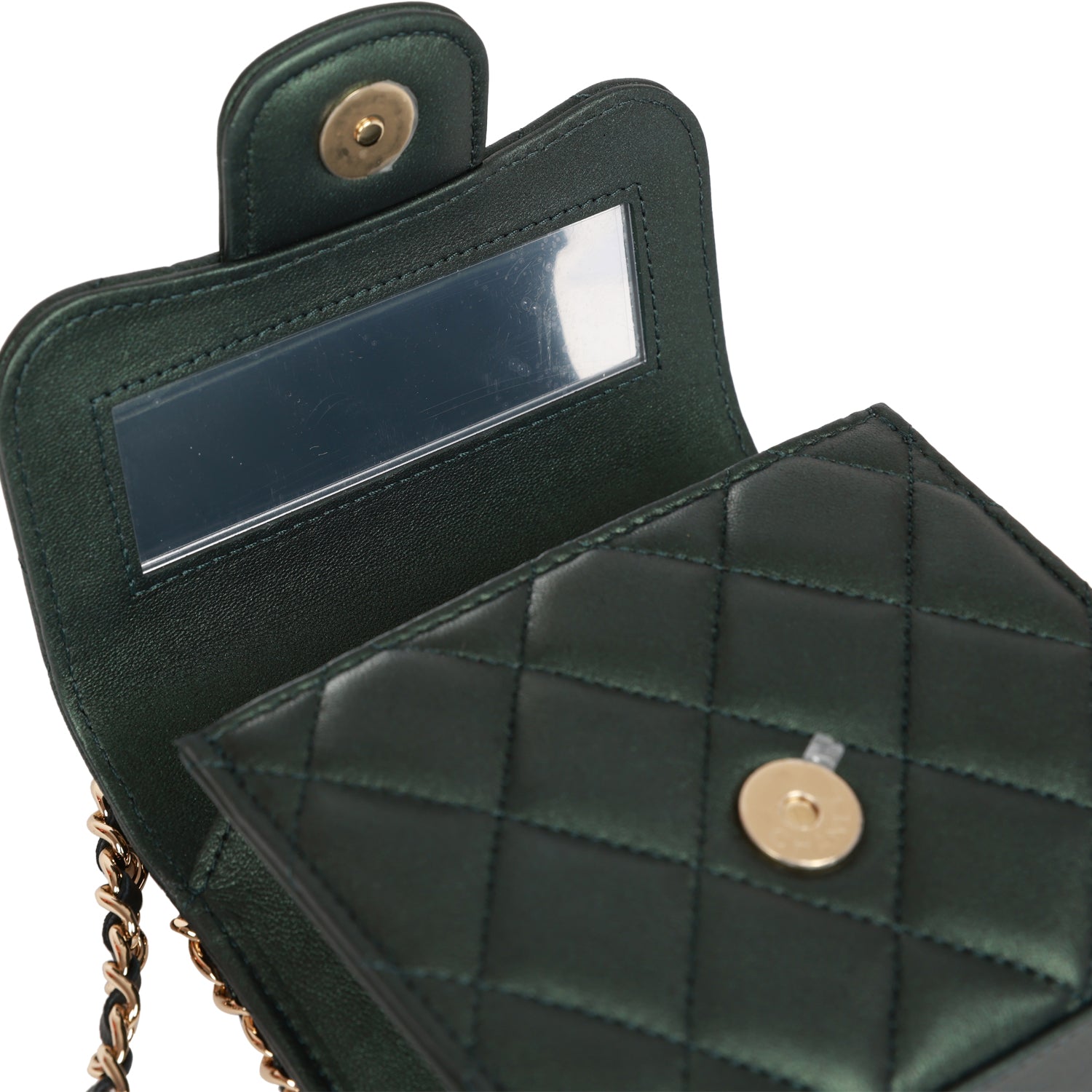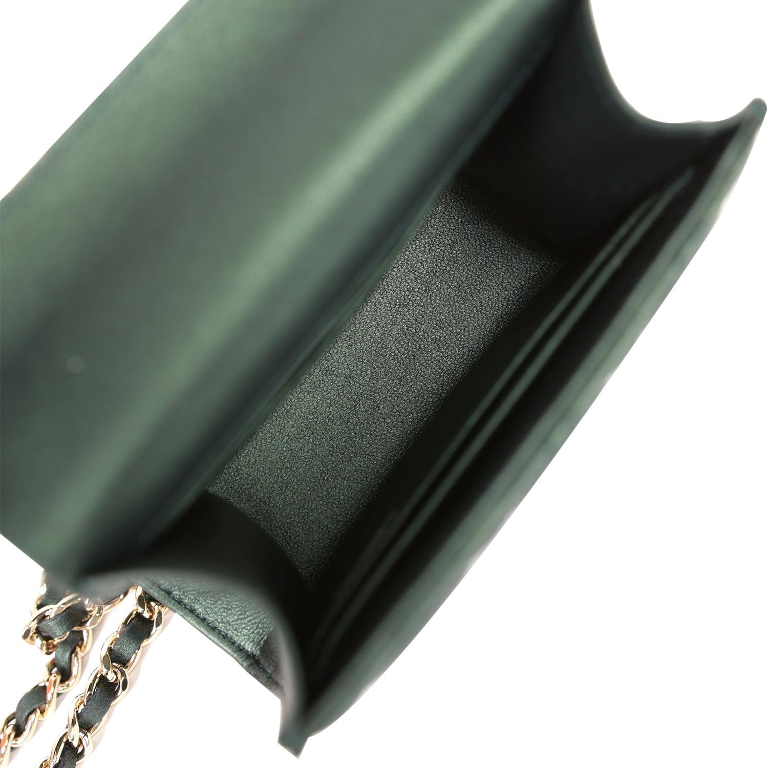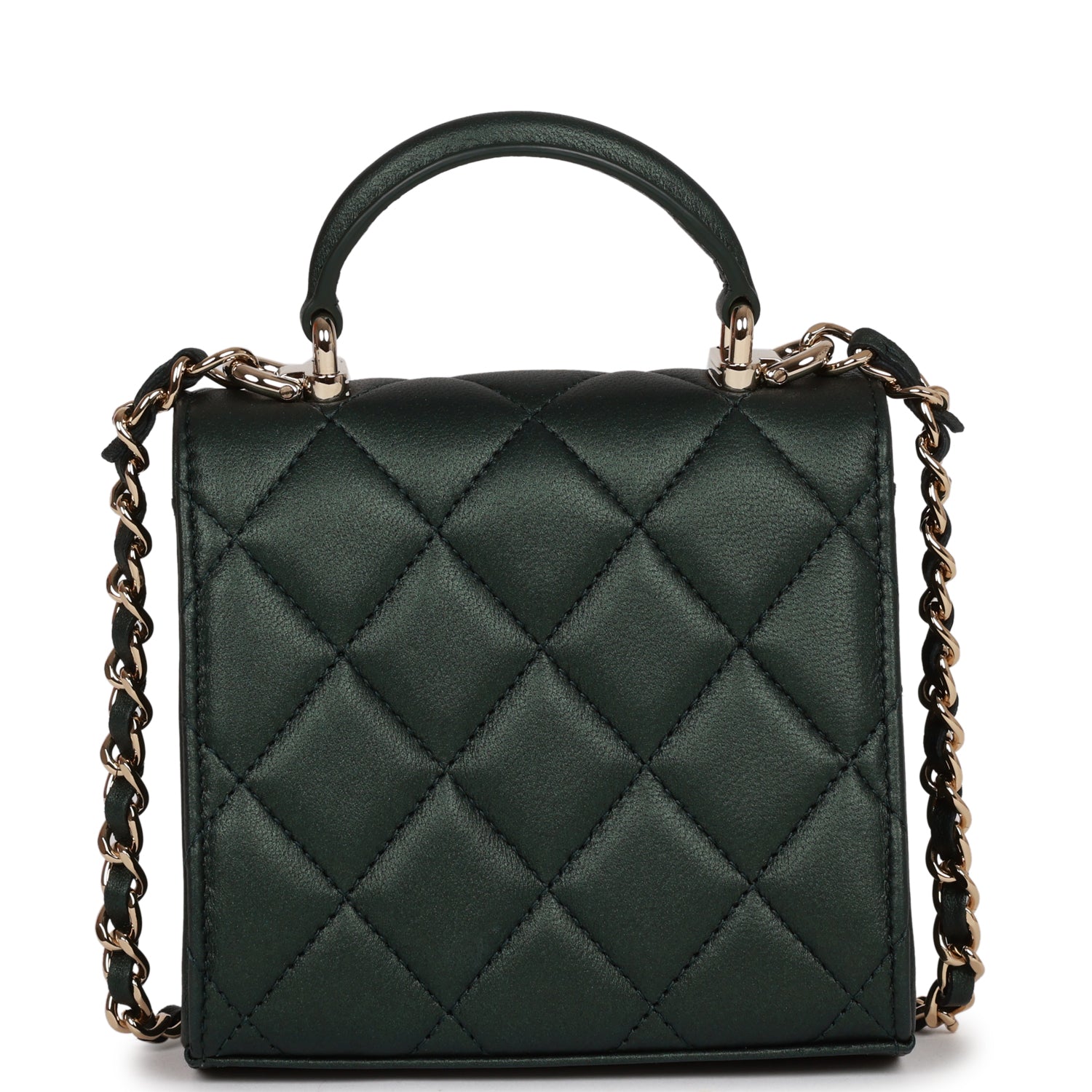 Chanel Mini Top Handle Clutch With Chain Dark Green Iridescent Lambskin Light Gold Hardware