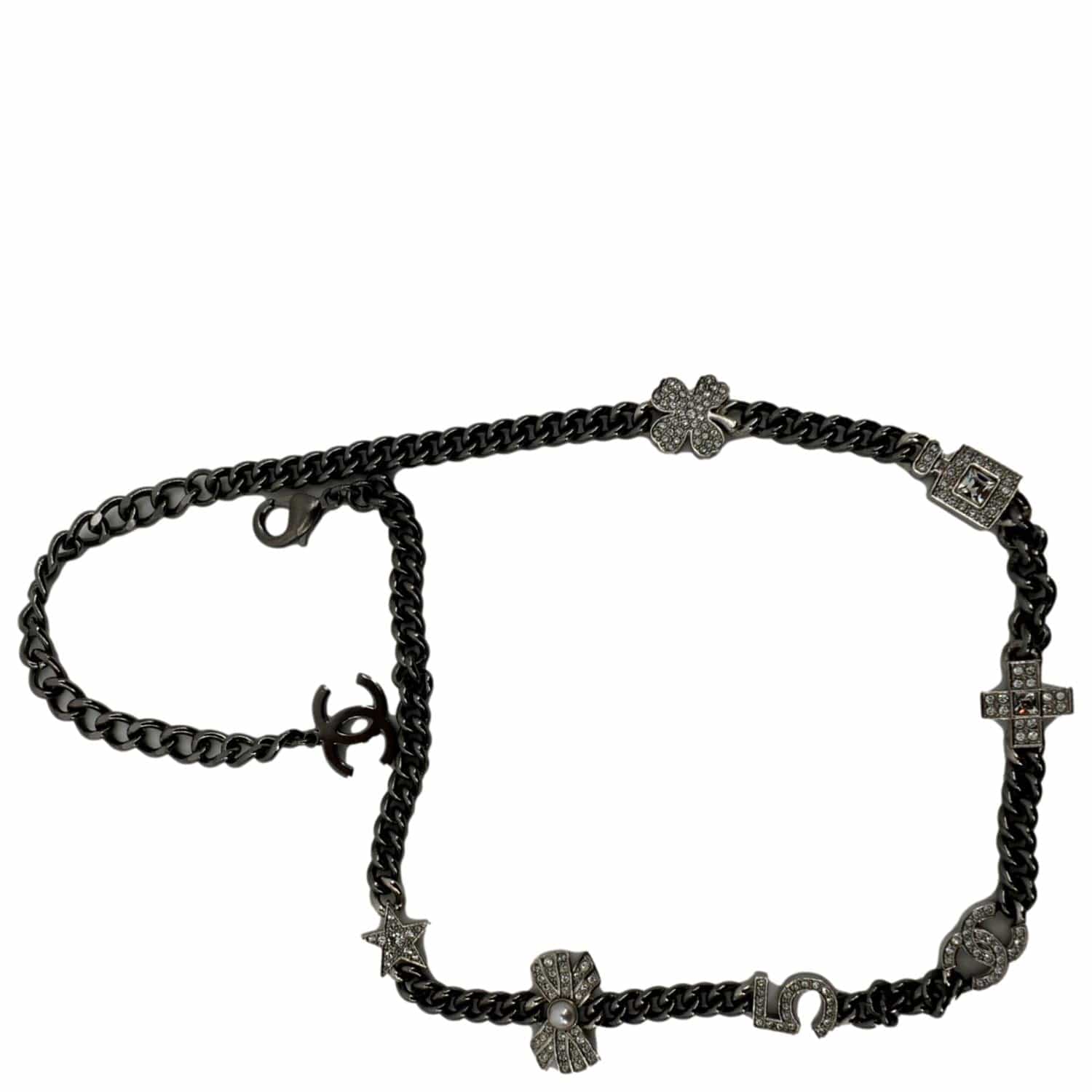 CHANEL CC Star Pearl Round Metal Necklace Silver