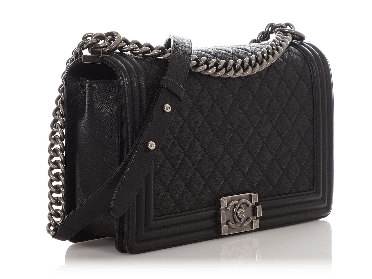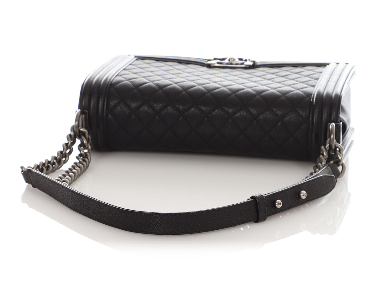 Chanel New Medium Black Quilted Caviar Boy Bag