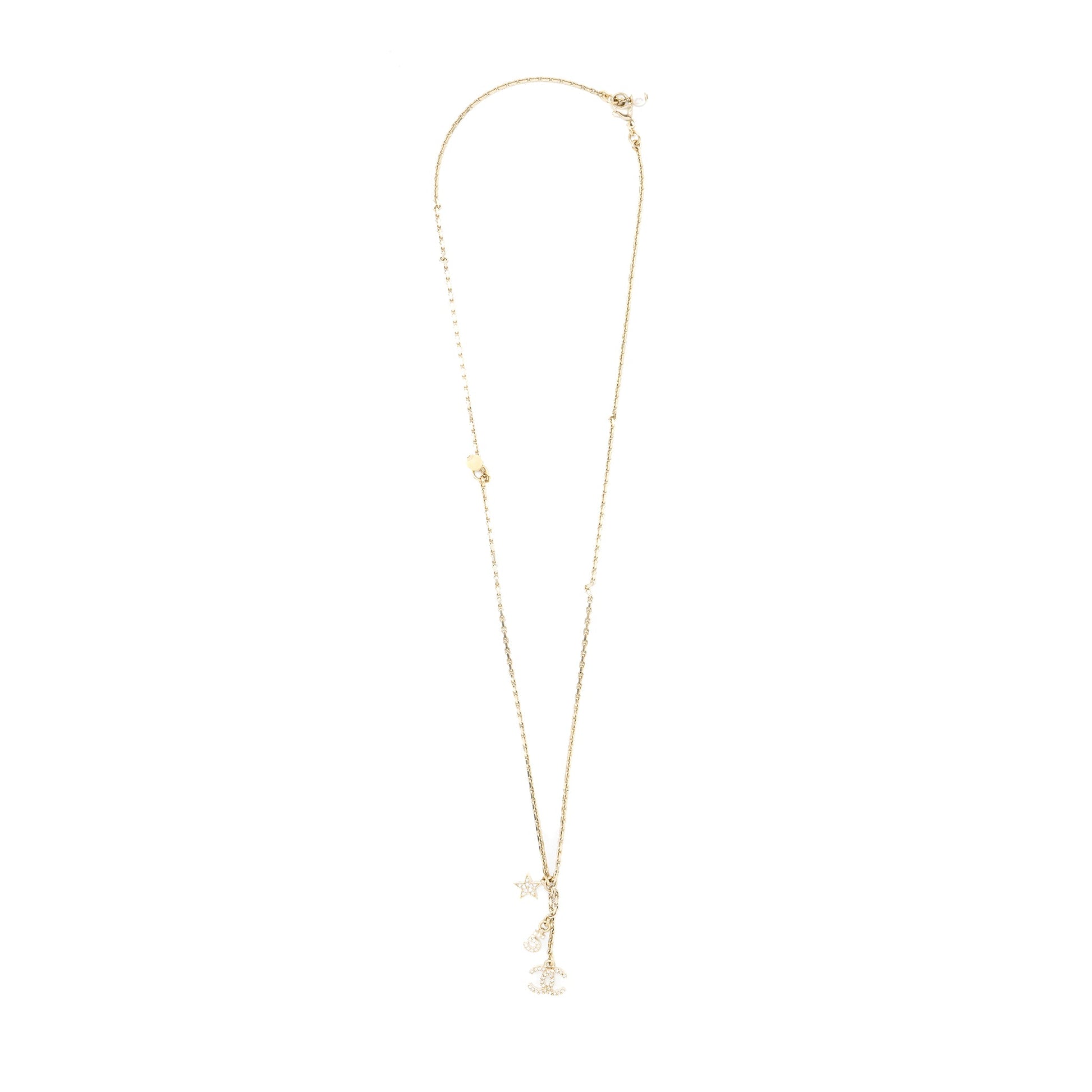 Chanel No.5/Star/CC Logo Dropped Crystal Necklace Light Gold Tone
