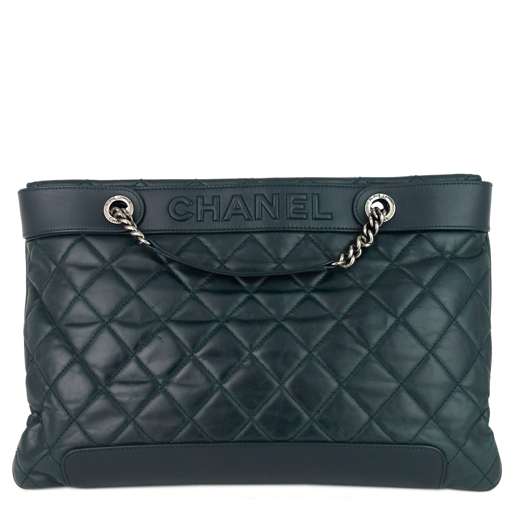 Made from diamond-quilted leather with CHANEL embossing, this spacious tote features a thoughtfully designed interior with many pockets and pull-through straps for hand or shoulder carry.