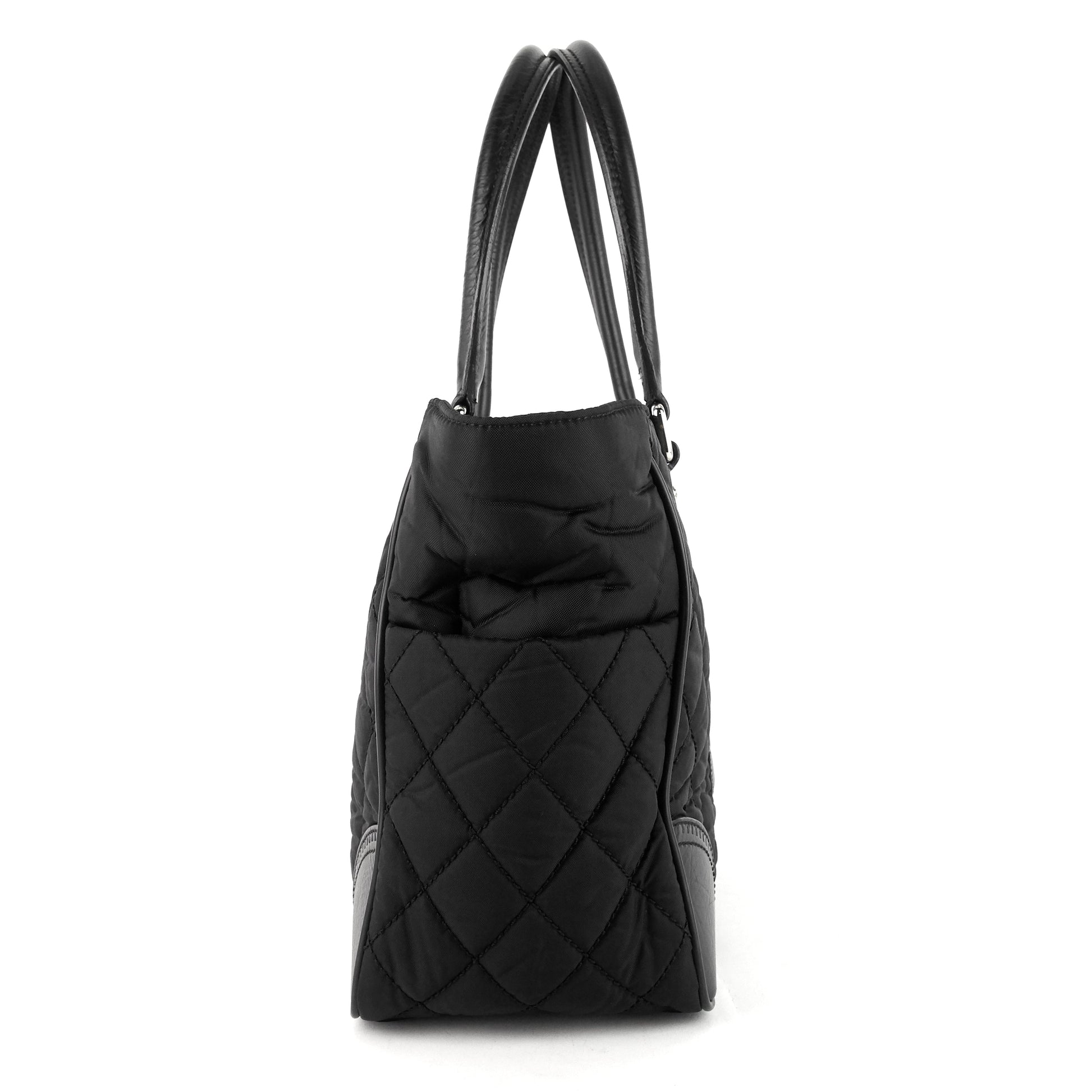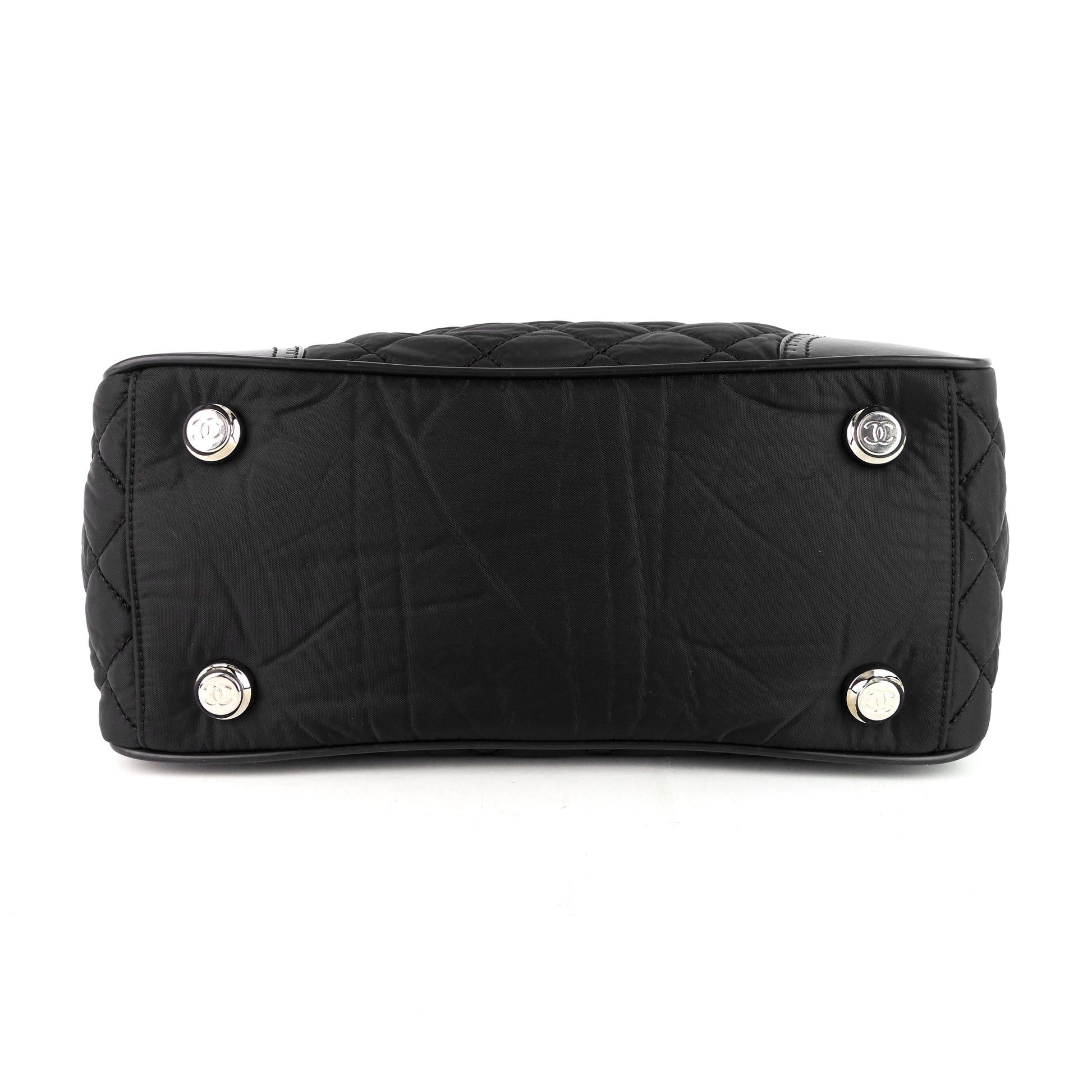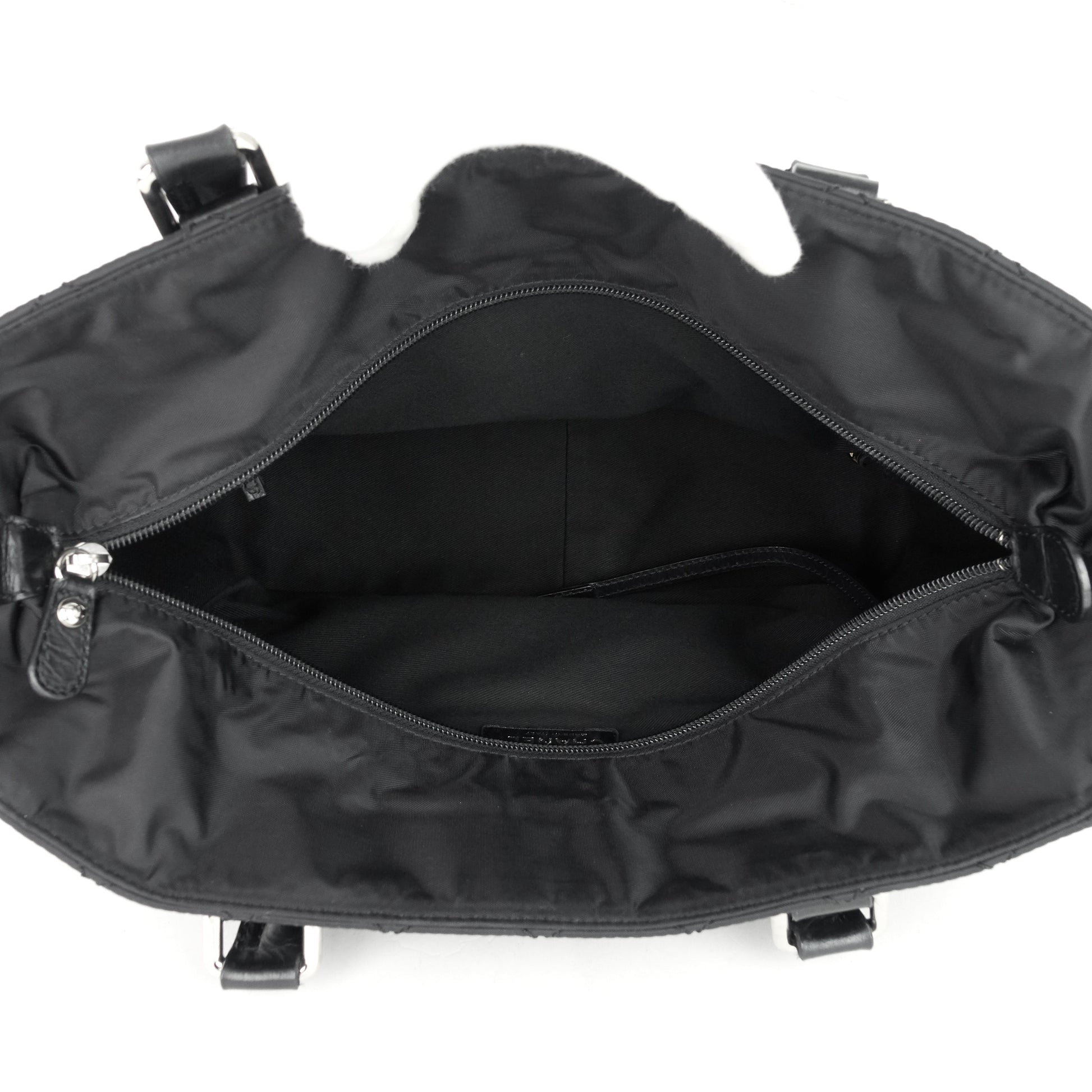 A quilted nylon tote trimmed with leather and finished with silver-tone hardware that's perfect for a variety of occasions—from a trip to the gym to a short, overnight visit.