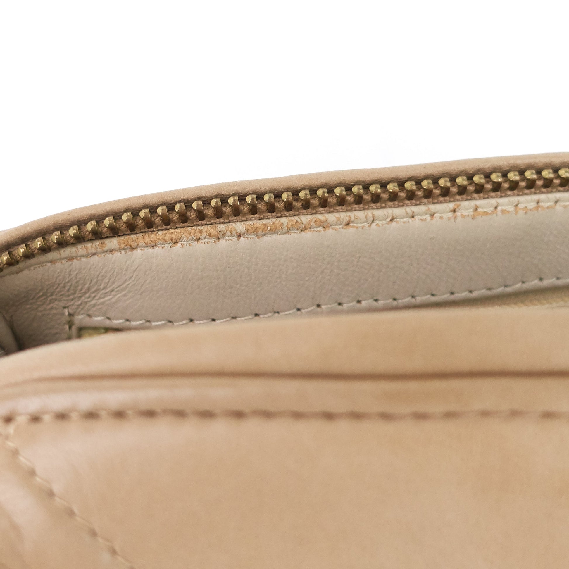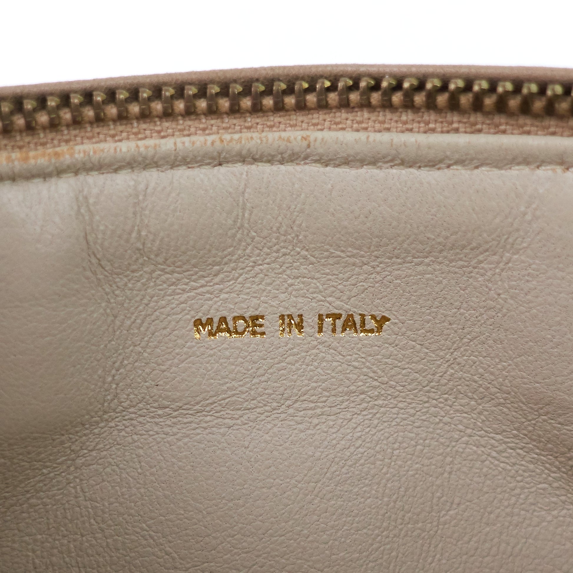 Overall: The leather exterior looks great with some faint darkening and gentle creasing. One tiny spot of leather piping on the side of the bag shows peeling. The leather interior and hardware look excellent with no obvious signs of wear. The silk interior of the zipped interior pocket shows faint discolouration. Some of the unlined undersides of the leather tassels show minor peeling.