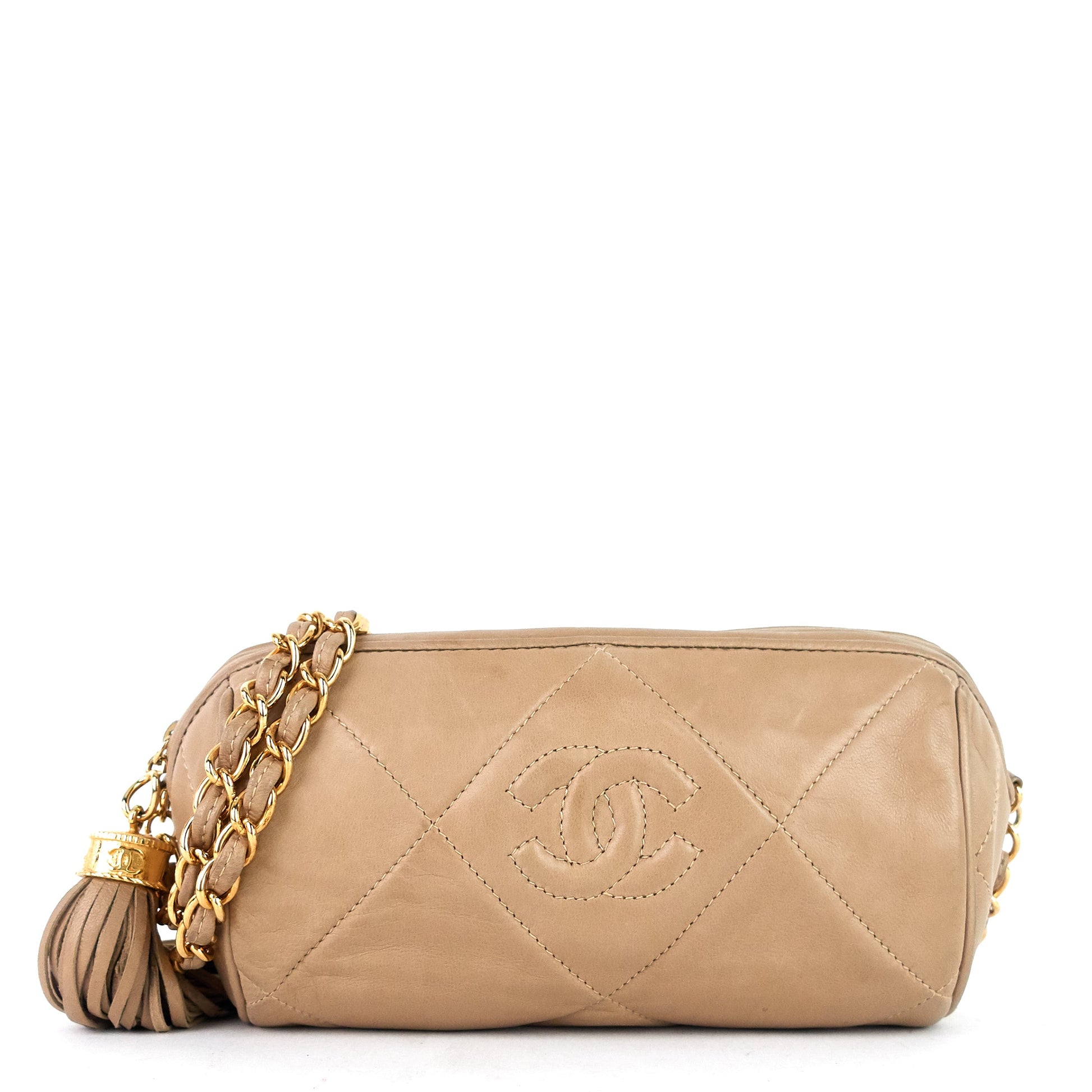 Diamond-quilted lambskin and a fun tassel define a chic crossbody that's carried with a leather-woven chain strap. Inside, the leather-lined interior is sized for the bare essentials.