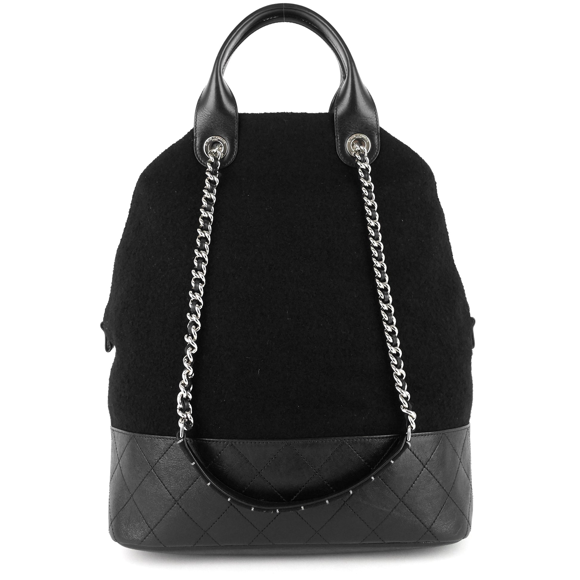 From Chanel's Métiers d’Art 2018 collection, this luxe tote is made from embroidered wool and diamond-quilted calfskin. Permanent over-the-shoulder straps and top handles offer carrying convenience and versatility, while a spacious interior lined with tonal nylon fits the daily essentials with room to spare. The embroidered lettering spells out the words CHANEL PARIS HAMBURG.