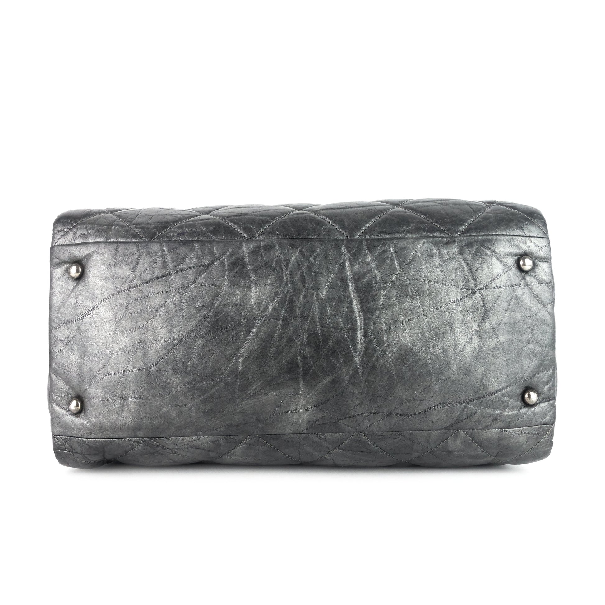 A spacious tote outfitted with both chunky chain handles and interwoven straps. Crafted from aged, diamond-quilted calfskin leather, it contains a trio of interior compartments for effortless organization.