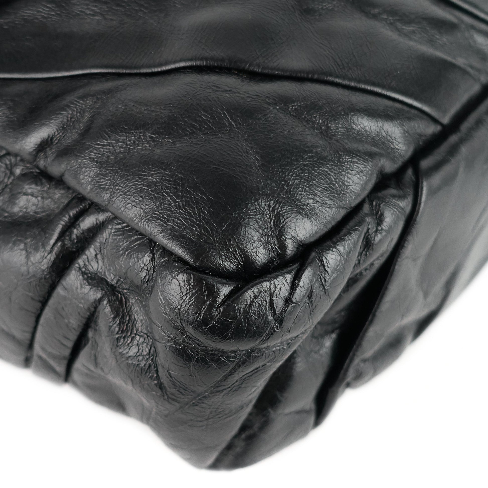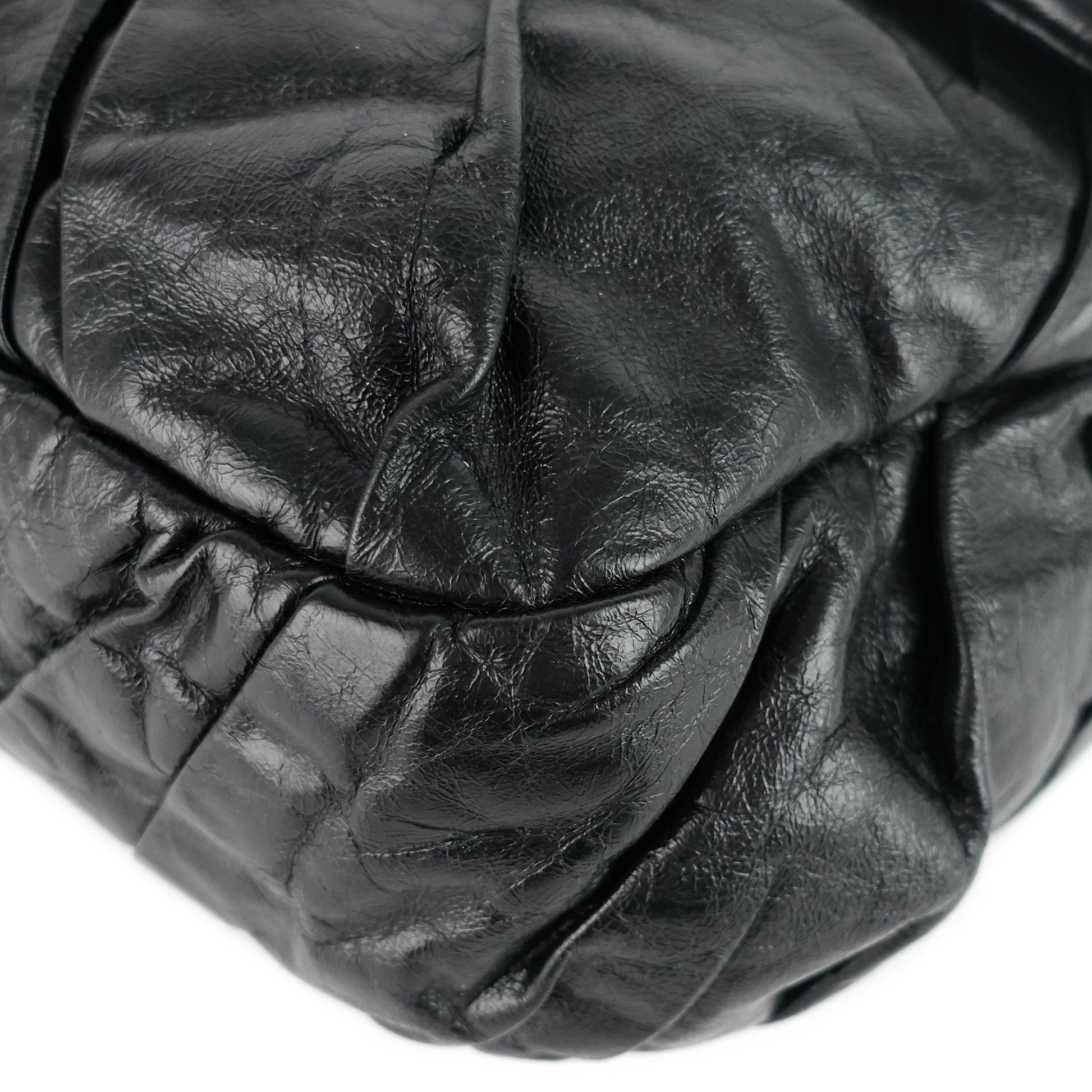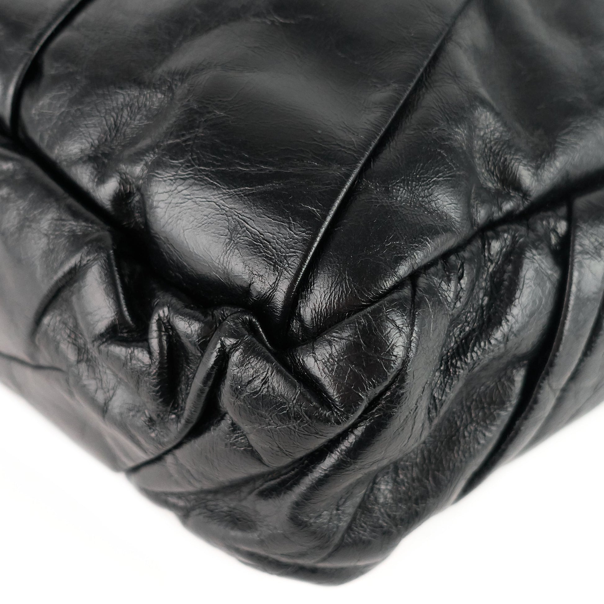 Impeccable diagonal pleating brings textural character and depth to a spacious shoulder bag crafted in Italy from glazed calfskin leather.