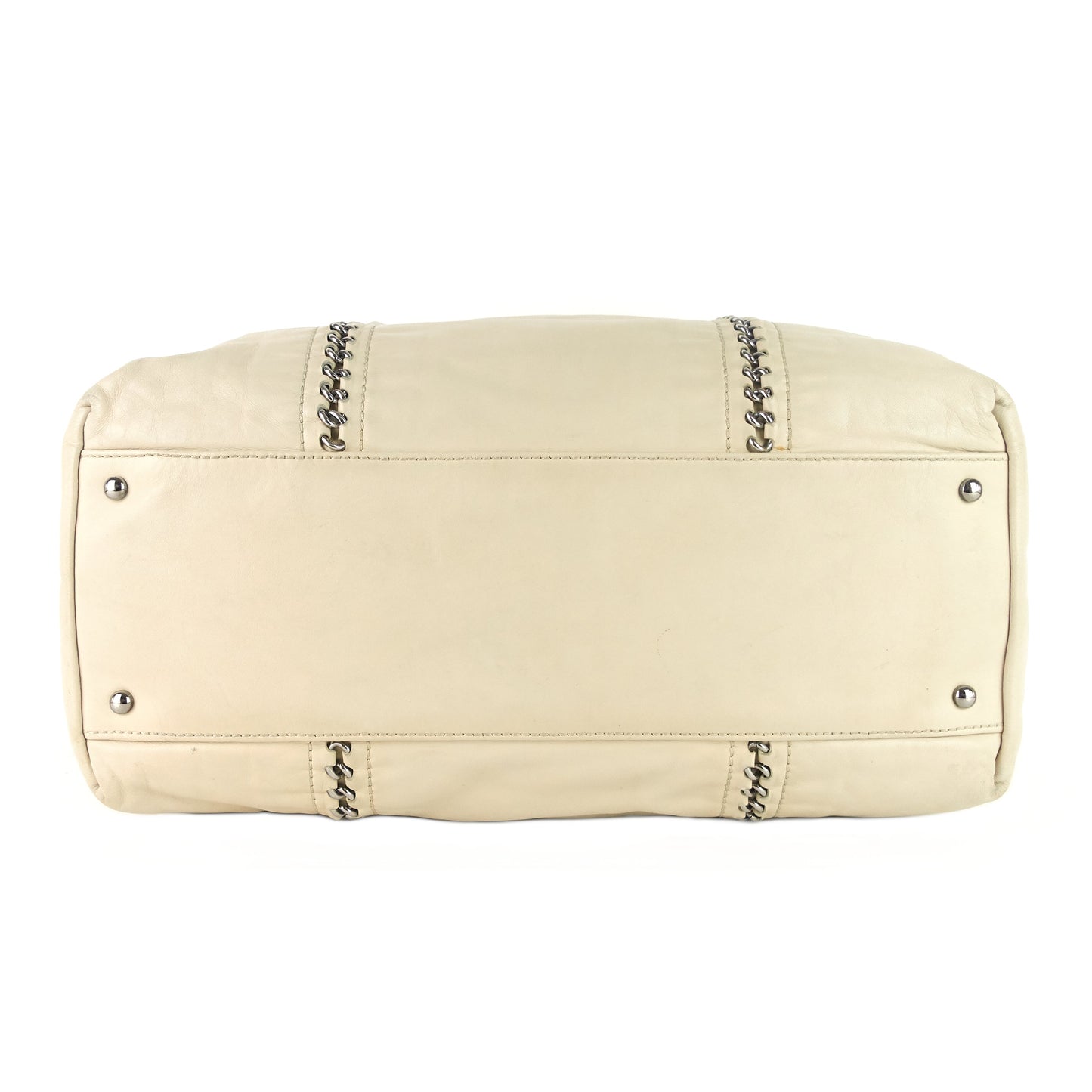 Supple Italian leather with chain detailing shapes a spacious tote bag that's sized to carry everything you could possibly need for a day's adventure.