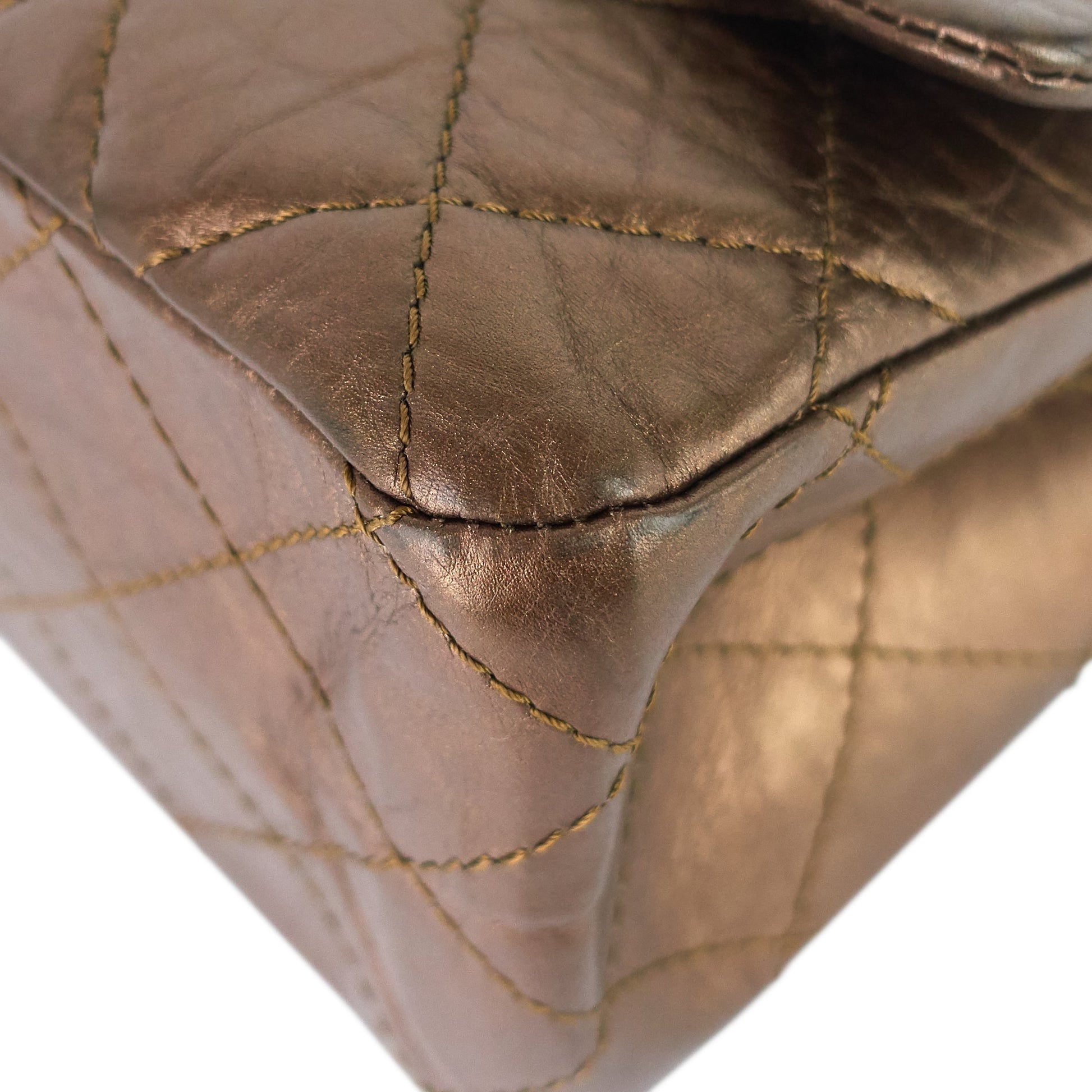Refresh your wardrobe with a vintage-inspired shoulder bag featuring dual flap compartments and a retro mademoiselle lock. Crafted from aged calfskin leather with an allover distressed finish and ruthenium-tone hardware, it is packed with plenty of pockets to keep you organized. The sliding chain-link straps can be worn doubled or lengthened for a longer, crossbody drop.