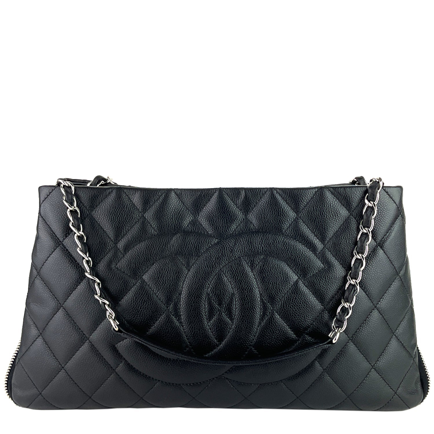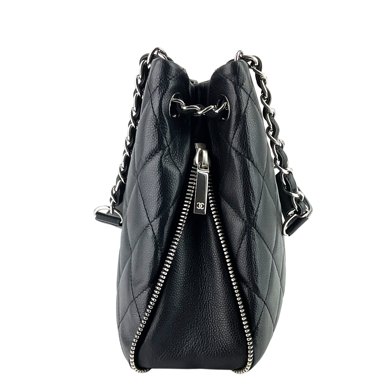 Chanel Expandable Zip Caviar Leather Shoulder Bag