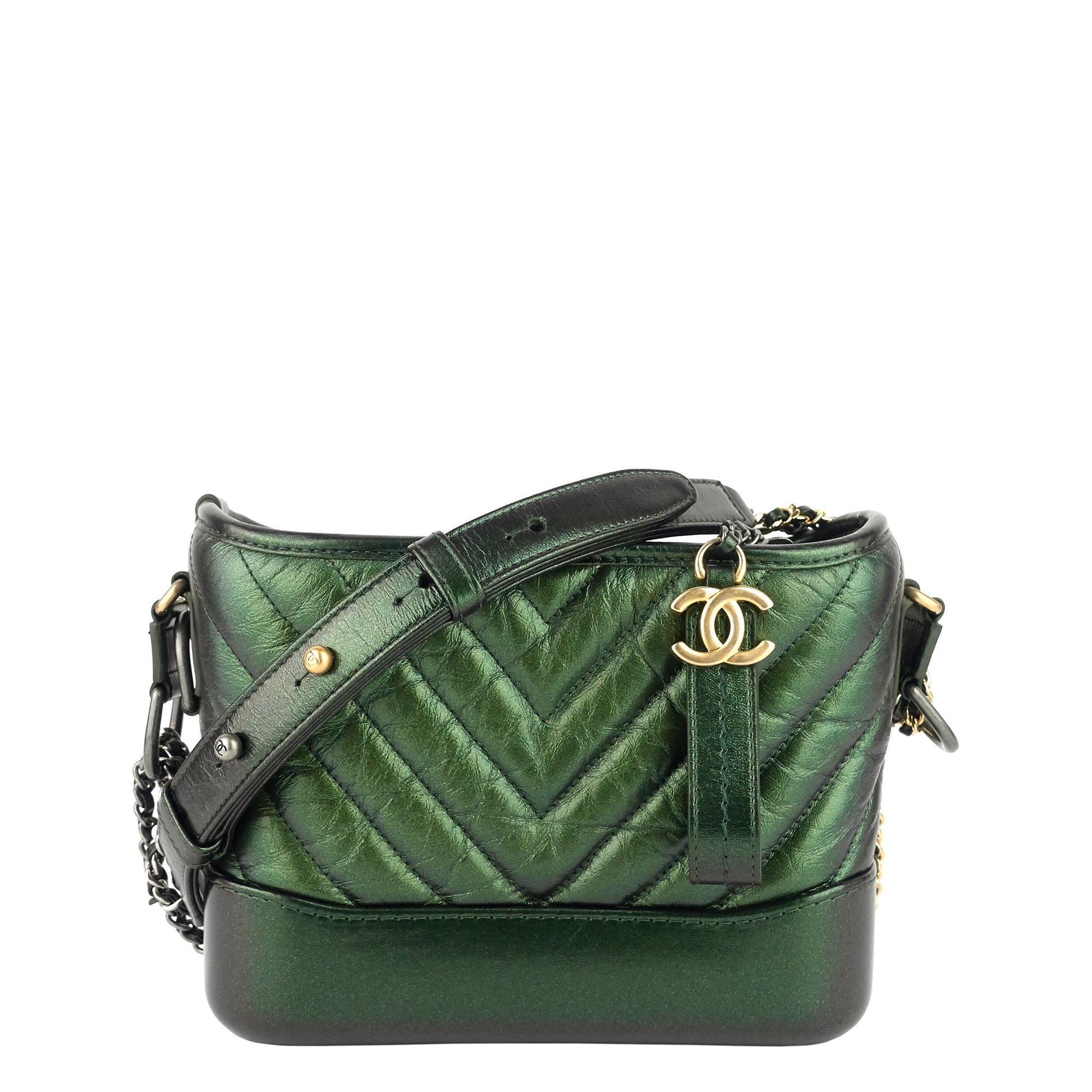 Chanel Gabrielle Small Chevron Metallic Leather Hobo Bag