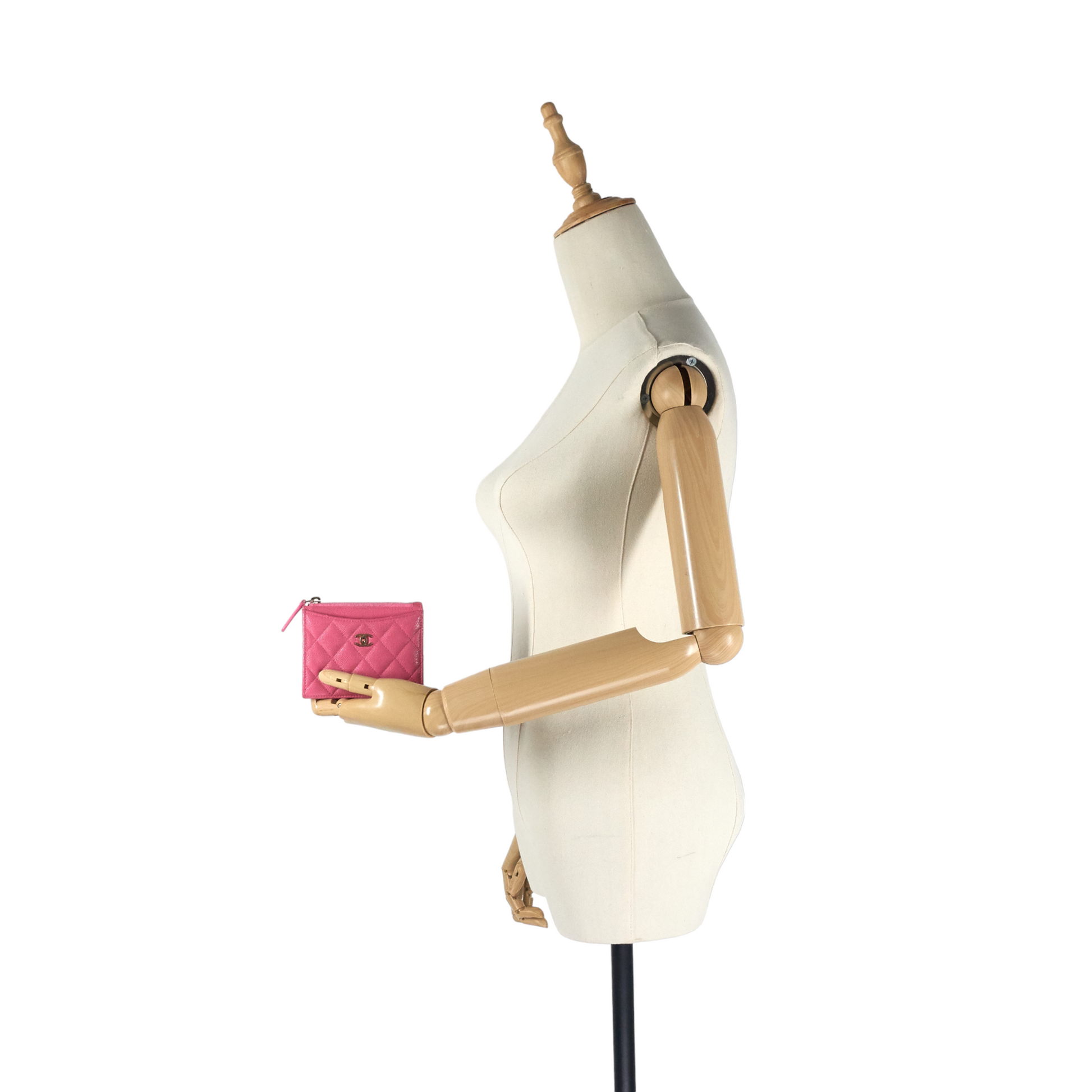 Featuring four card slots and a center compartment for coins, this slim cardholder in quilted caviar leather offers both style and practicality.