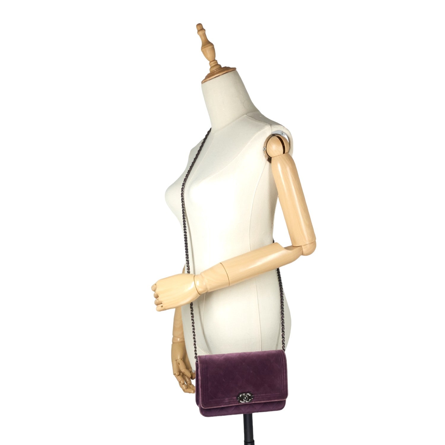 Chanel Boy Quilted Velvet Wallet on Chain Bag