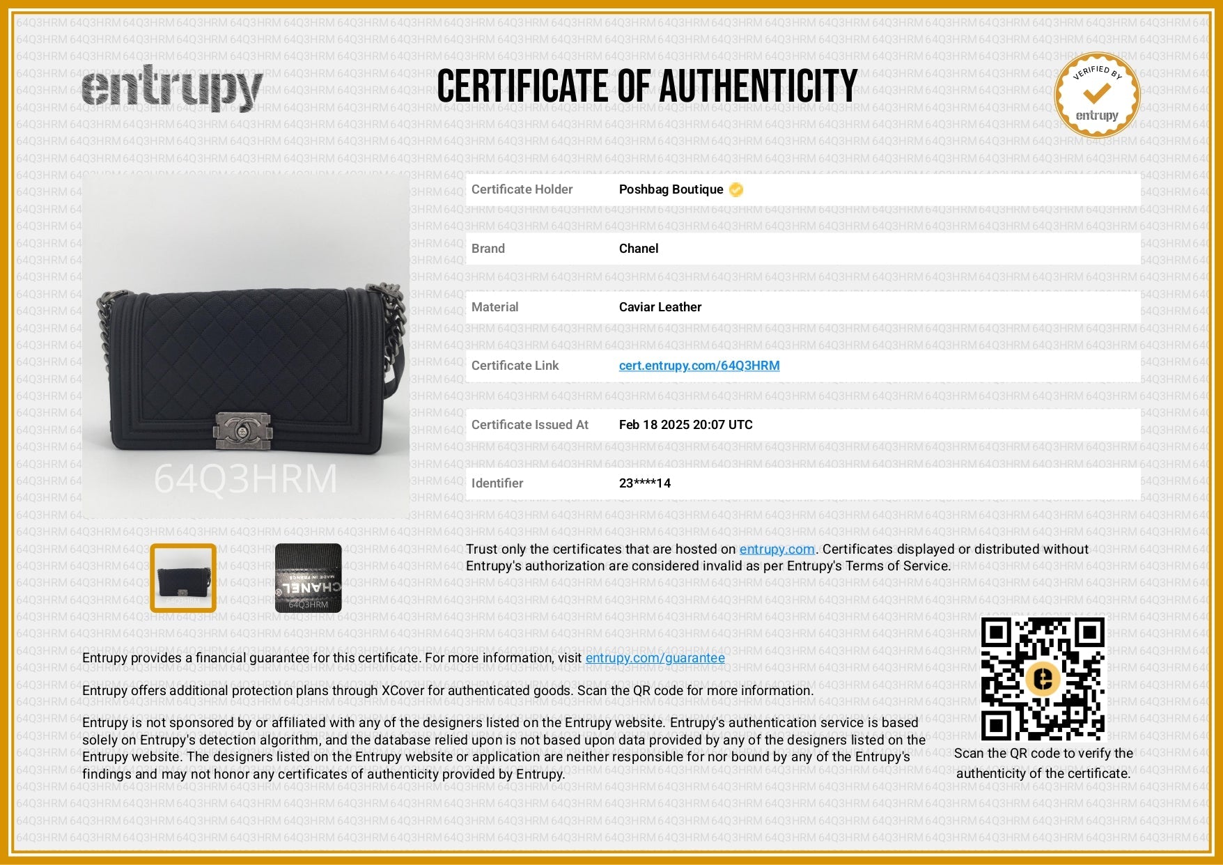 Accessories: Includes copy of receipt ($5,350 CAD, 2016), dust bag, box, care pamphlet, dust cloth.