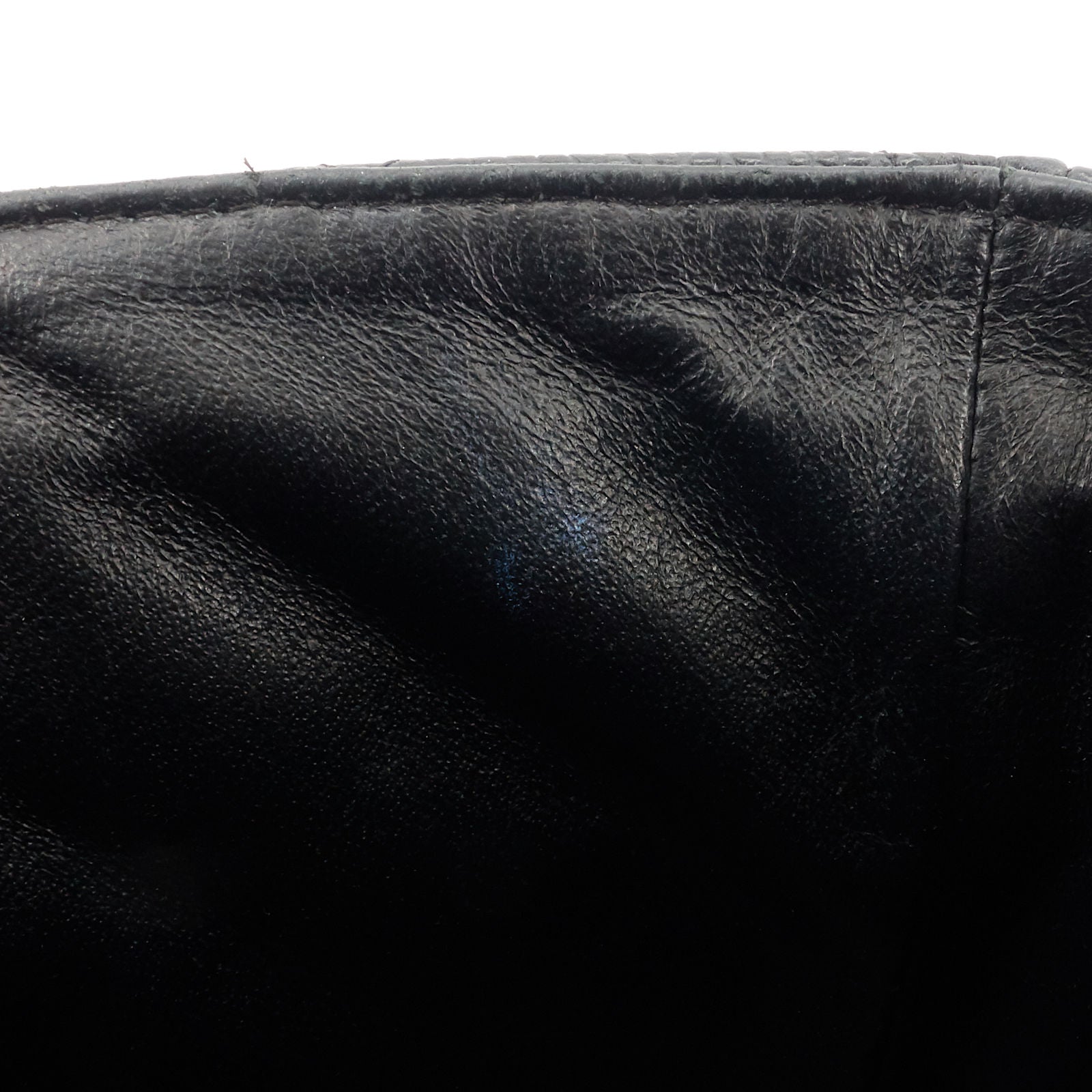 Overall: The exterior leather is in excellent condition, showing only minor scuff marks on the bottom corners. The interior exhibits visible wear, with light scuff marks and scratches throughout, as well as a single faint stain near the opening. The hardware remains lustrous and clean and shows no visible signs of wear