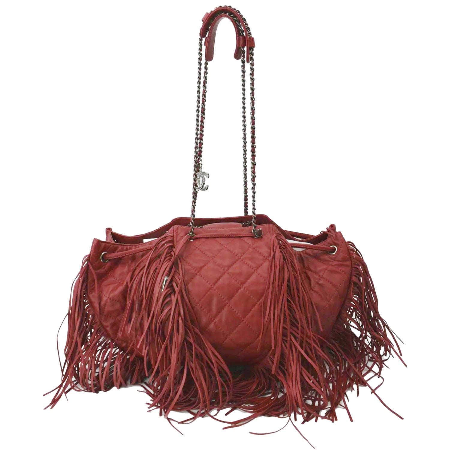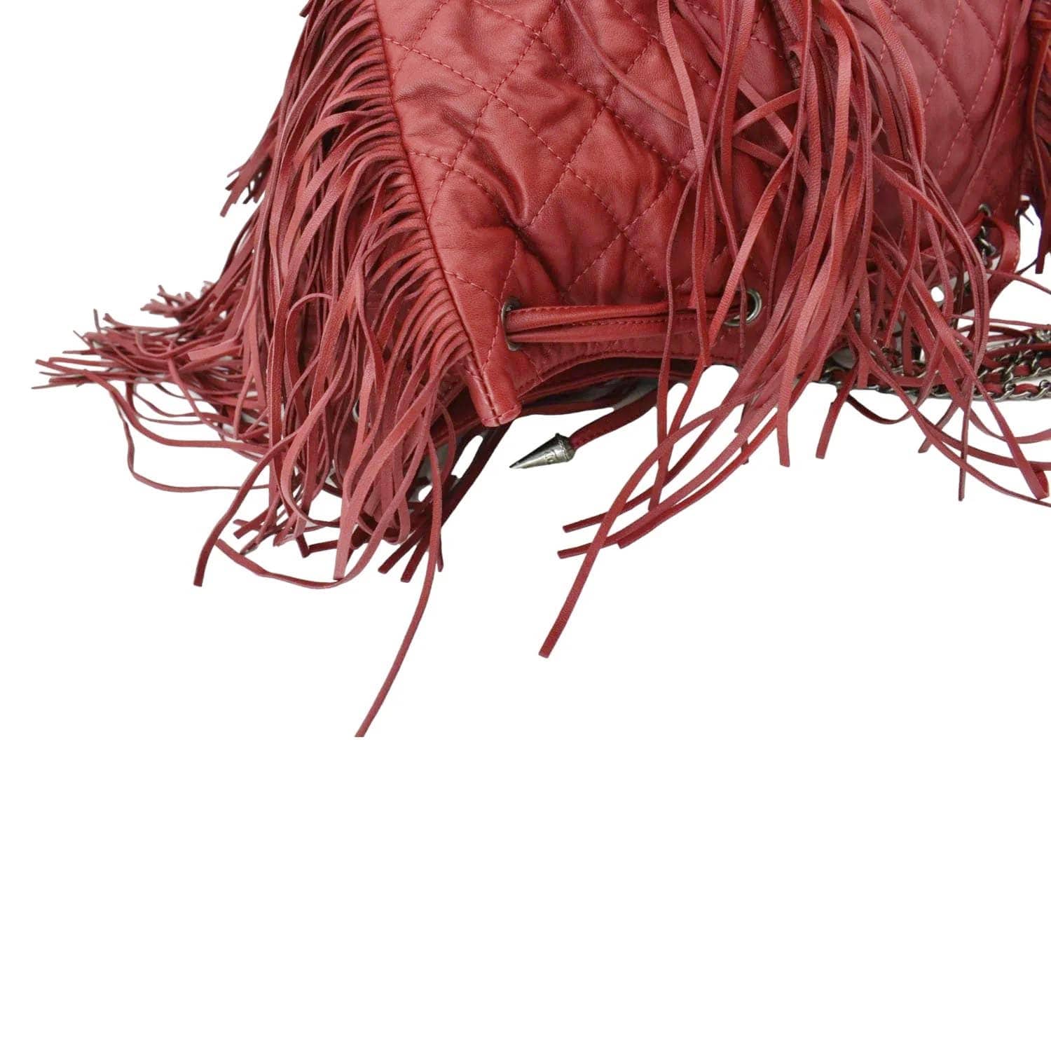 CHANEL Paris Dallas Drawstring Fringe Leather Shoulder Bag Red