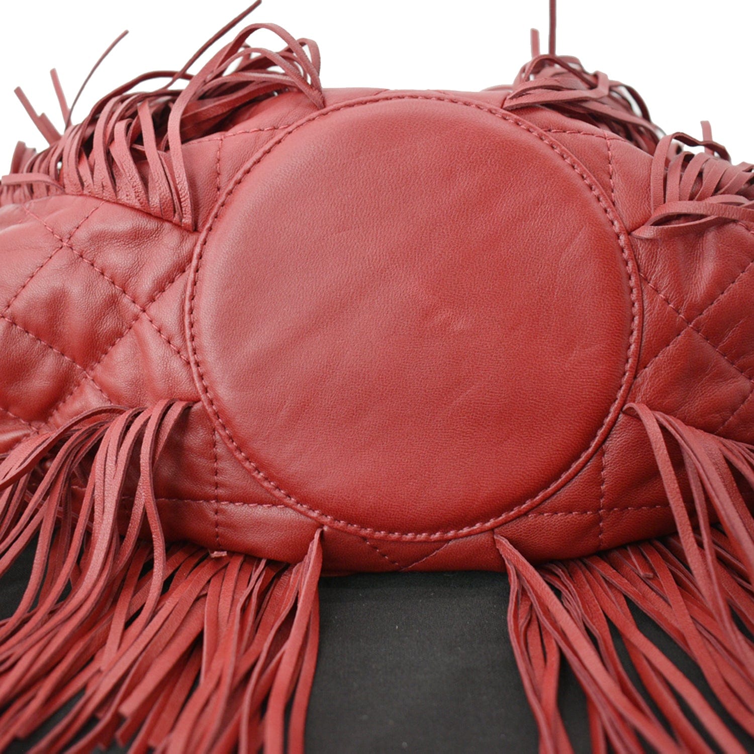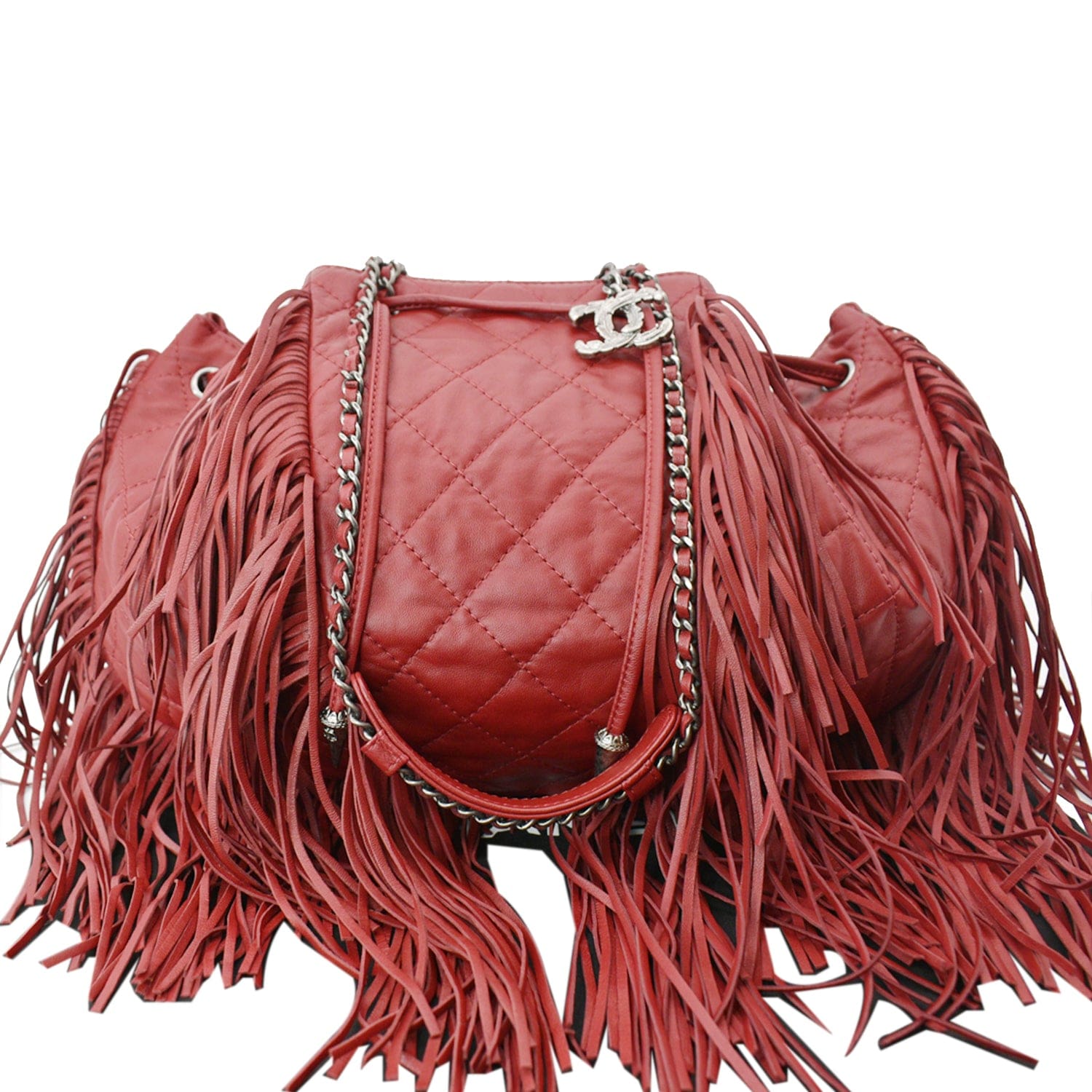 CHANEL Paris Dallas Drawstring Fringe Shoulder Bag Red