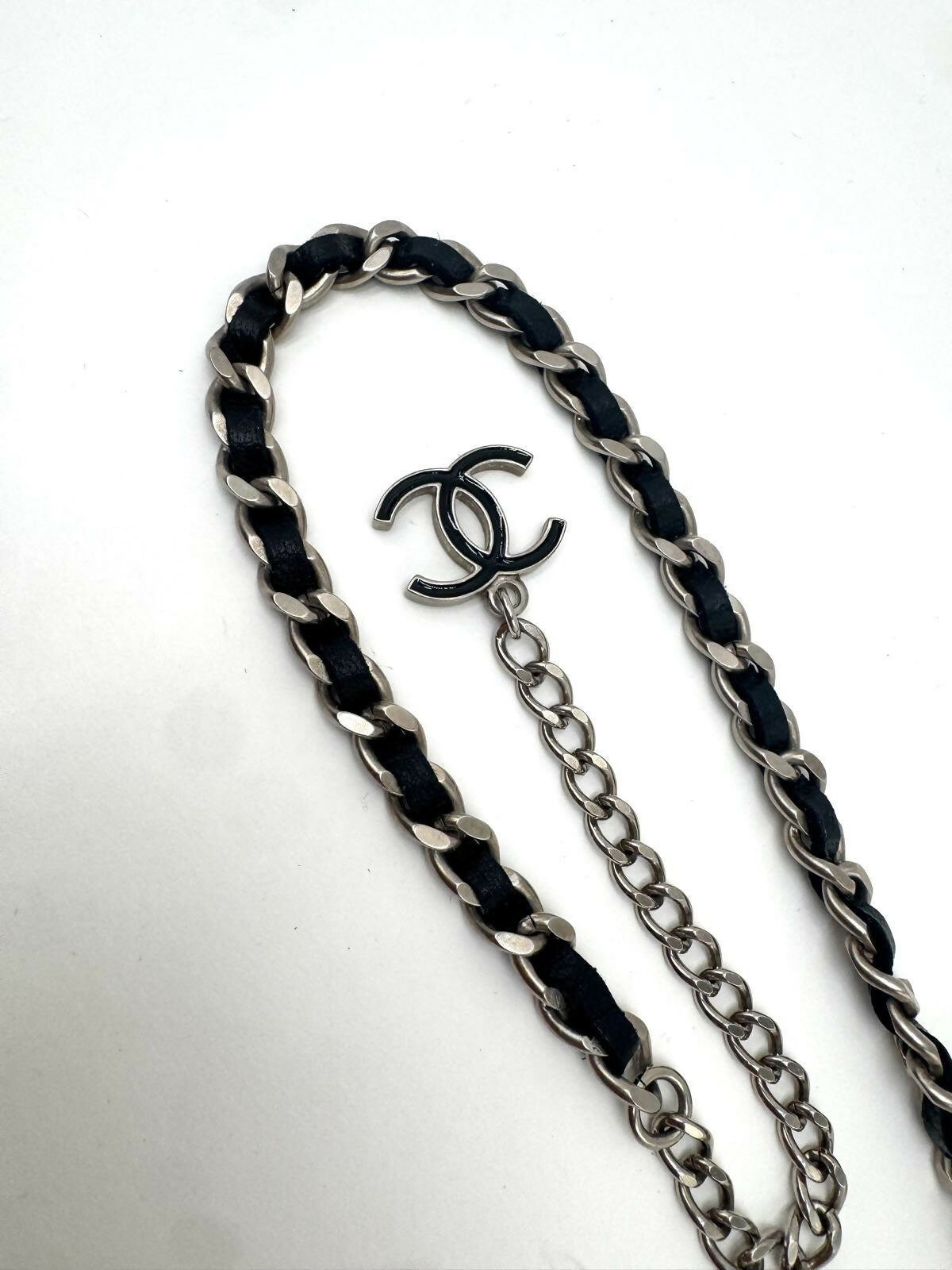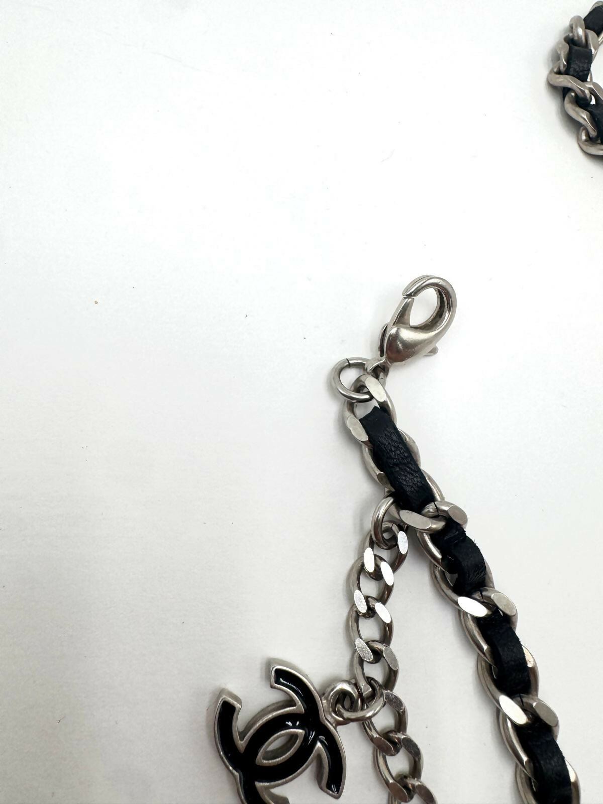 This exquisite Chanel necklace from the coveted Paris–Moscow Métiers d’Art 2009 Collection is a rare and collectible statement piece that beautifully marries opulence with whimsy. Featuring multiple strands of silver-tone chain interwoven with signature black leather, the necklace is adorned with a captivating array of matte and glossy black enamel Matryoshka (Russian nesting doll) charms, each intricately detailed with delicate crystal accents and miniature Chanel motifs. Interspersed between the dolls are iconic interlocking ‘CC’ logo charms, creating a perfect balance of playful elegance and unmistakable brand identity. With its sautoir-style length (approximately 35 inches), this versatile piece can be worn long for dramatic impact or doubled for a layered, couture-inspired look. A stunning fusion of cultural artistry and Chanel’s signature luxury, this necklace is more than jewelry—it’s a wearable work of art and a true collector’s treasure, ideal for those who appreciate rare, runway-worthy adornments.
