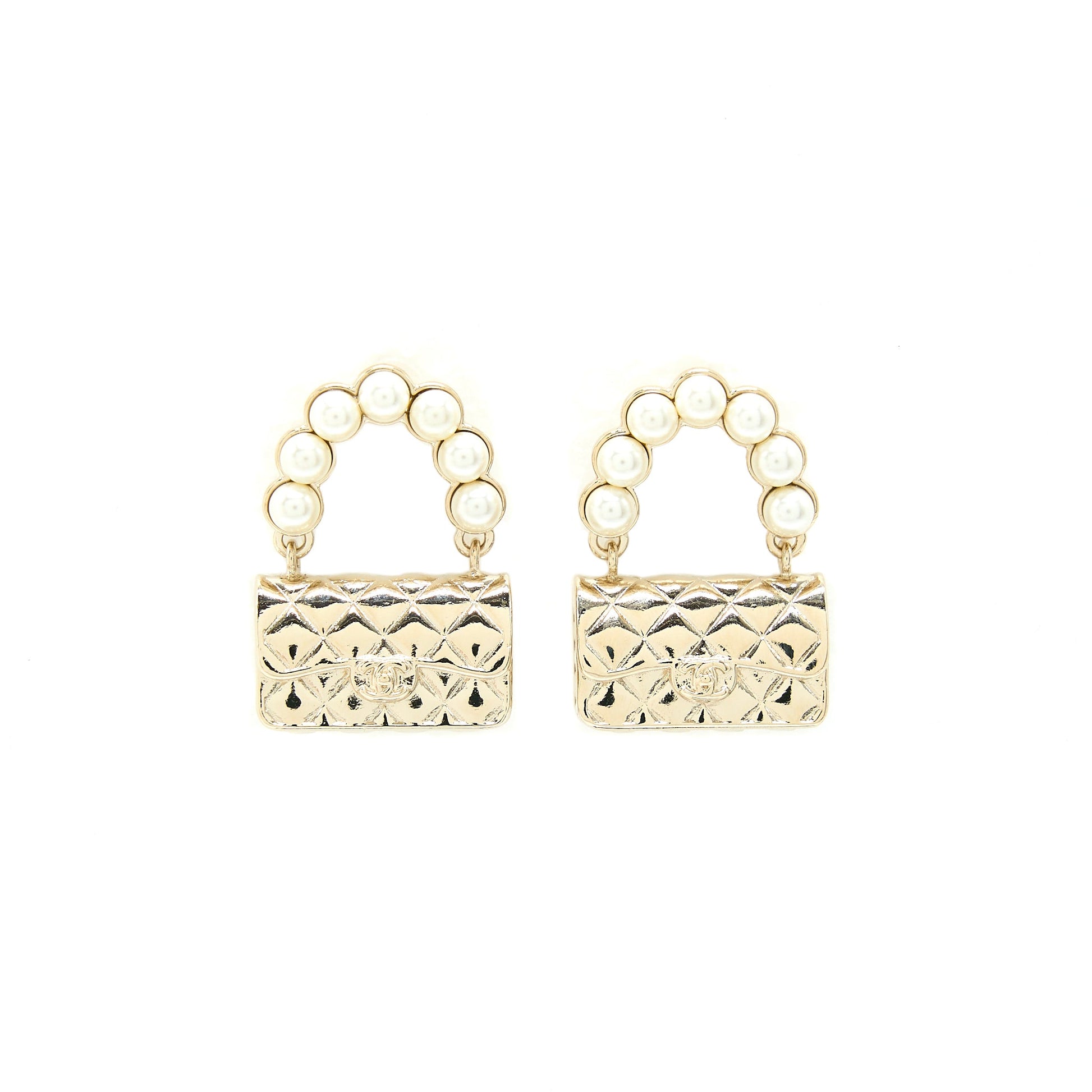 Material: Light Gold-Finish Metal with White Resin Pearls