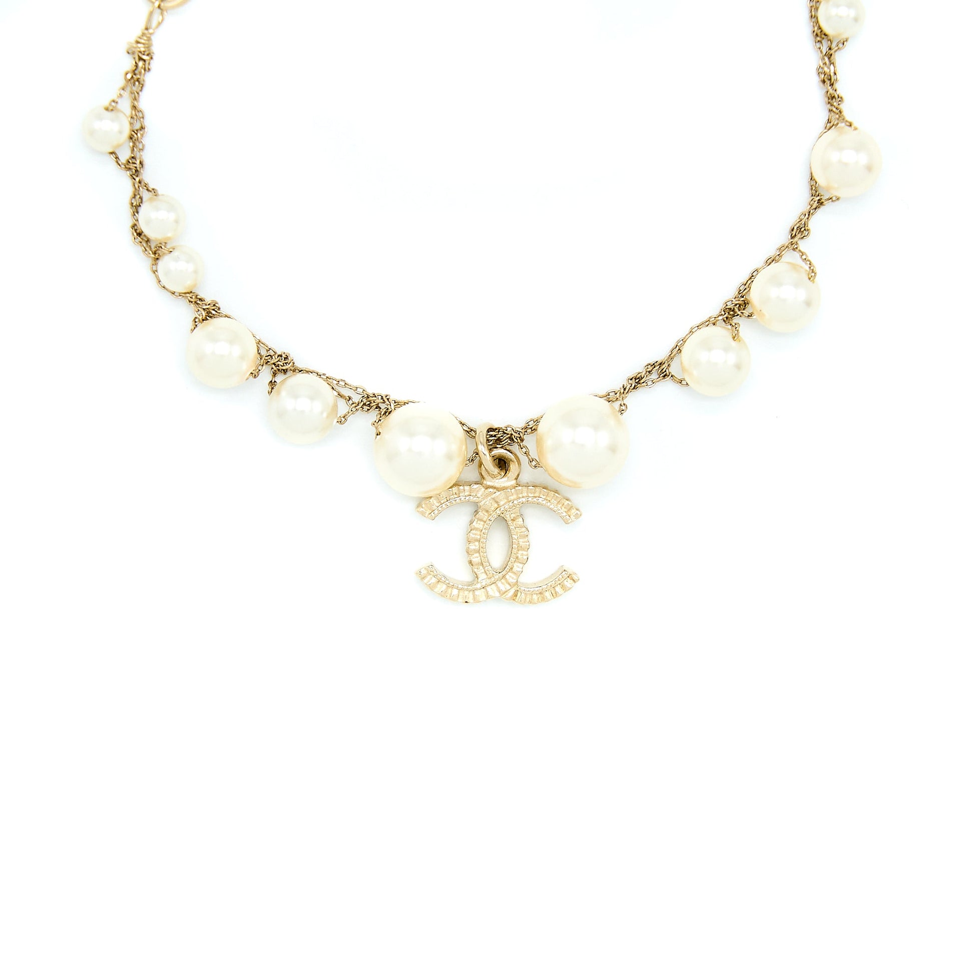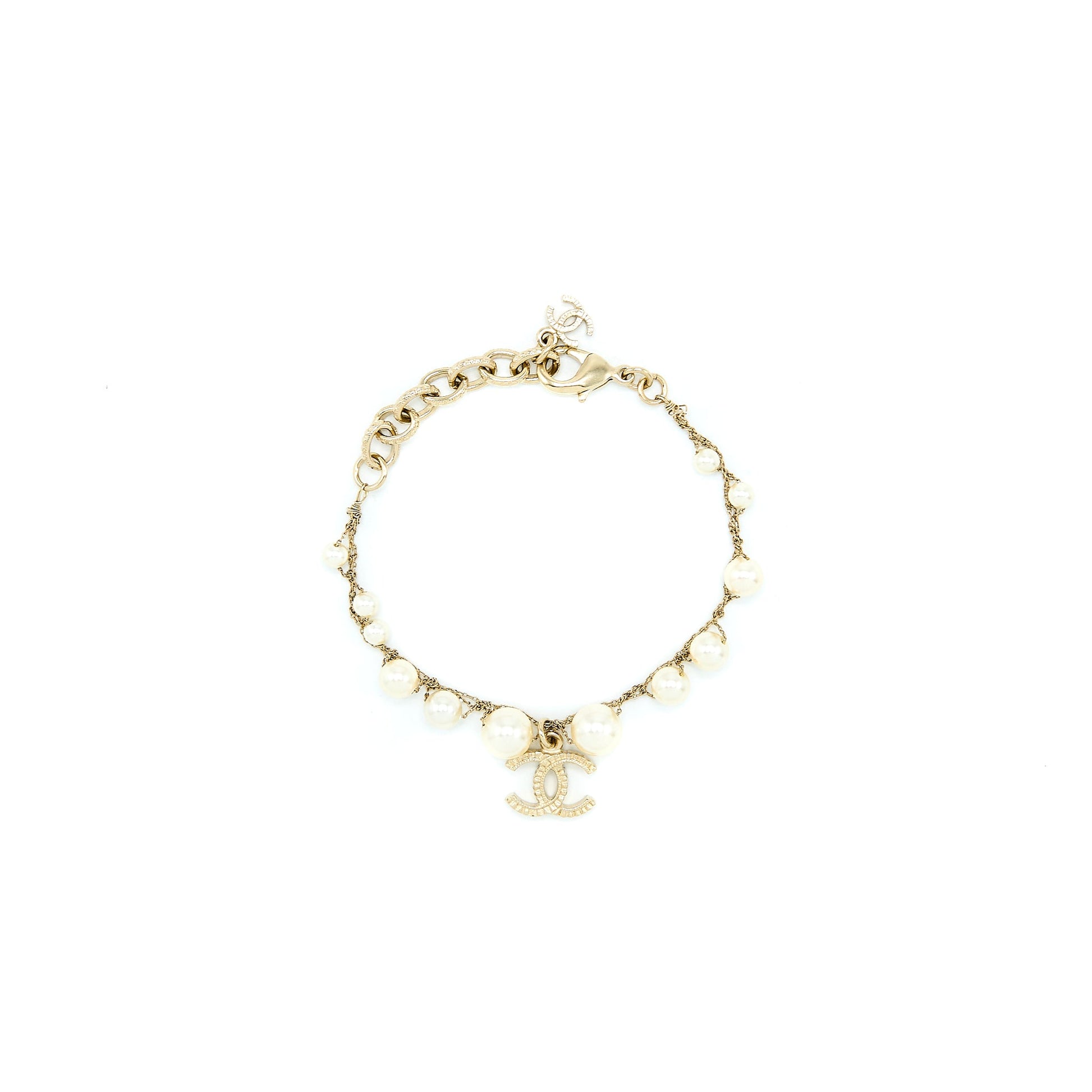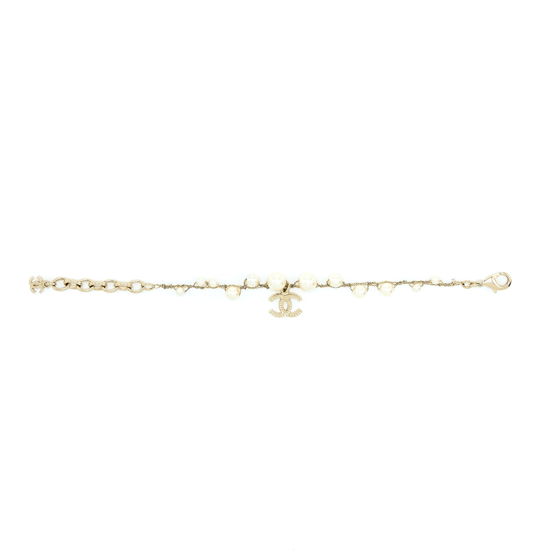 Chanel Pearl And CC Logo Bracelet Light Gold Tone