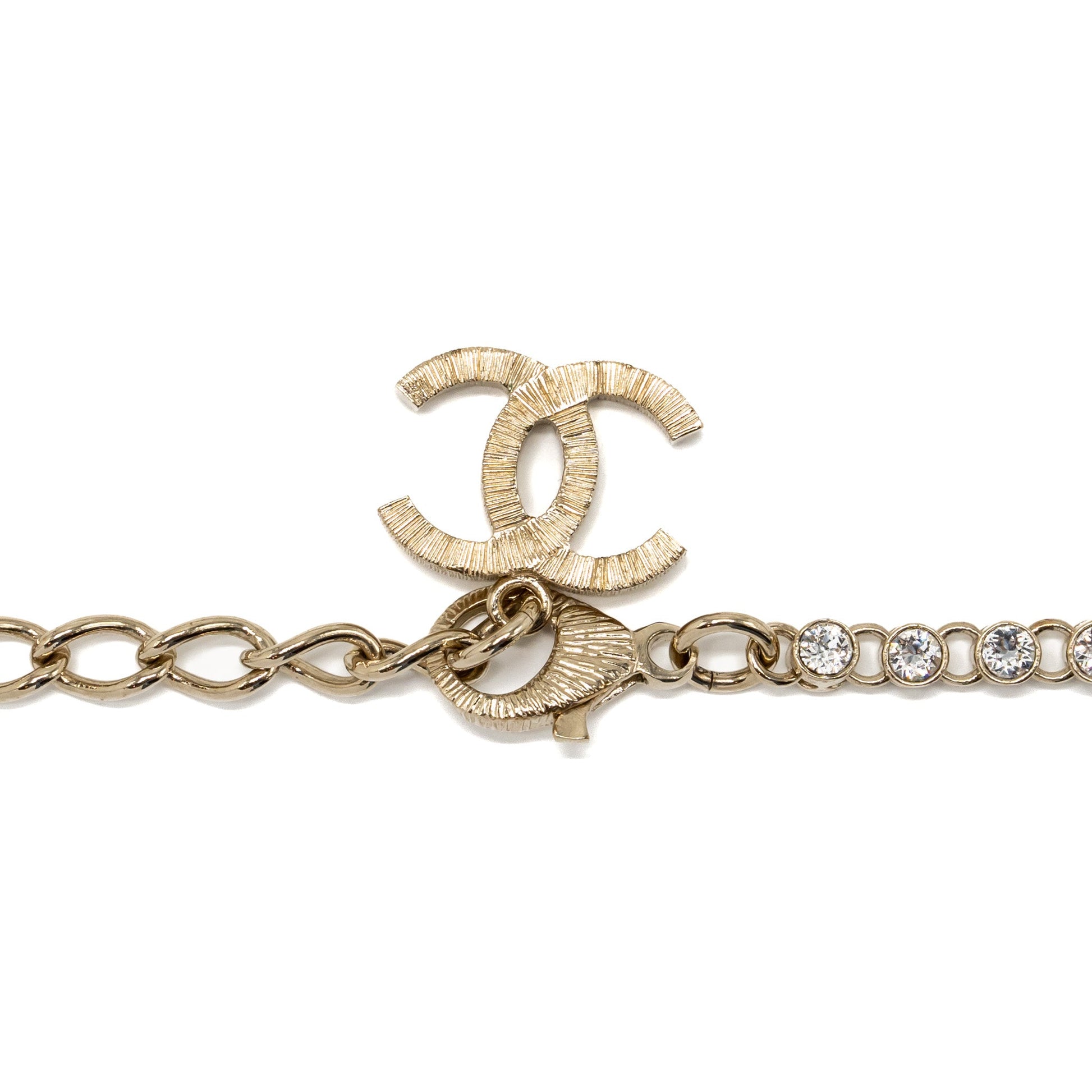 Chanel Pearl and CC logo with crystal chain necklace light gold tone