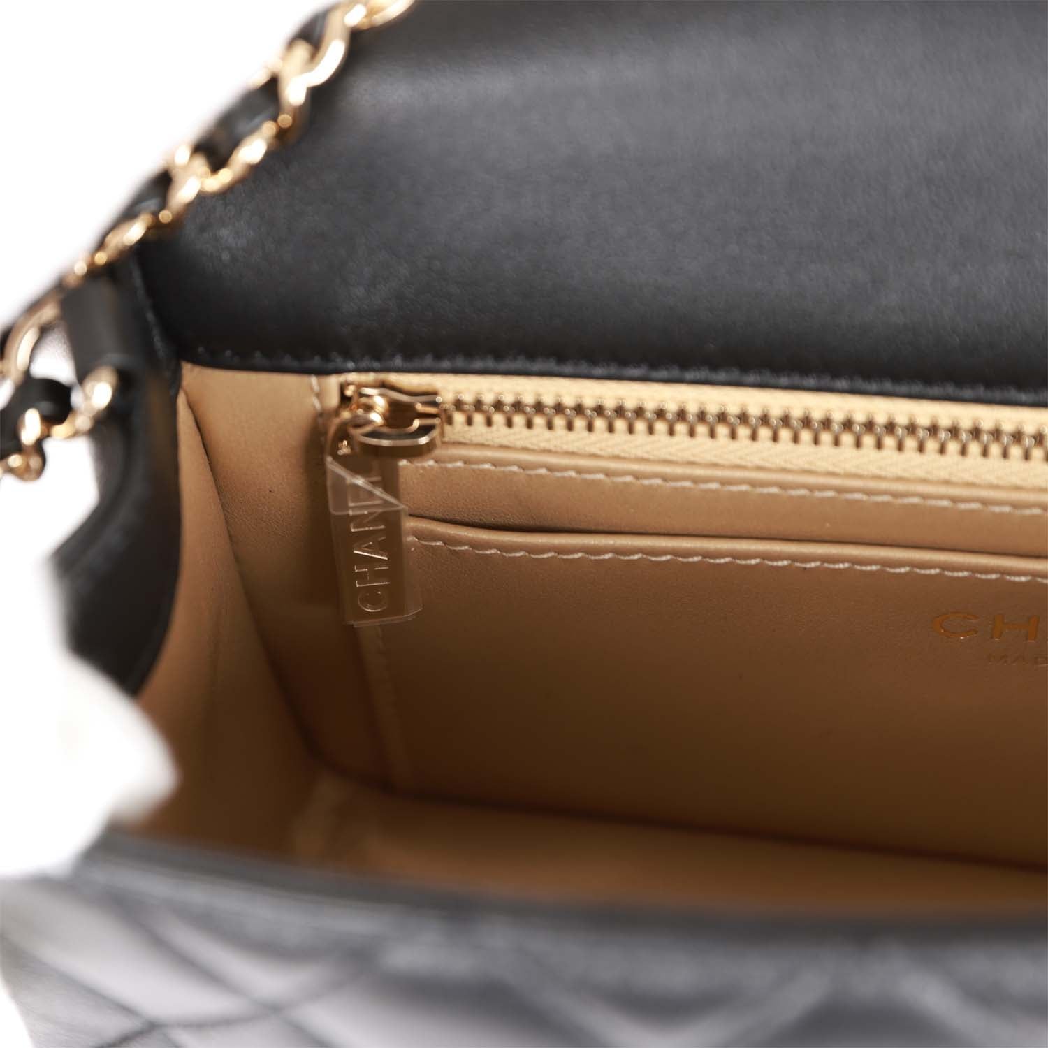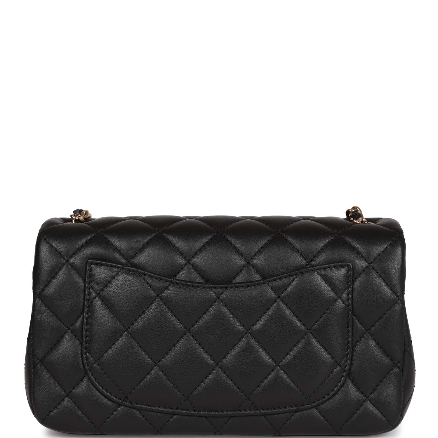 Chanel Pearl Crush Mini Rectangular Flap Bag Black Lambskin Light Gold Hardware