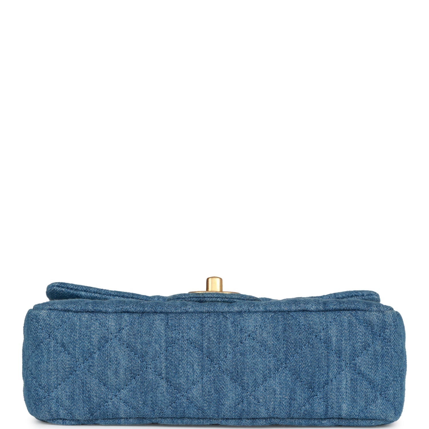 Chanel Pearl Crush Mini Rectangular Flap Bag Blue Denim Lambskin Antique Gold Hardware