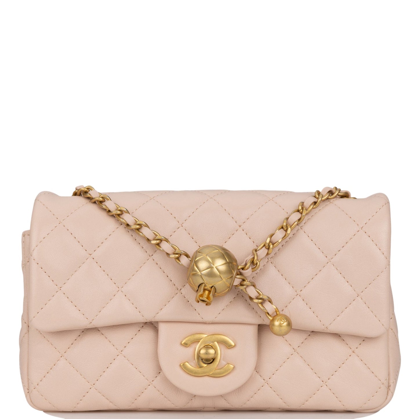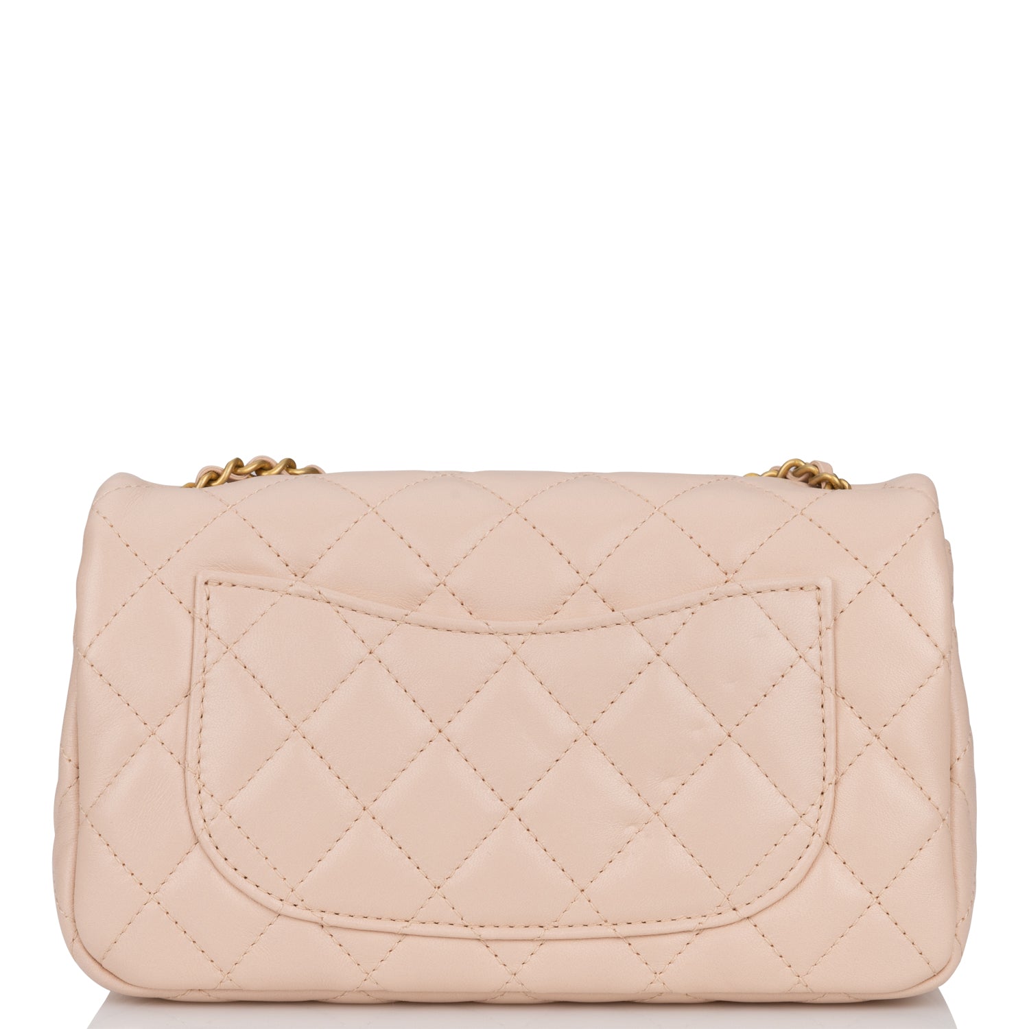 Chanel Pearl Crush Mini Rectangular Flap Bag Light Beige Lambskin Antique Gold Hardware