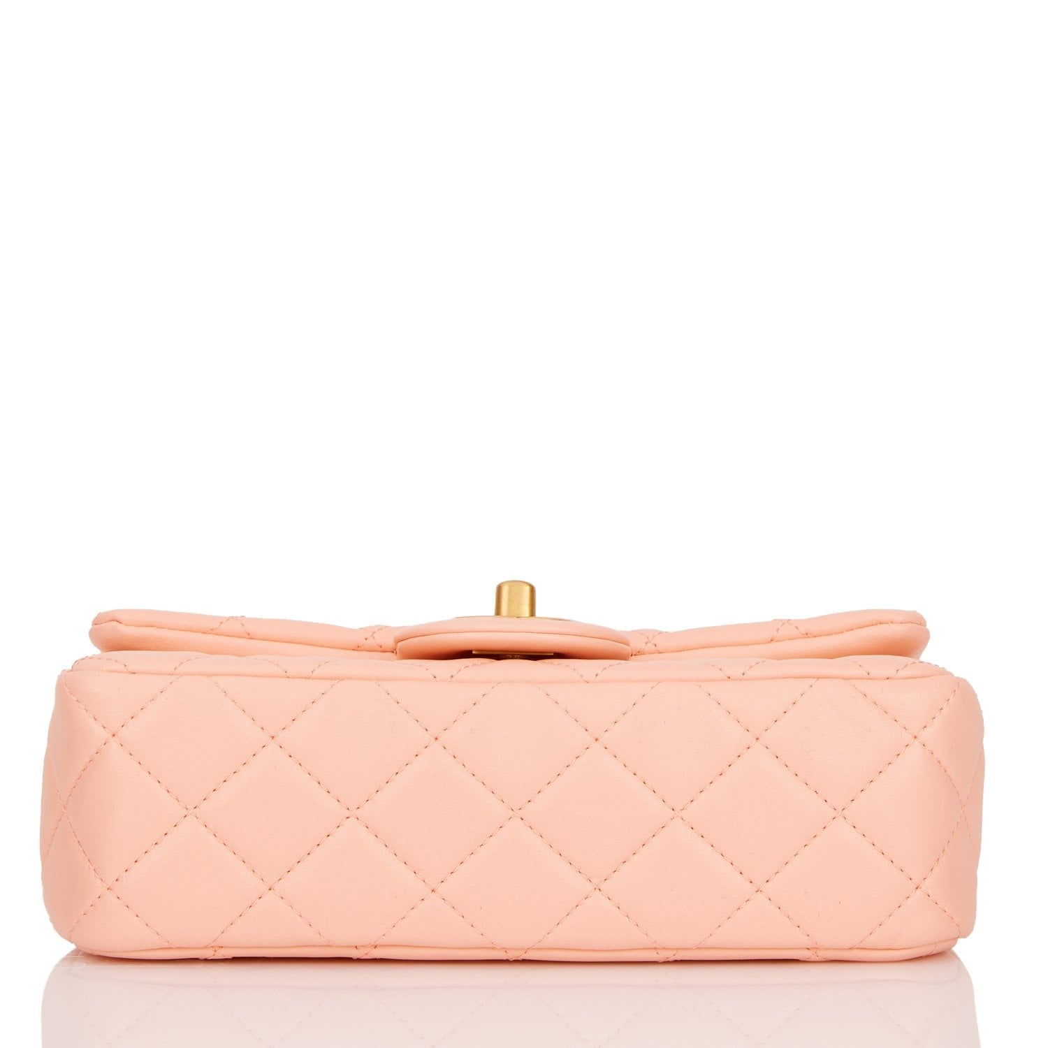 Chanel Pearl Crush Mini Rectangular Flap Bag Peach Lambskin Antique Gold Hardware