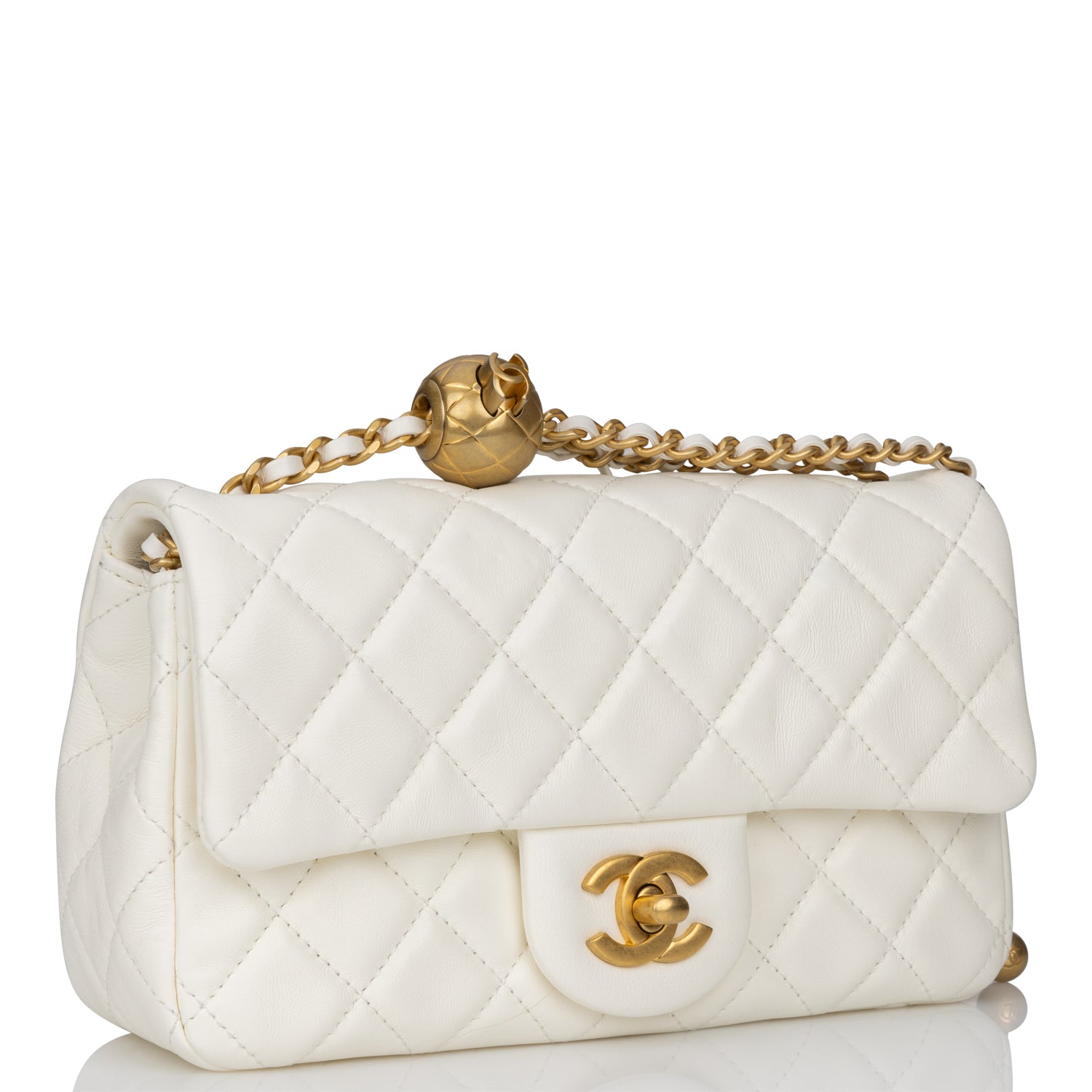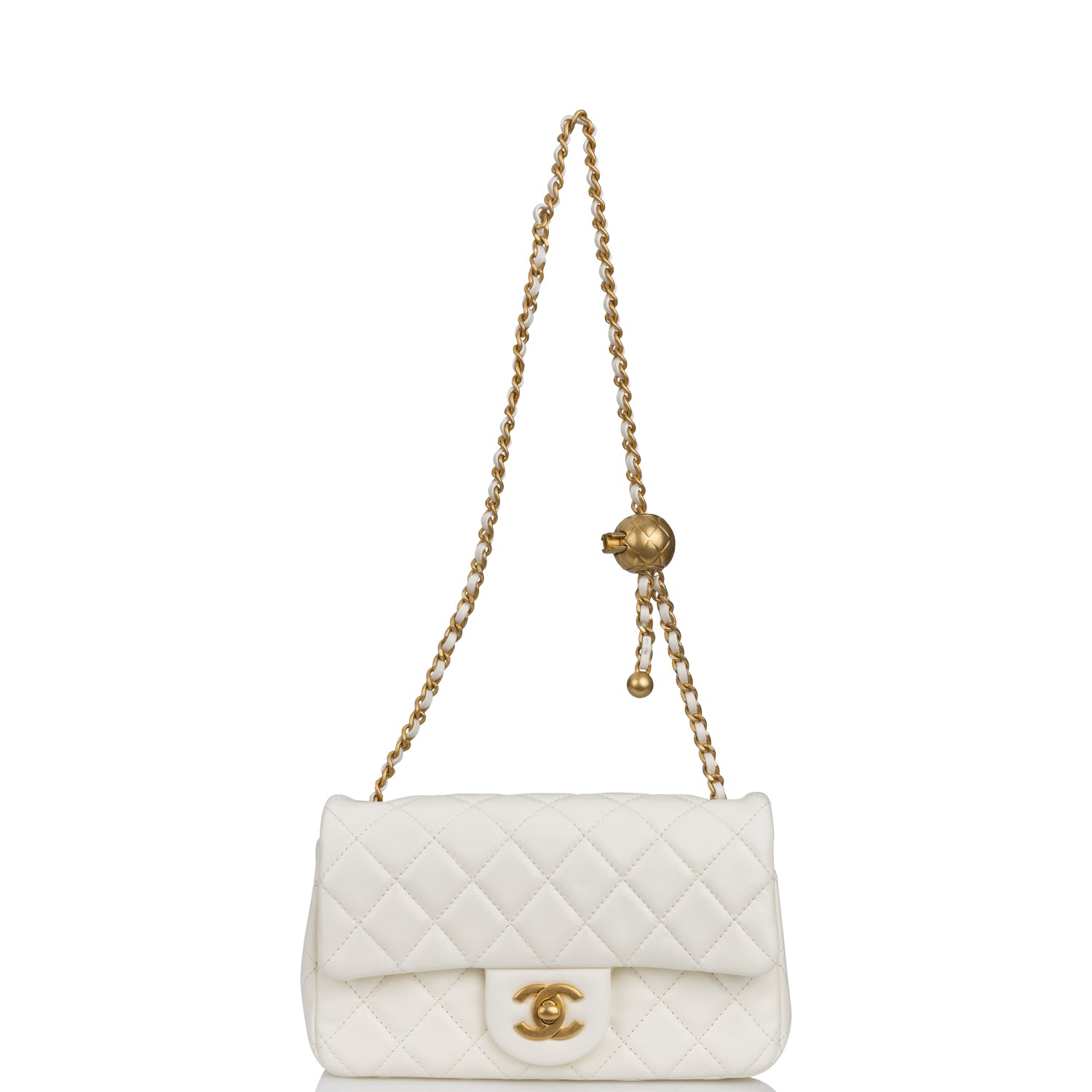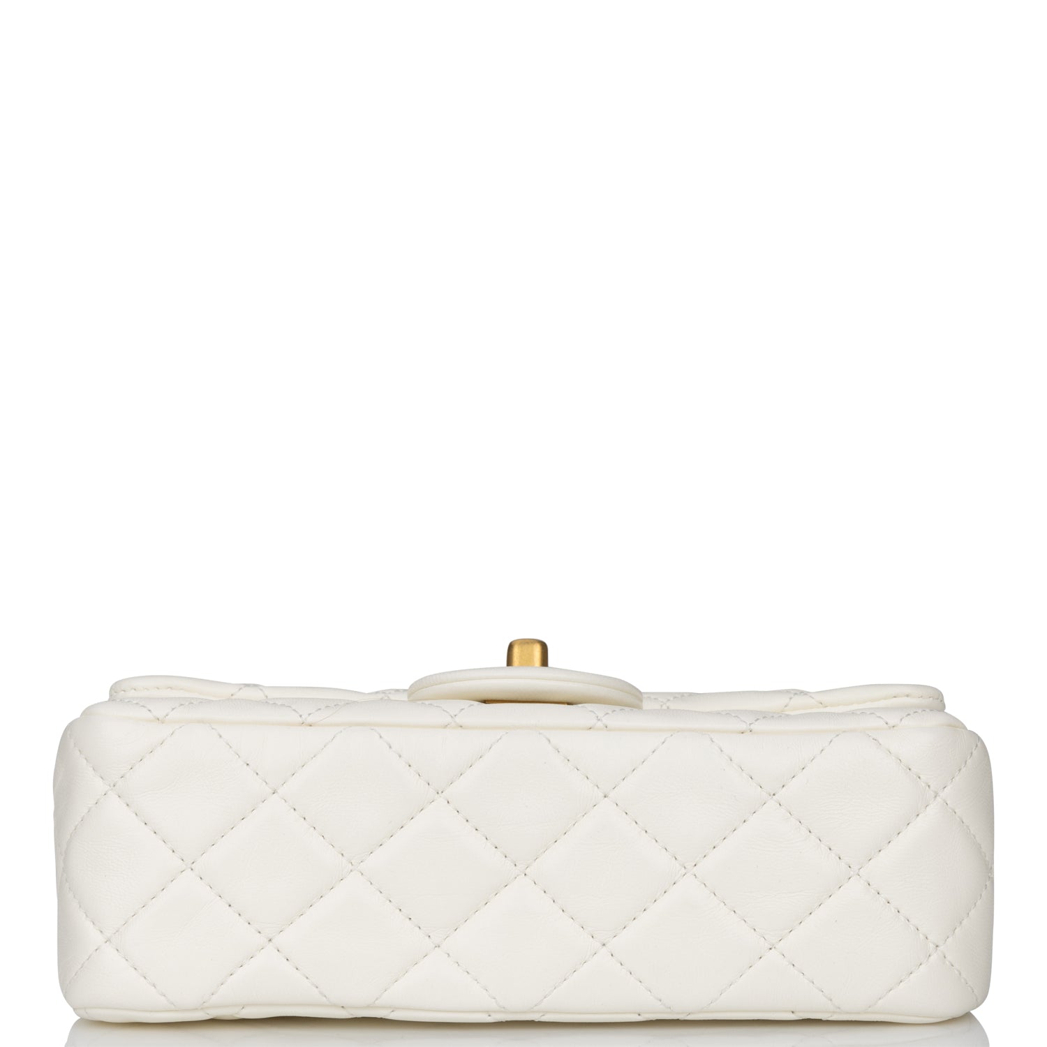 Chanel Pearl Crush Mini Rectangular Flap Bag White Lambskin Antique Gold Hardware