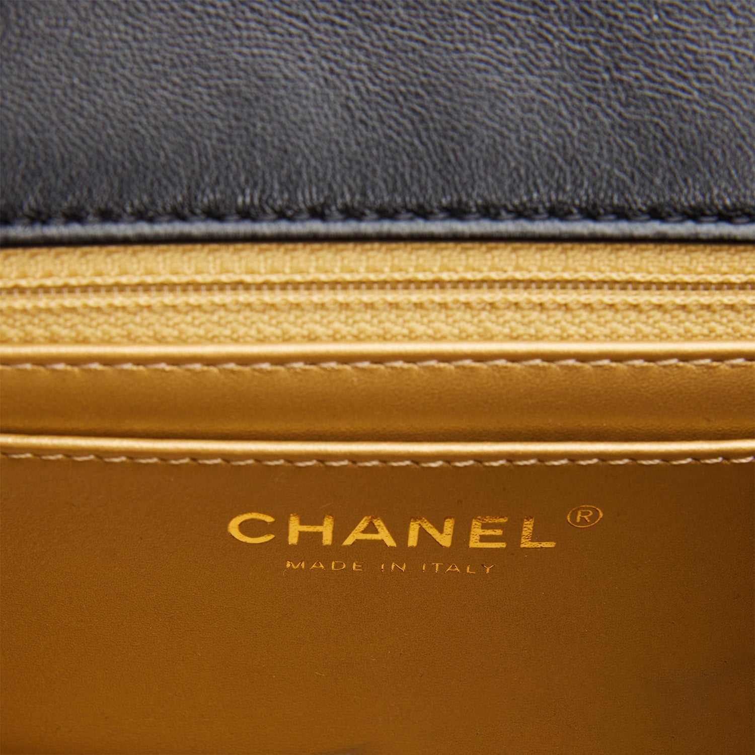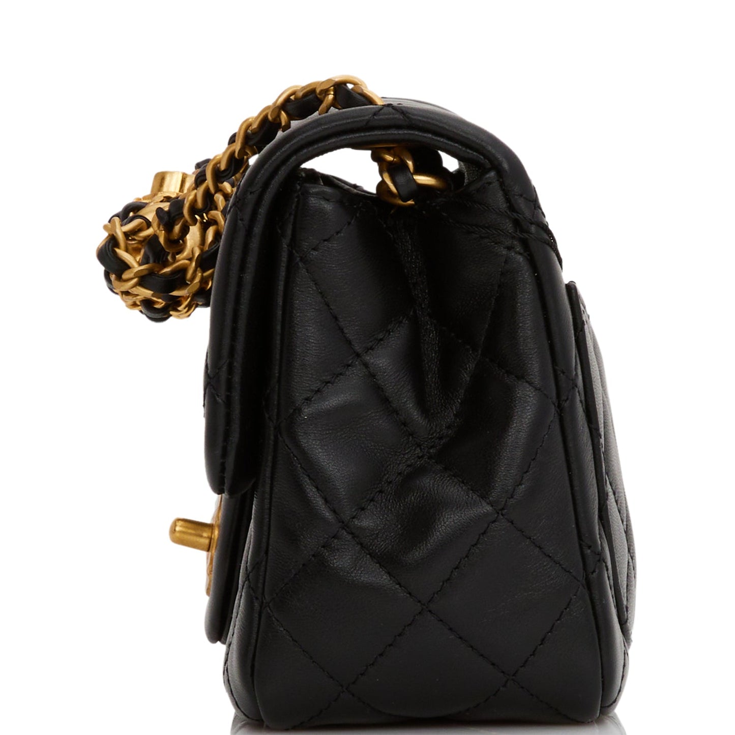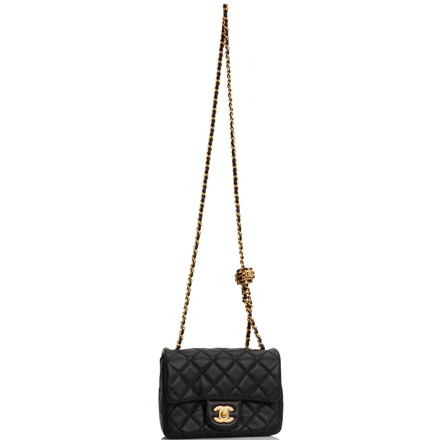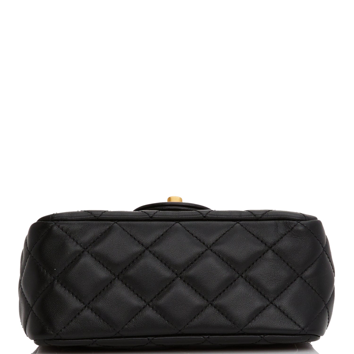 Chanel Pearl Crush Mini Square Flap Bag Black Lambskin Antique Gold Hardware