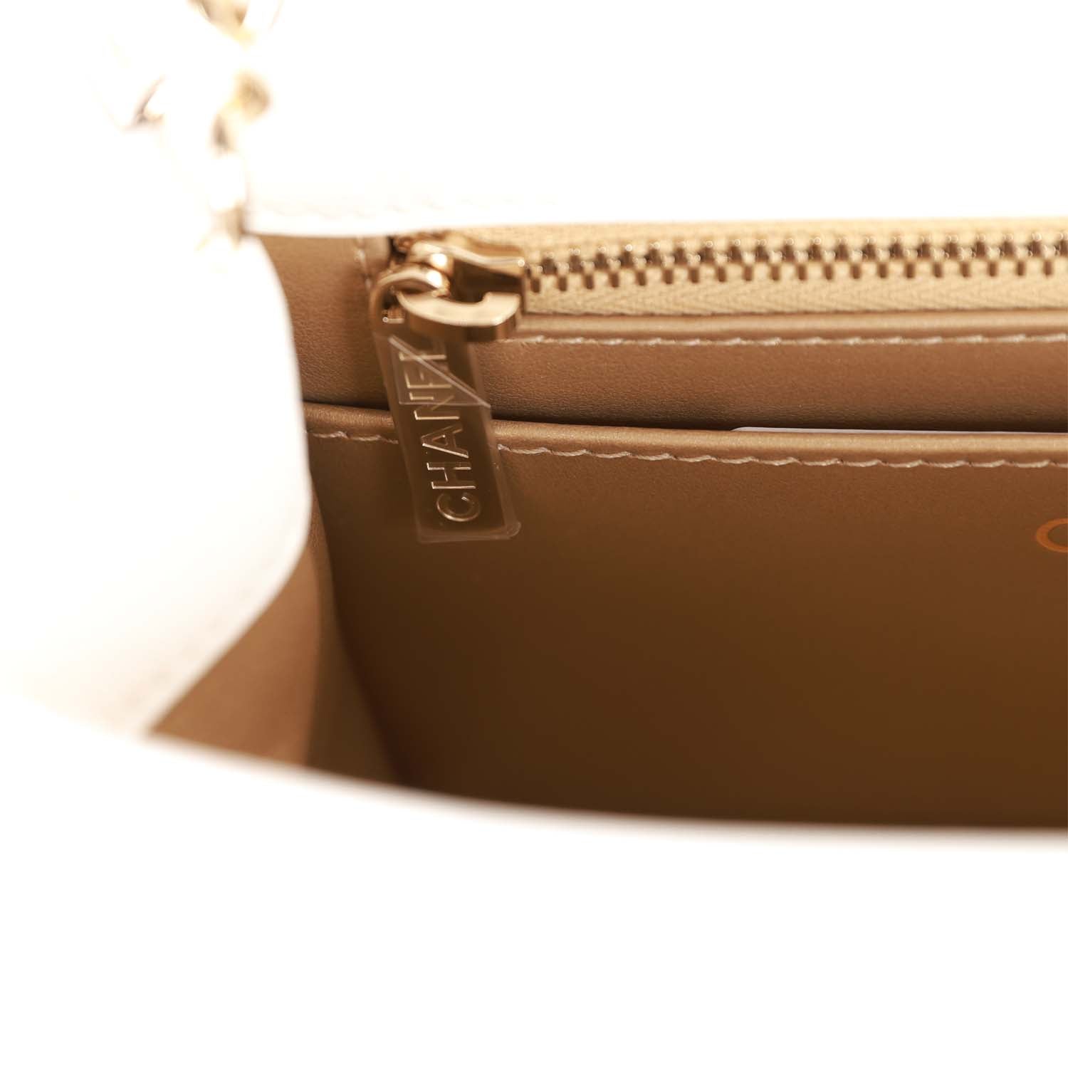 Chanel Pearl Crush Mini Square Flap Bag White Lambskin Light Gold Hardware