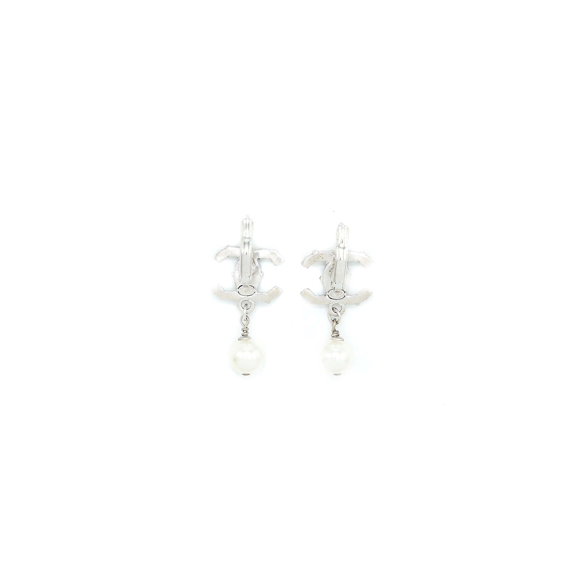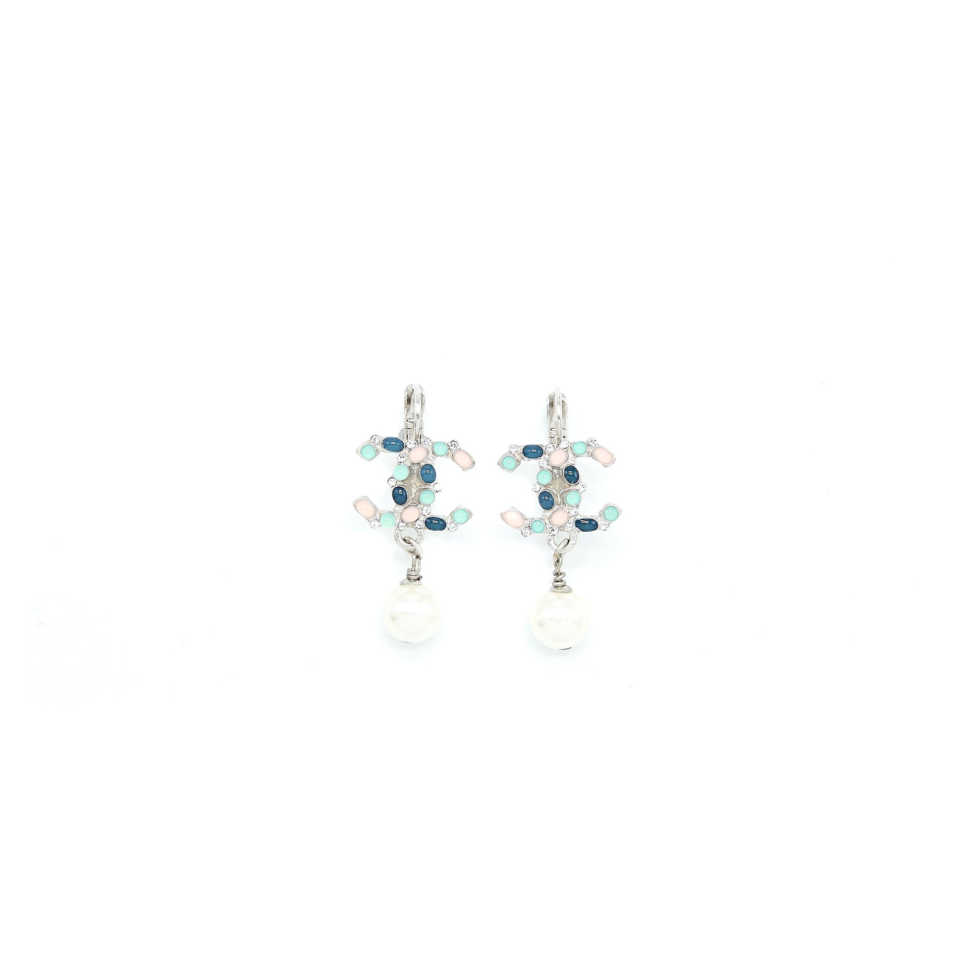 Chanel Pearl Drop CC Logo Earrings Enamel/Pearl Multicolour Silver Tone