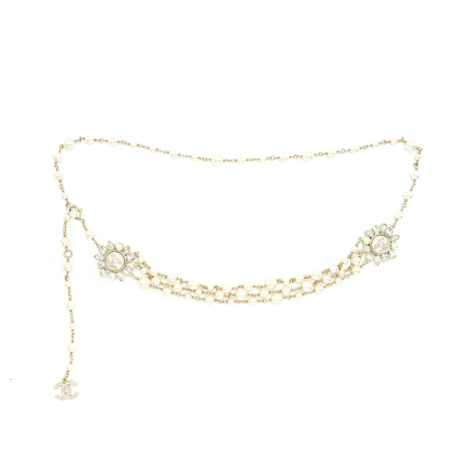 Chanel Pearl Waist Chain Belt 80cm Light Gold Tone