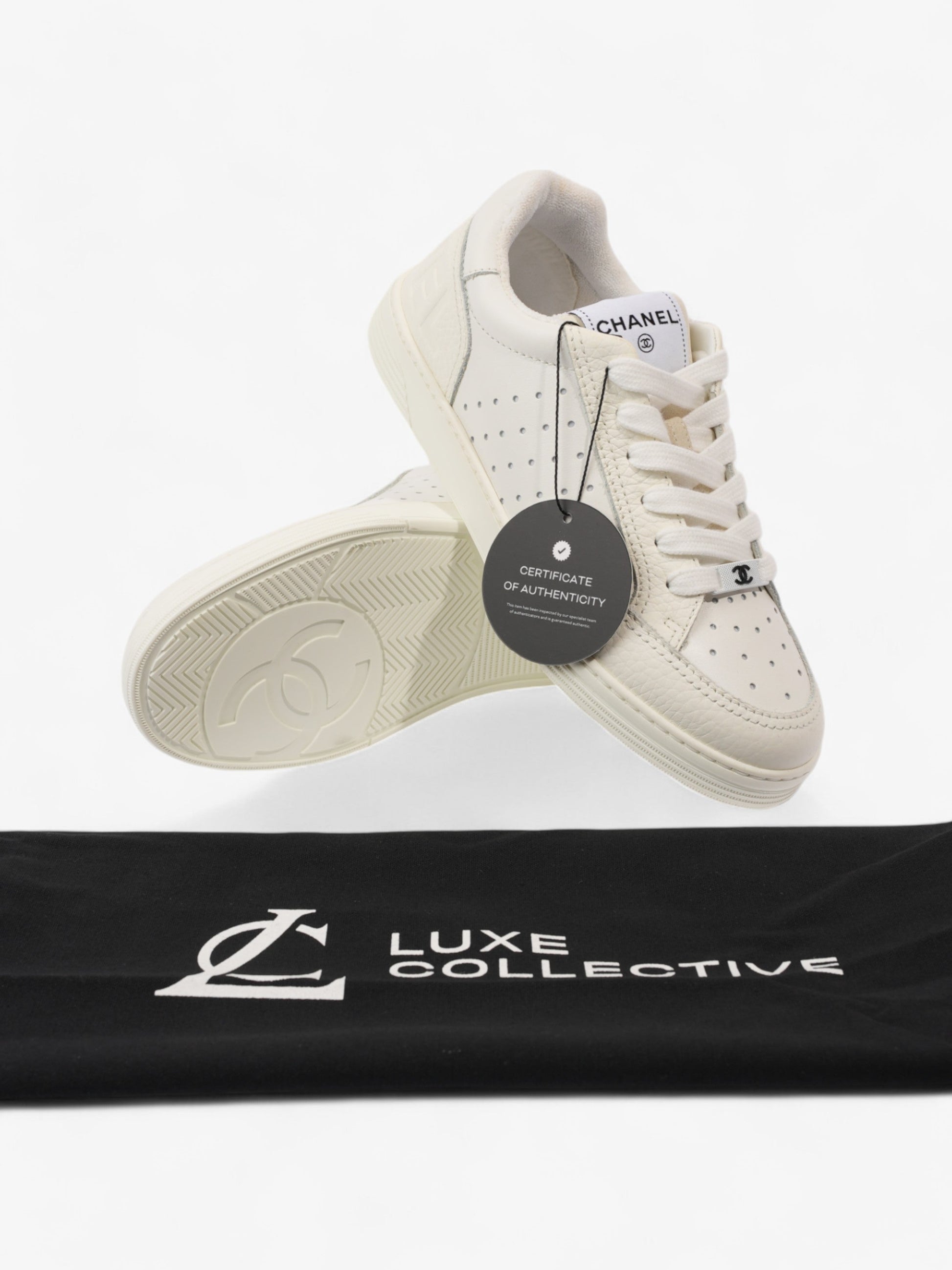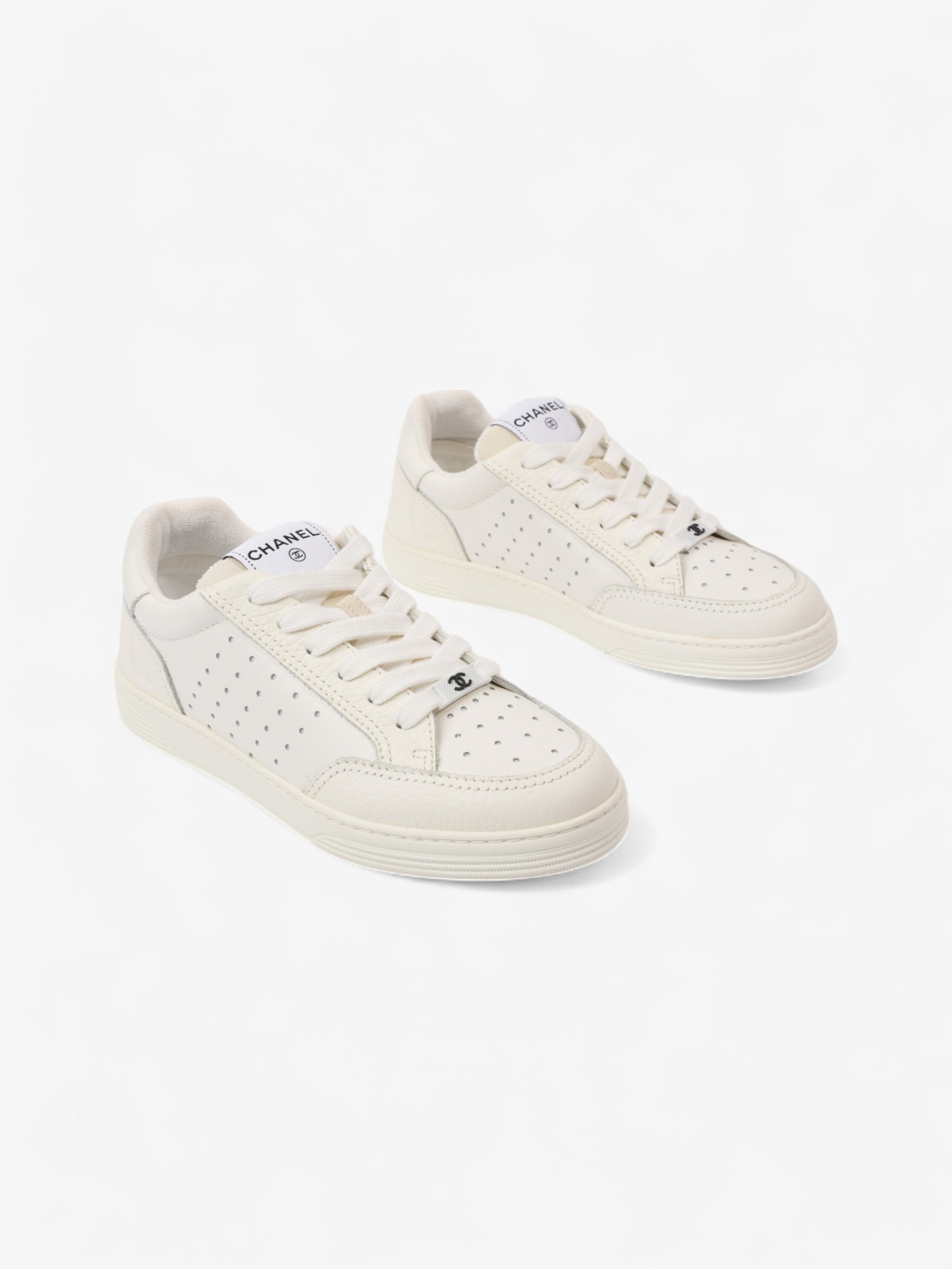 Chanel Perforated Low Top Sneakers White Leather EU 37 UK 4