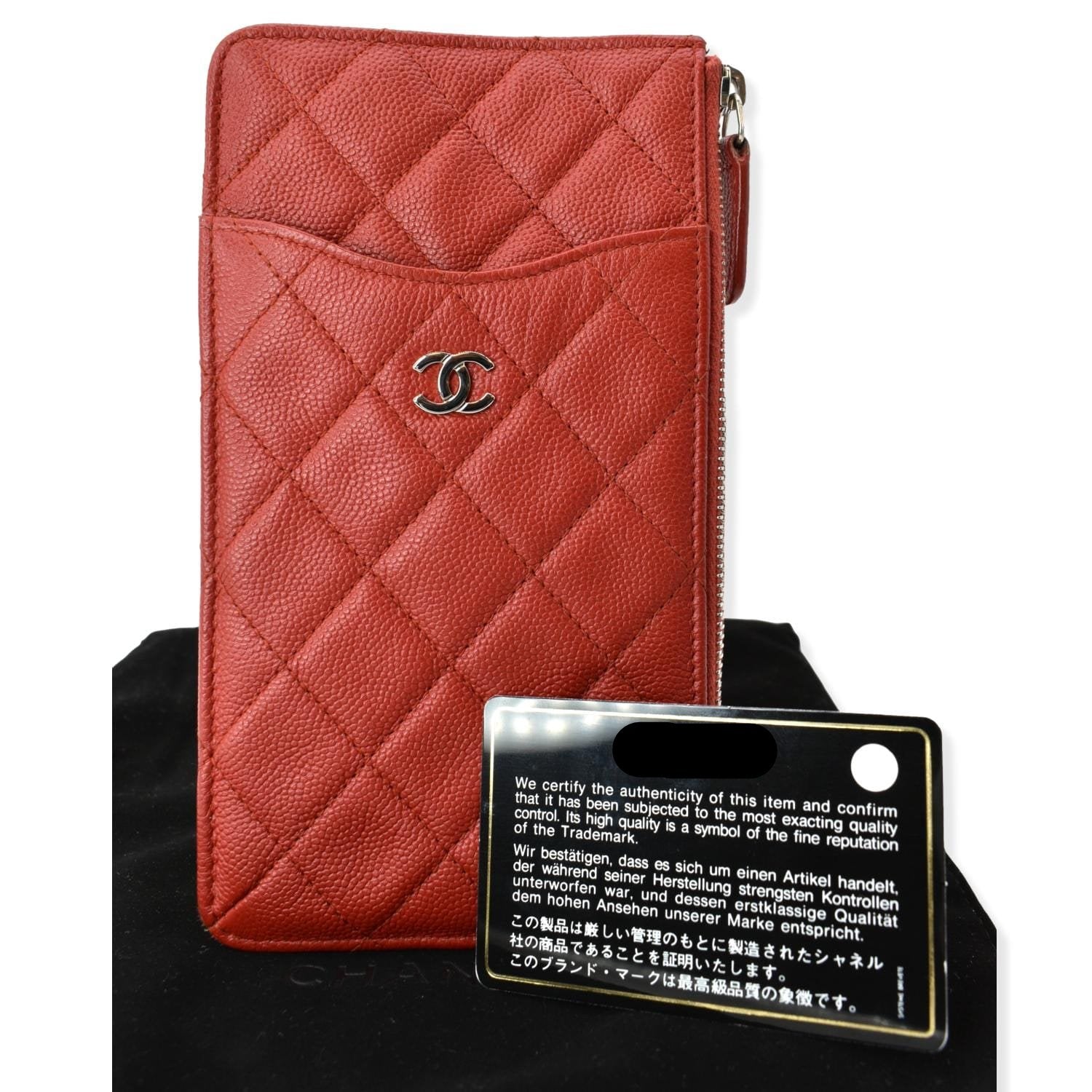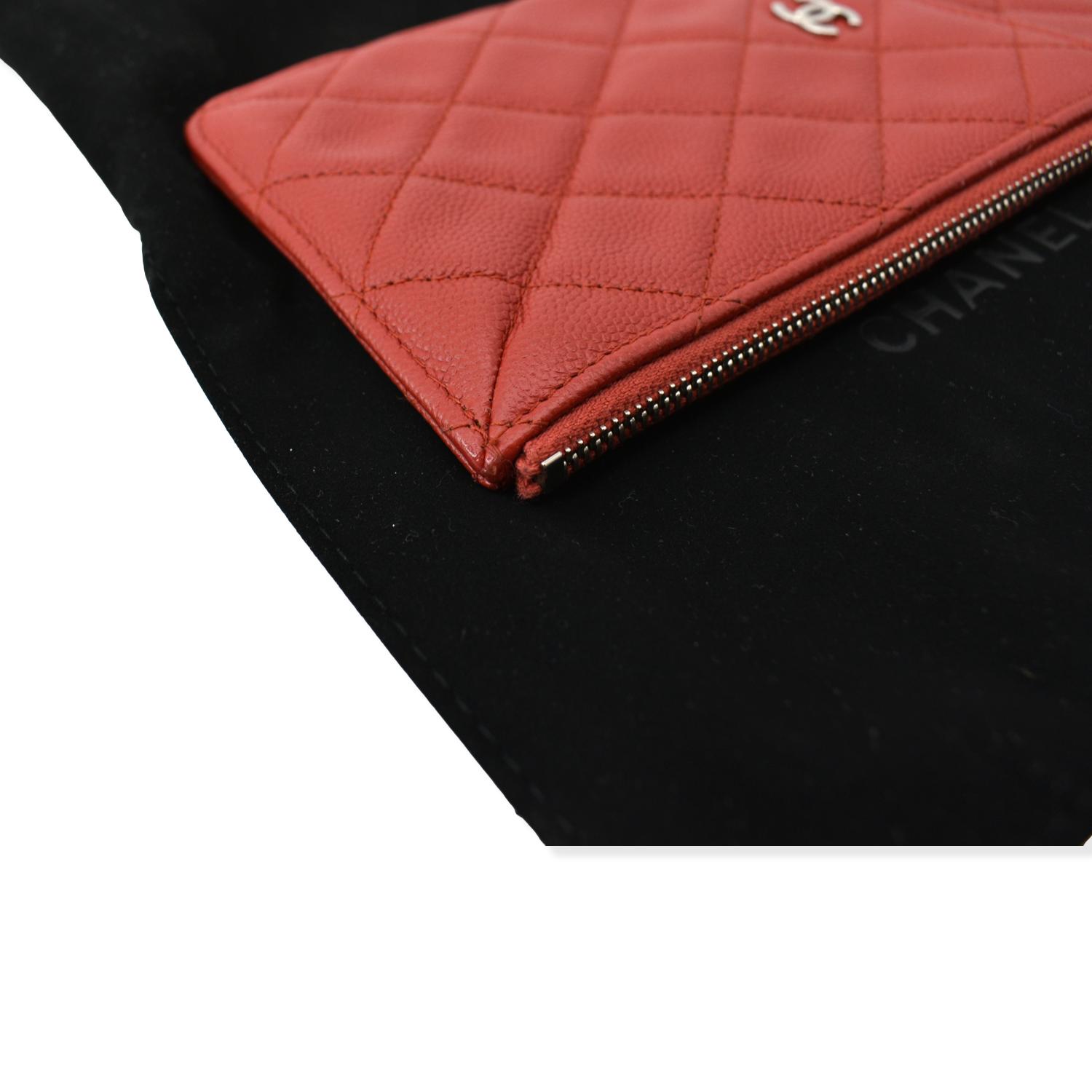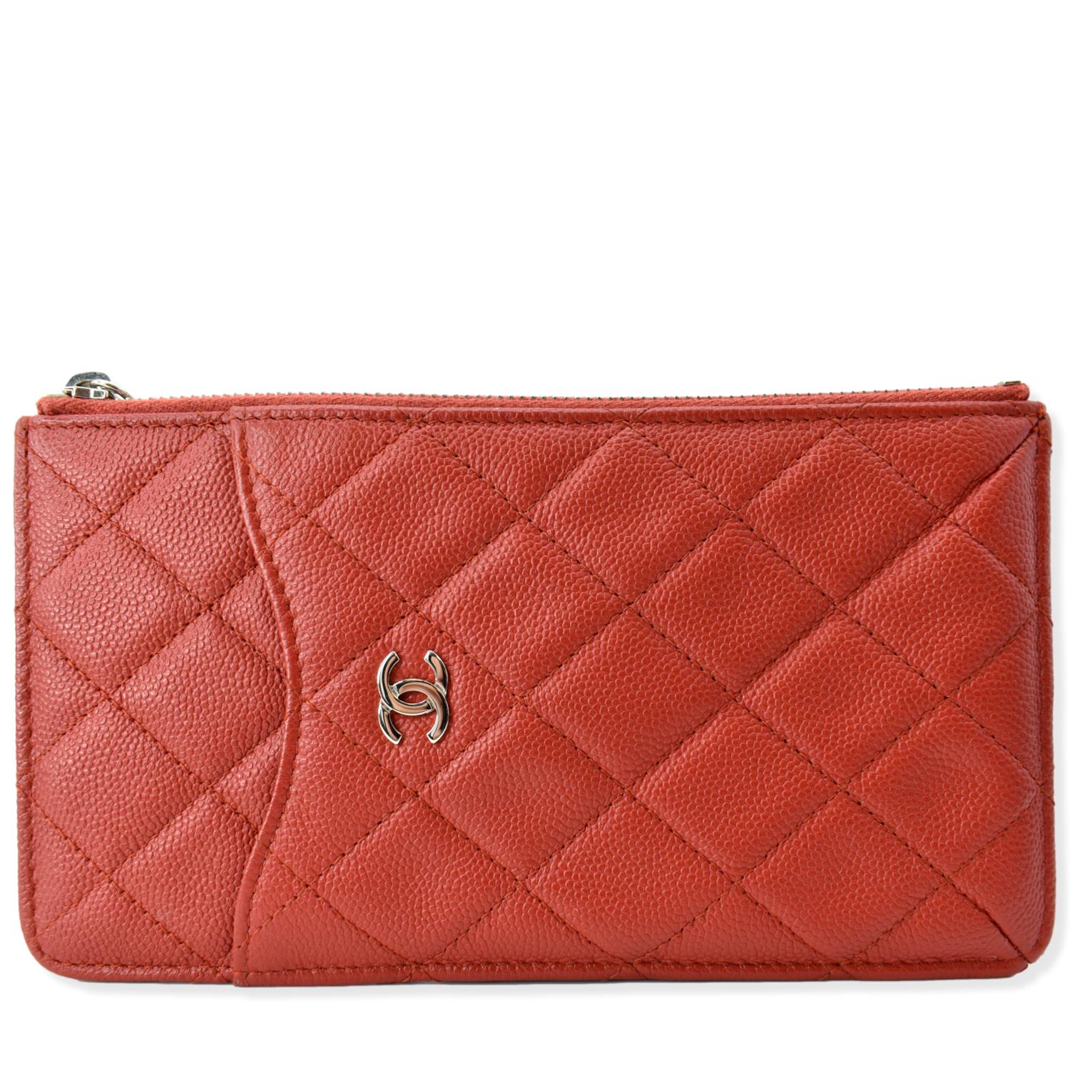 CHANEL Classic Caviar Quilted Leather Flat Wallet Pouch Red