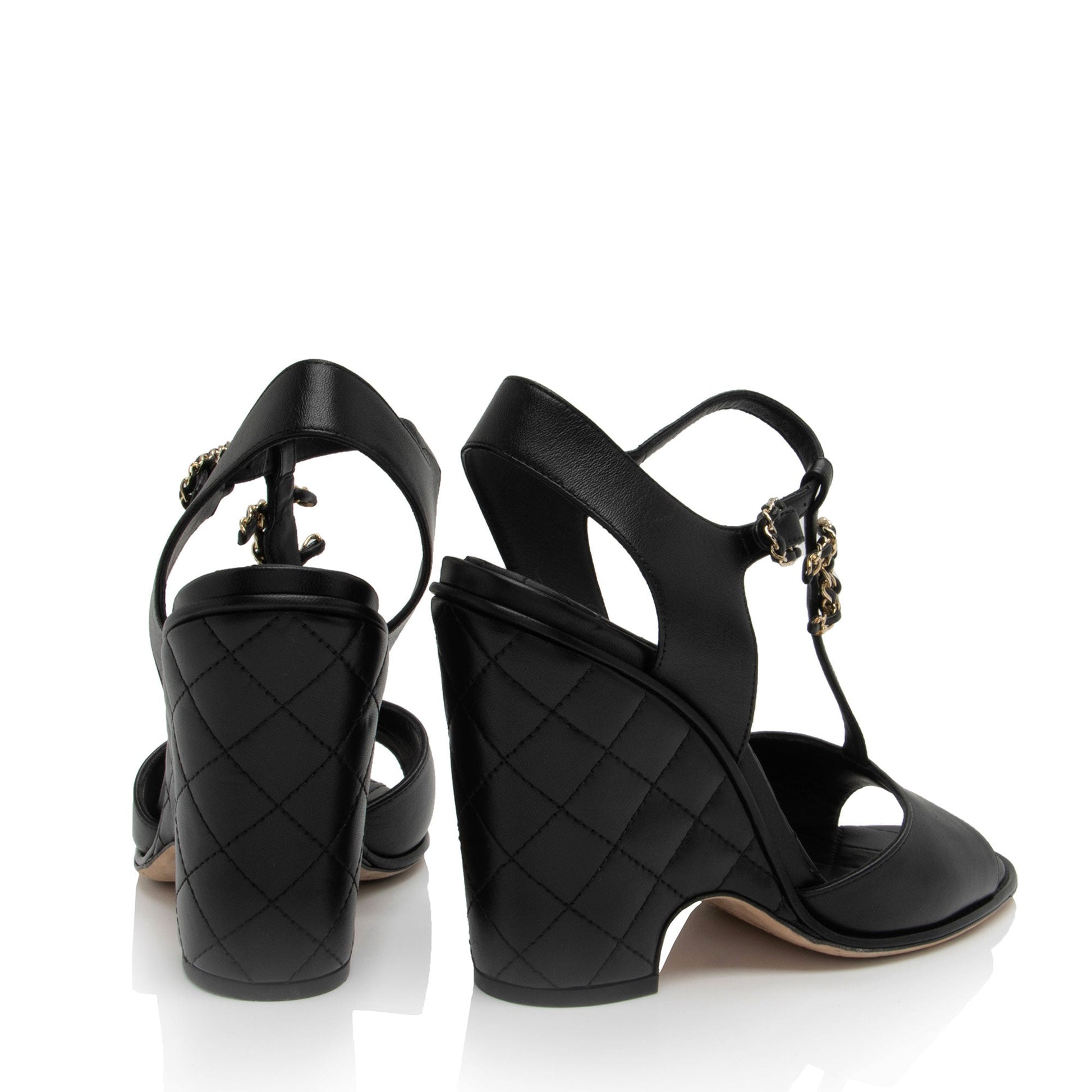 Chanel Quilted Leather CC T-Strap Wedge Sandals - Size 10 / 40 (SHF-exqcVO)