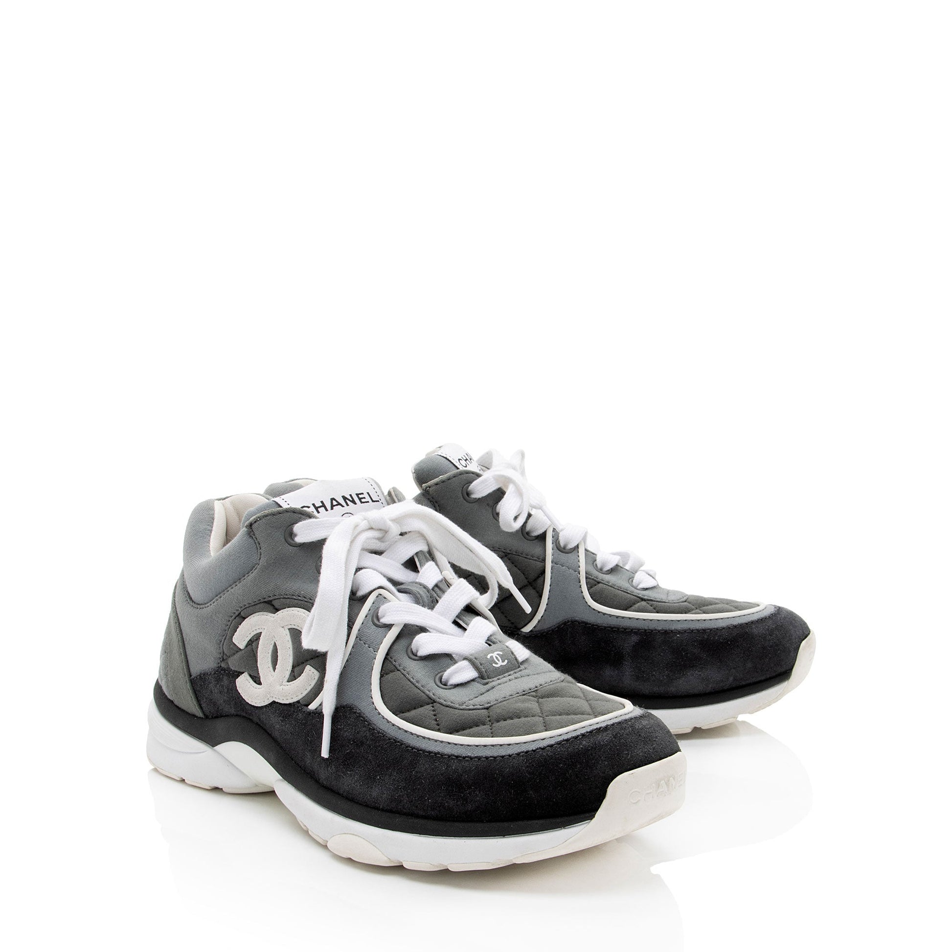 Chanel Quilted Suede CC Sneakers - Size 10 / 40 (SHF-nHAf1t)