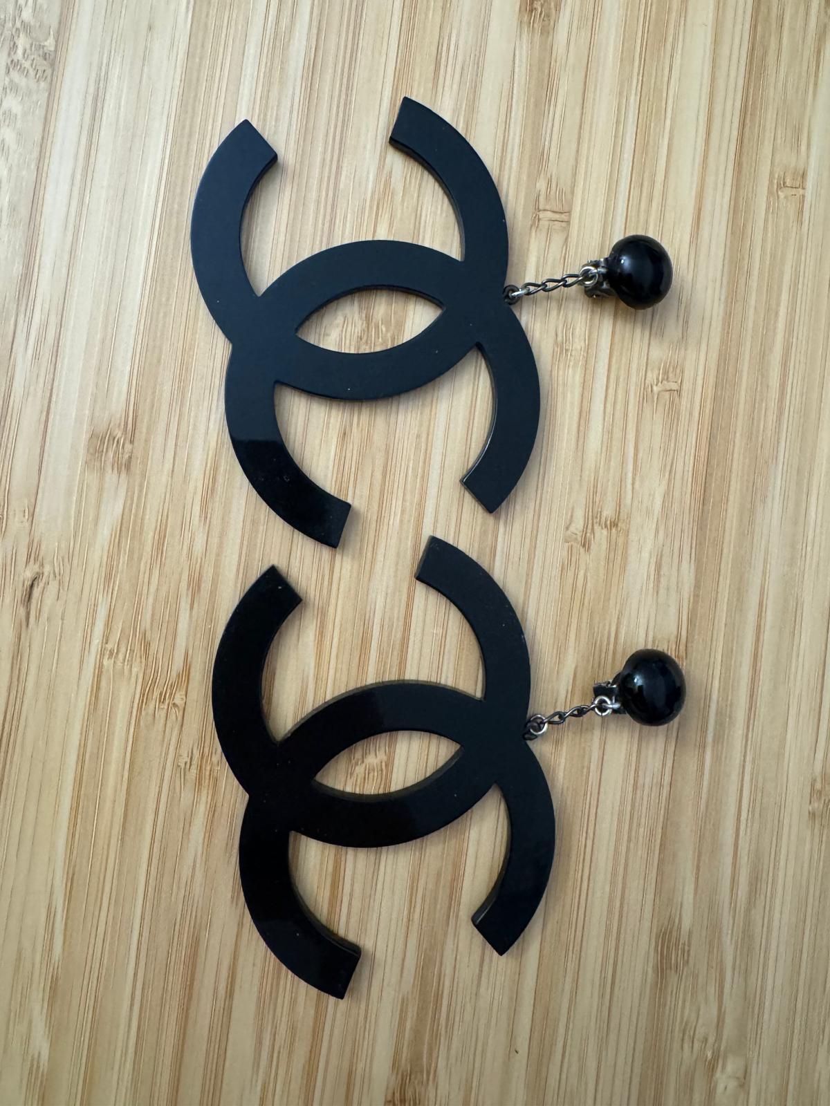 These Chanel rare vintage acrylique CC earrings are a timeless and stylish addition to any jewelry collection. With their chic black color, they are suitable for any occasion. Made from high-quality materials, they are in good condition, ensuring long-lasting wear. A must-have for any fashion-forward individual.