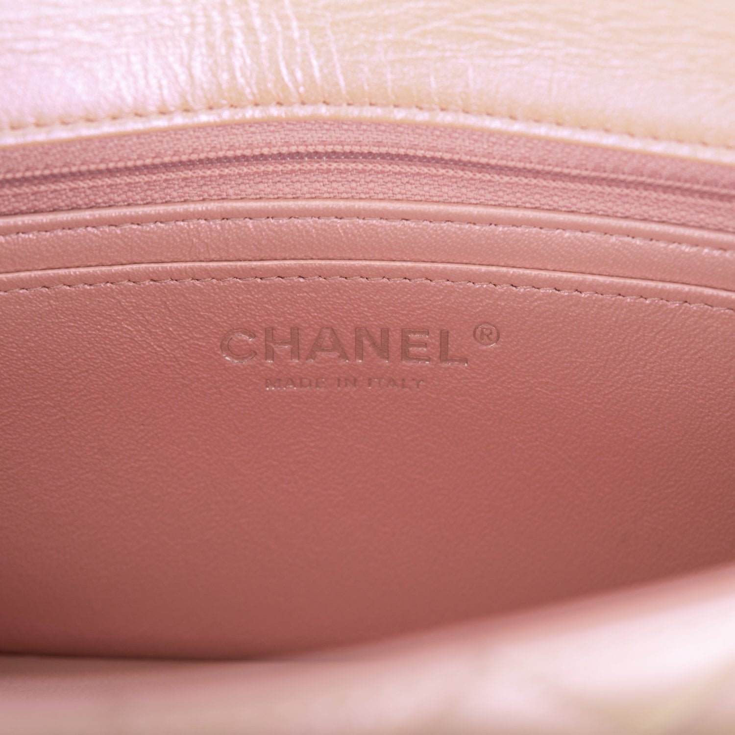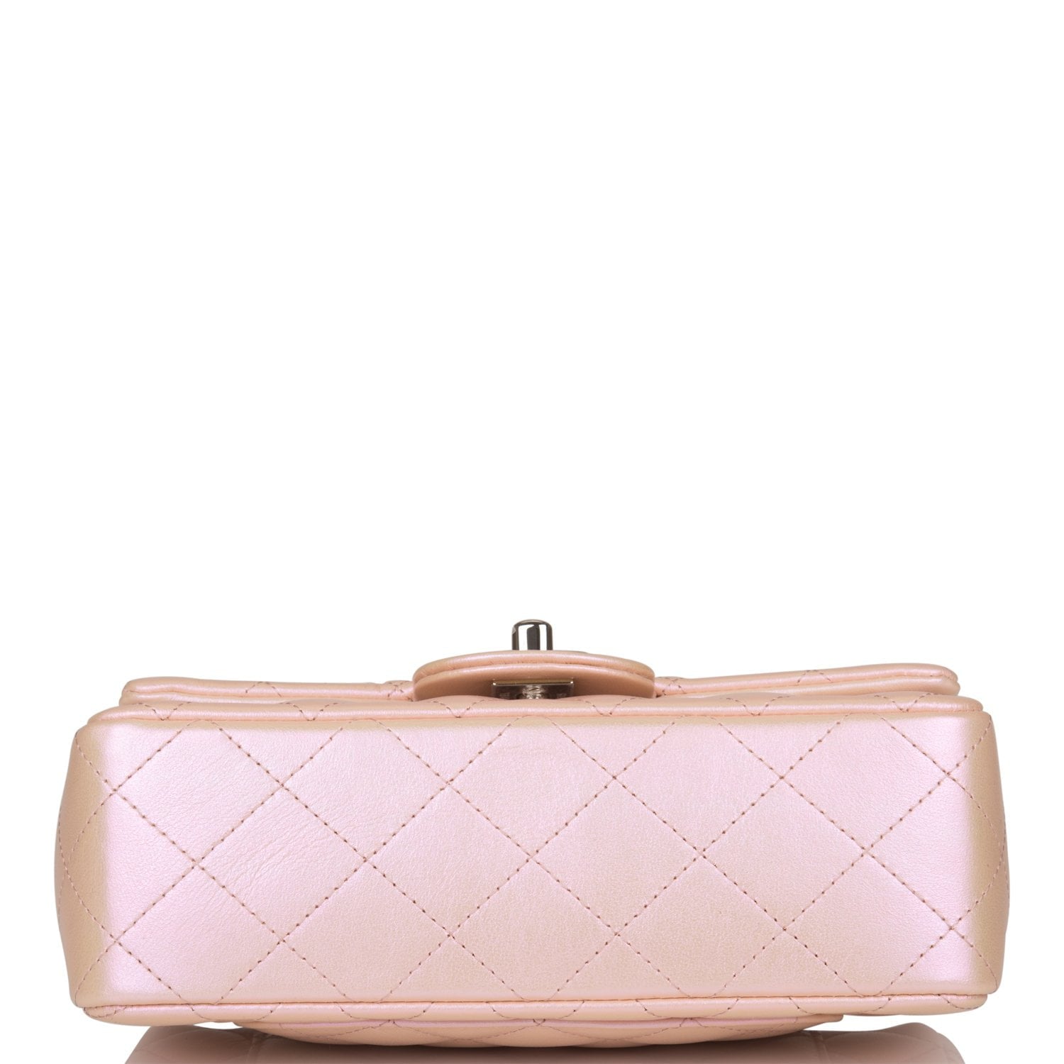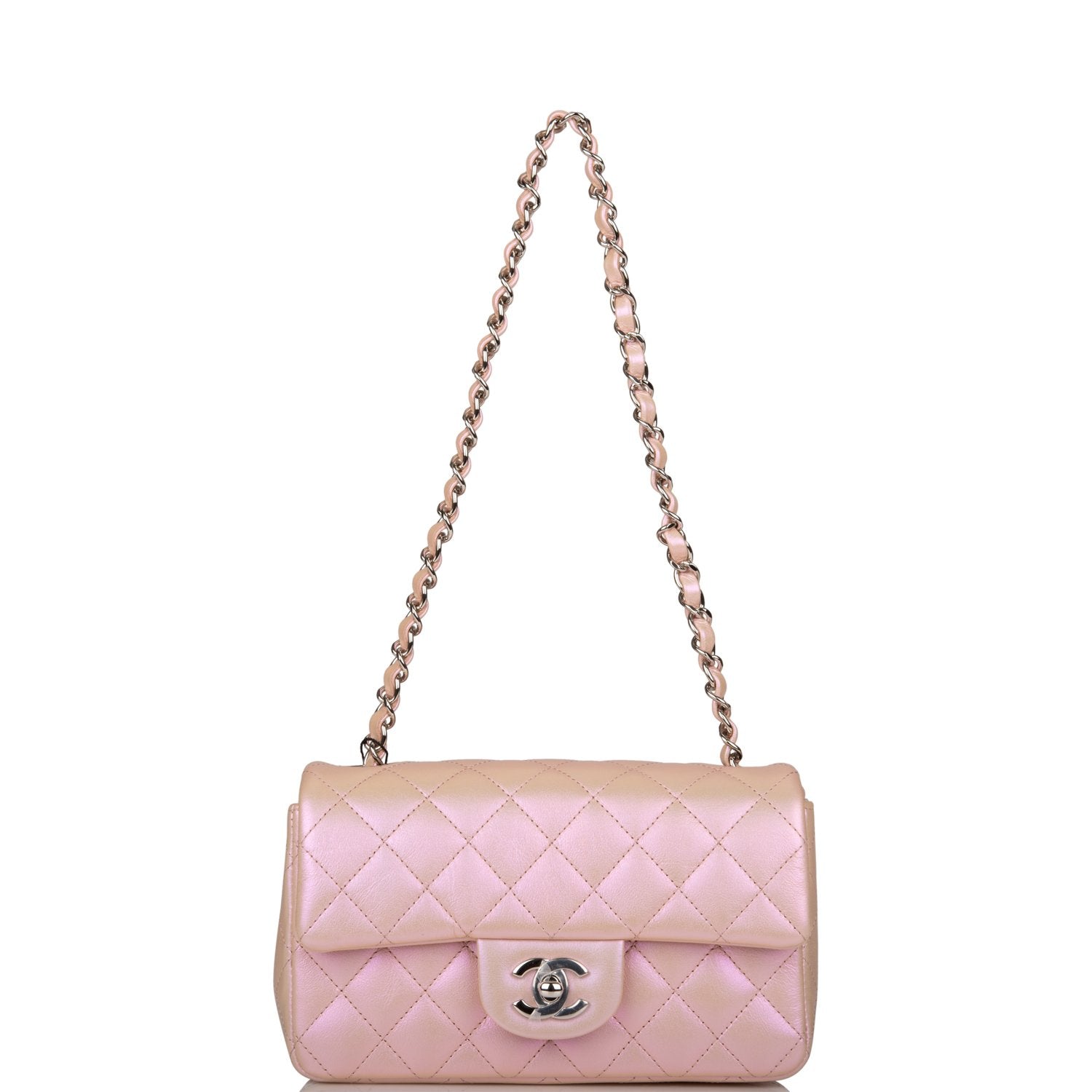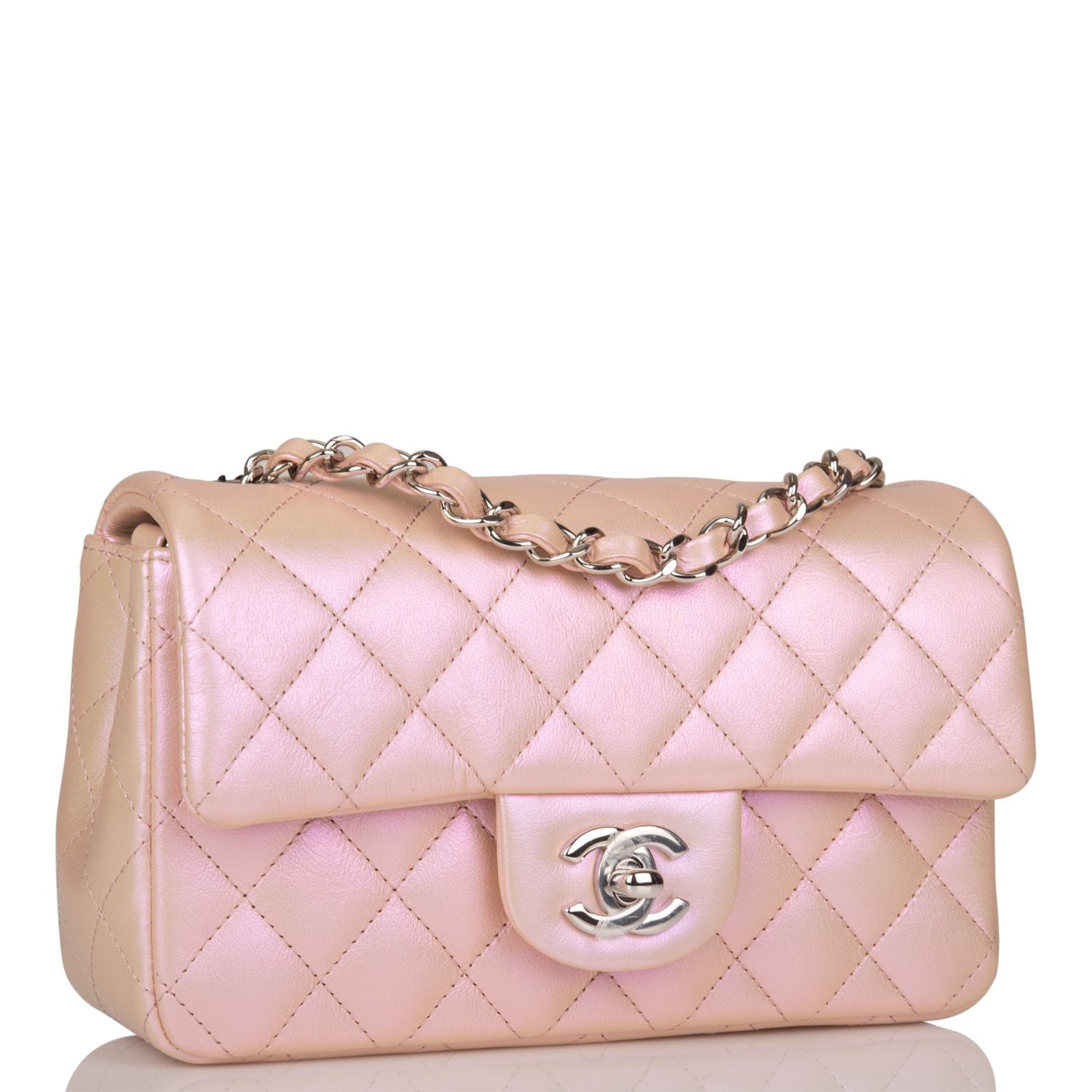 Chanel Mini Rectangular Flap Bag Pink Iridescent Lambskin Silver Hardware
