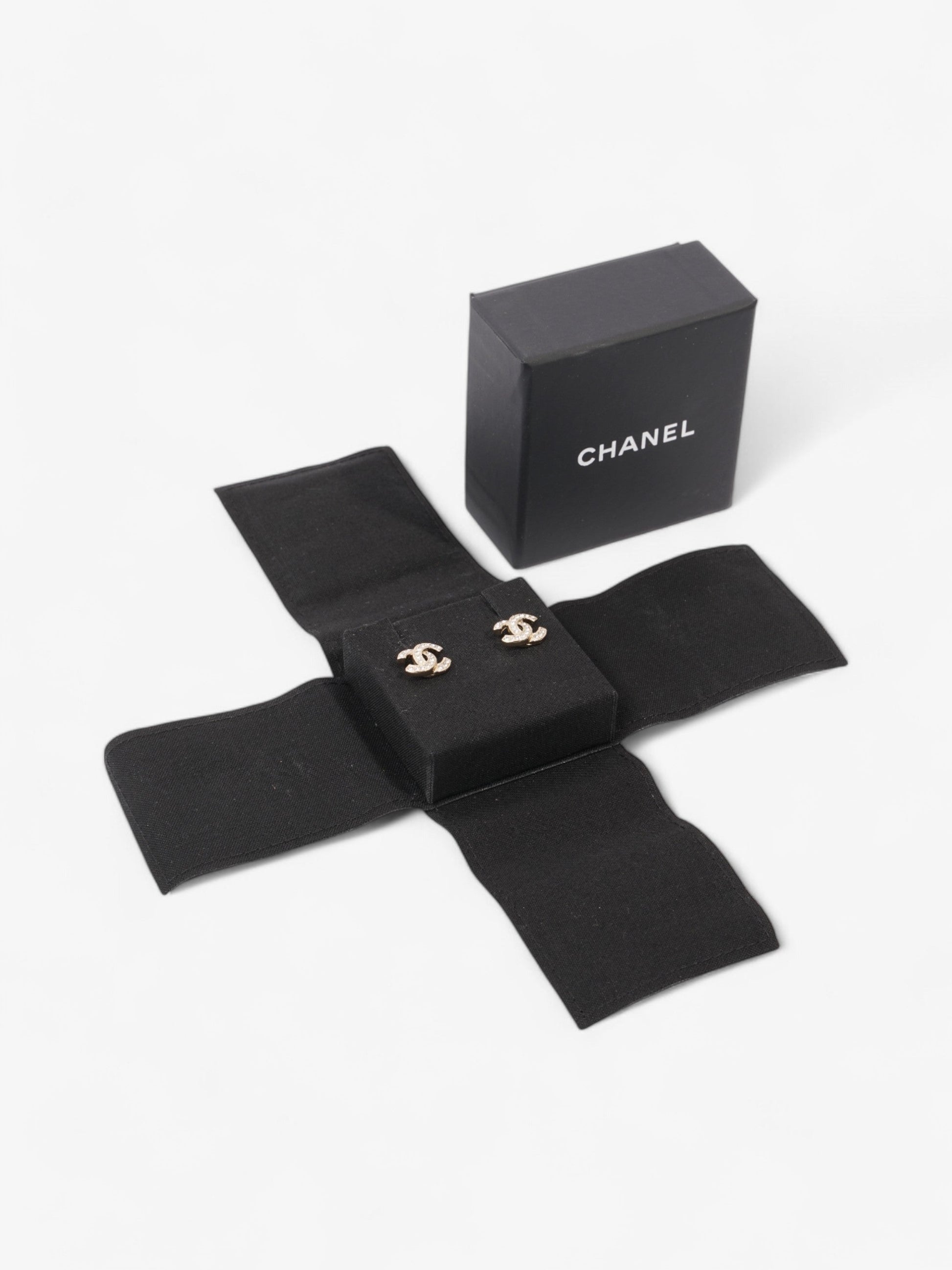 Chanel Rhinestone CC Logo Earring Gold Base Metal